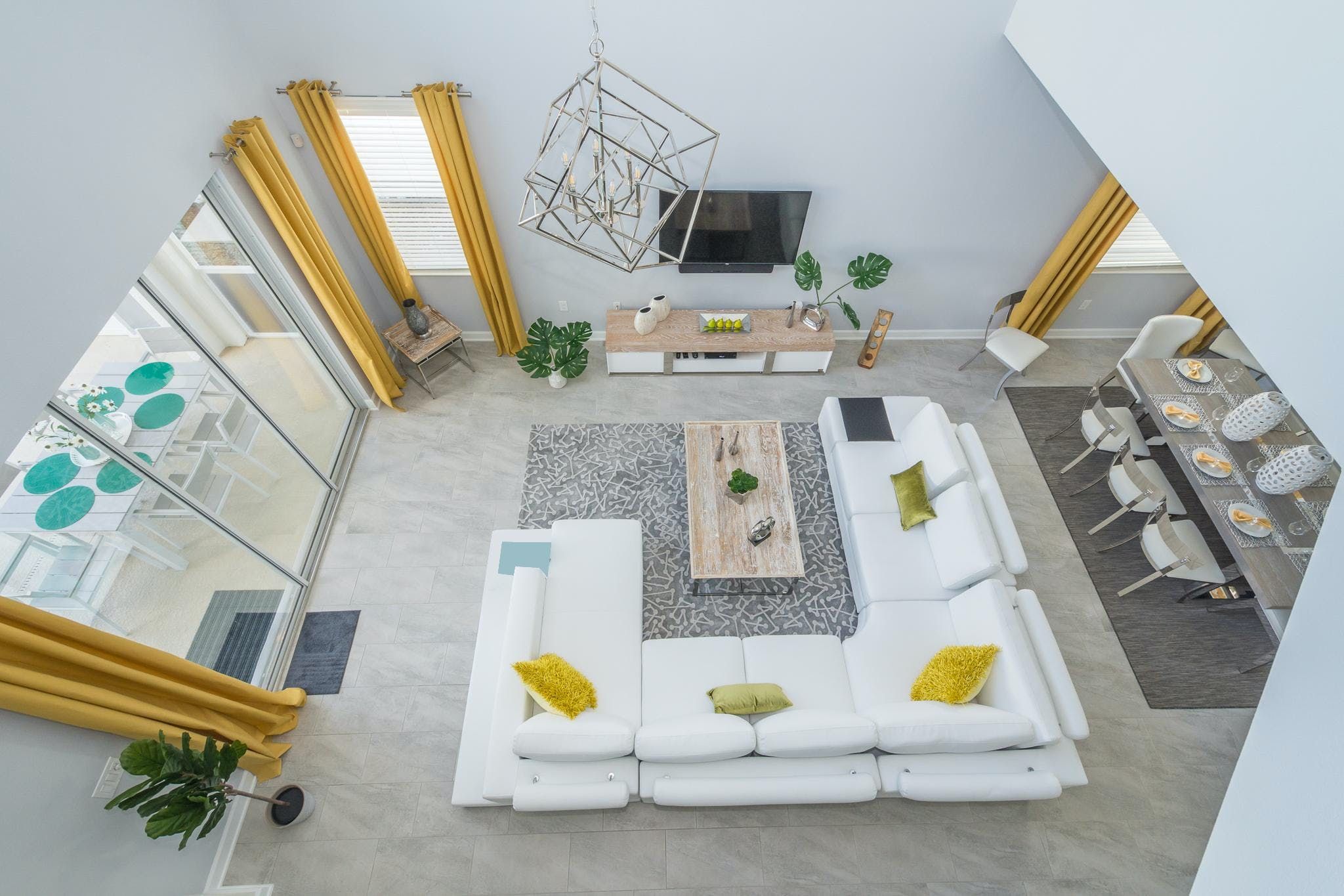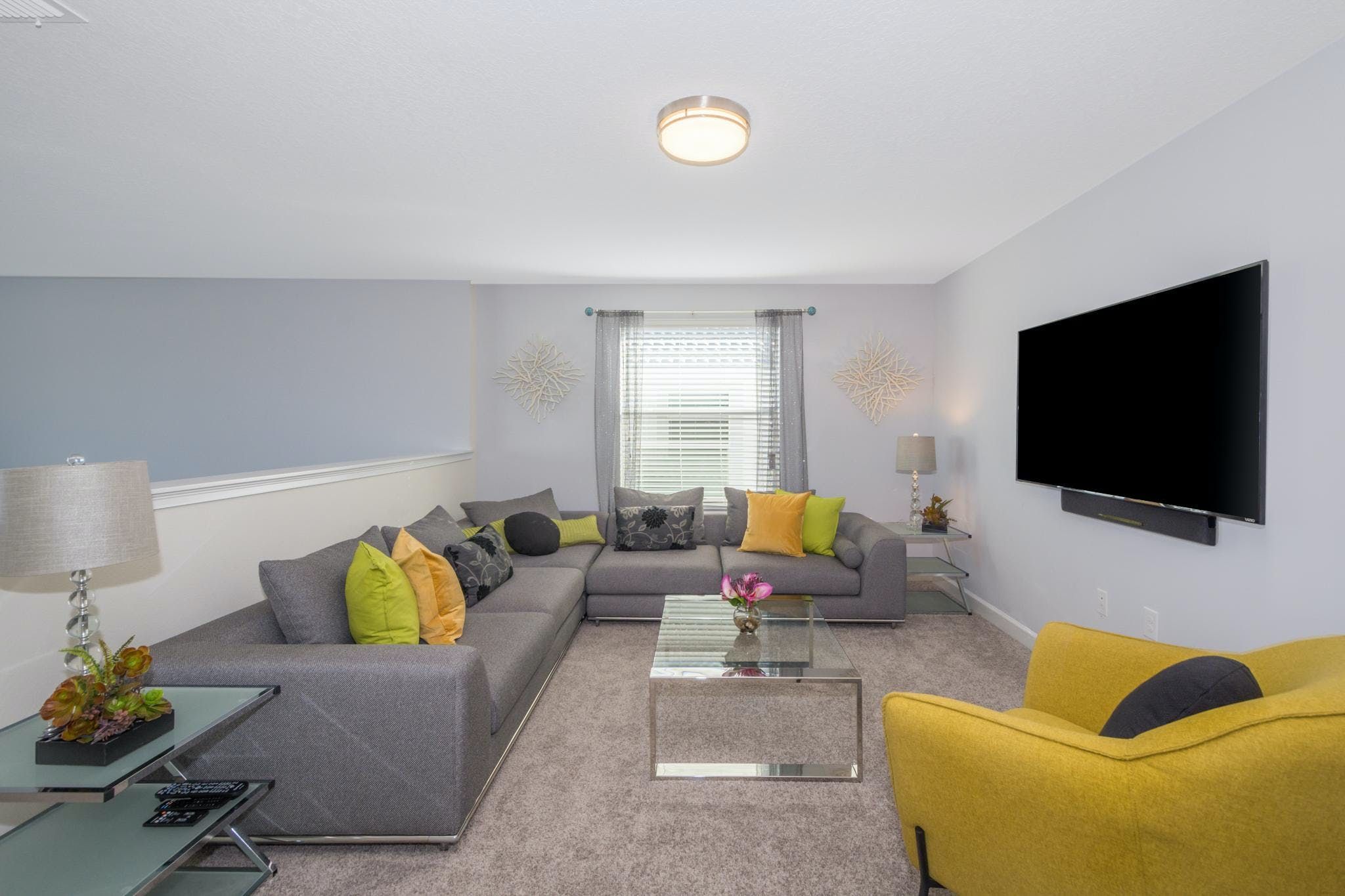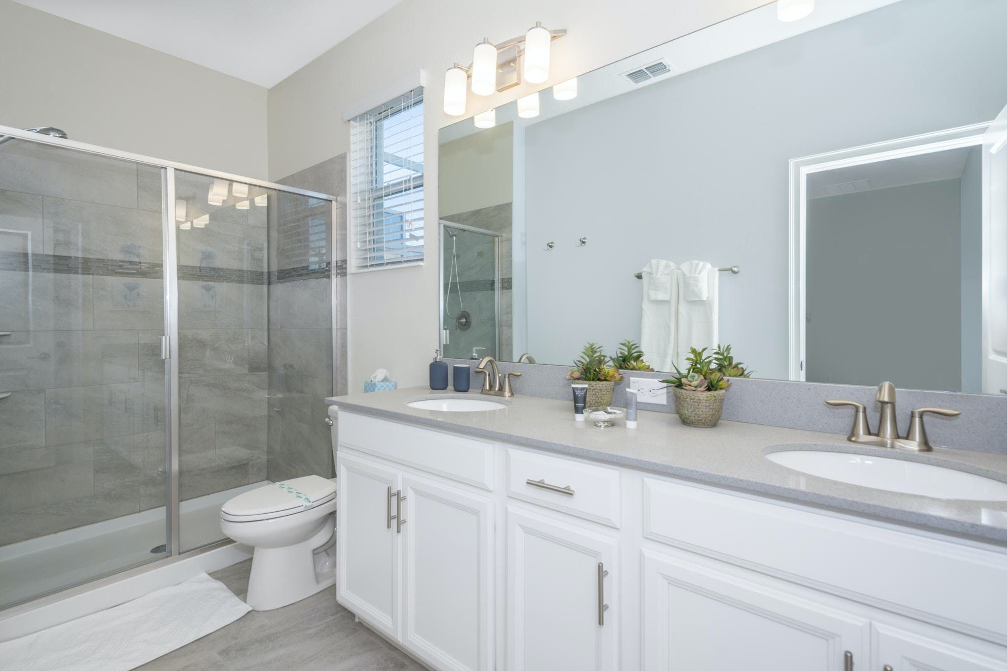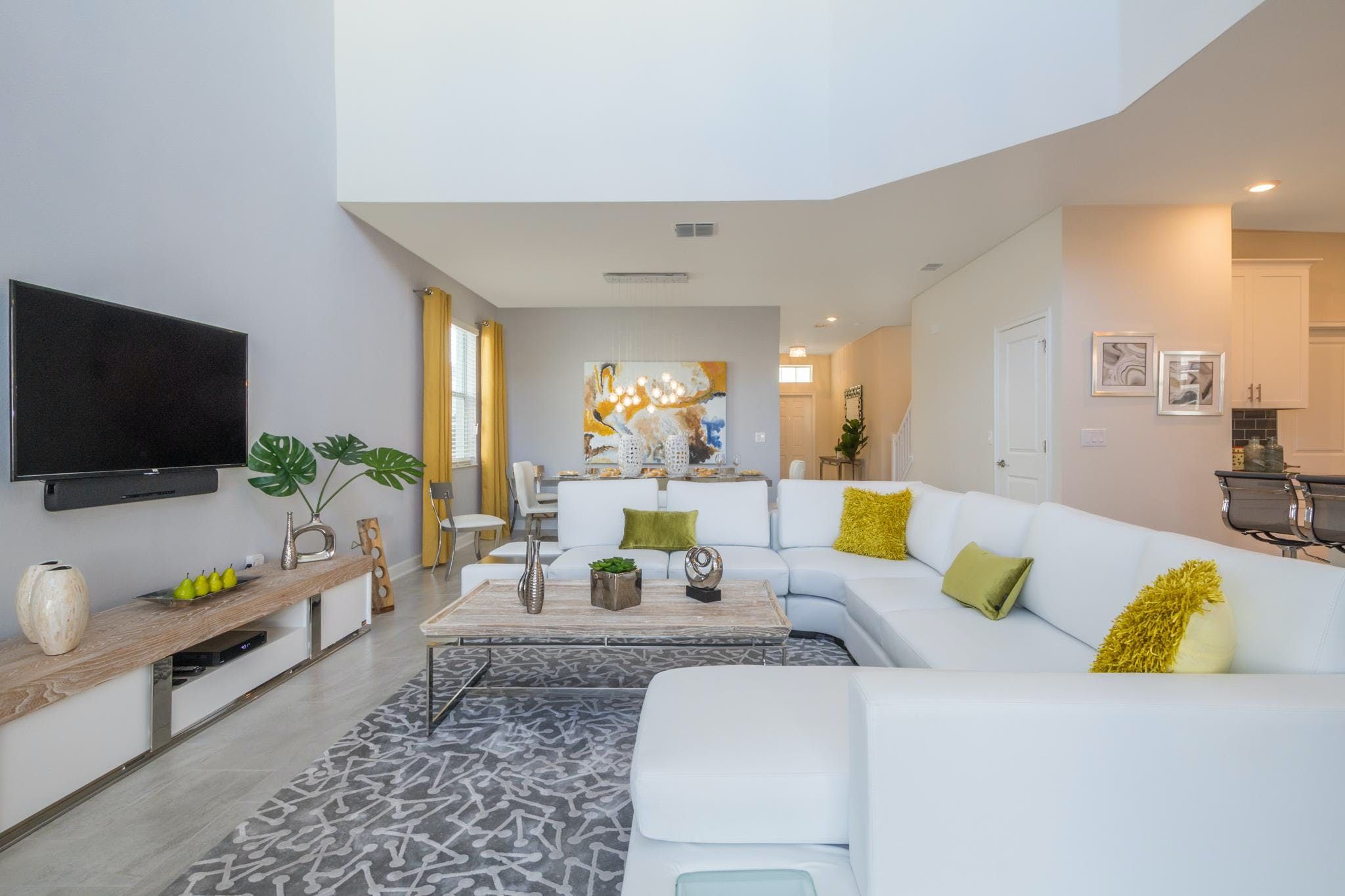 This luxurious single-family home is located in Champions Gate and boasts 5 bedrooms and 5 bathrooms. Two of the bedrooms are located downstairs, while the fully equipped kitchen and private game room with a pool table can be found on the main floor. The screened private pool and spa provide a relaxing retreat, while the garage has been converted into a game room for added entertainment. The property also includes private parking and is newly furnished and decorated. Guests will have access to internet and cable during their stay. The home is conveniently located close to Disney, restaurants, and shopping centers. Additionally, guests will have access to the resort's clubhouse amenities which include two pools (including a lazy river), a restaurant, gym, business center, and more.