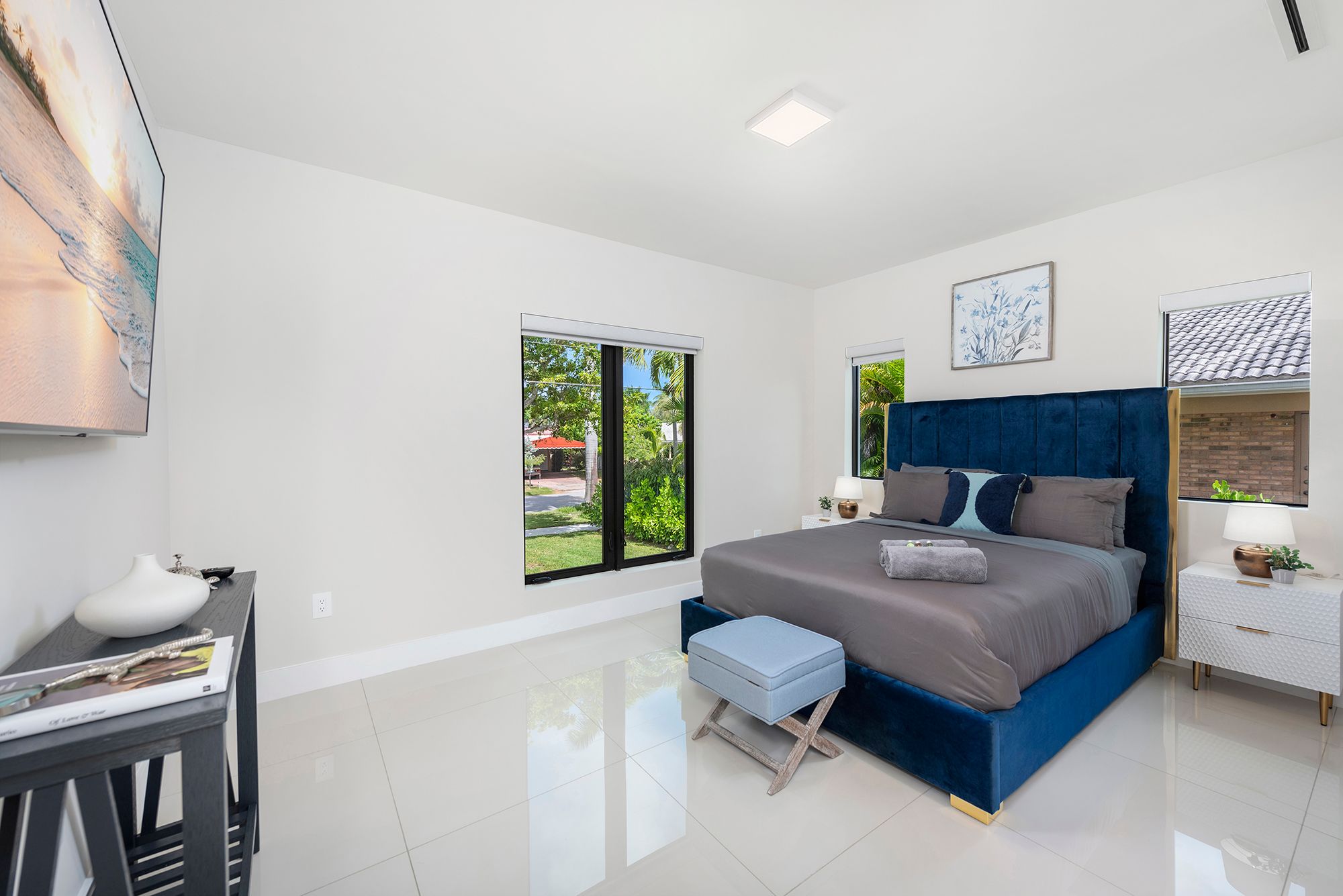 Right on the waterfront, this luxe villa is the perfect getaway for a family or group of friends. A deck lined with loungers juts out into the calm waterways of the Hollywood Lakes neighbourhood. On the waterfront terrace, you’ll find outdoor dining for the whole group and a small swimming pool to cool off from the Florida heat. Balconies off bedrooms offer a little private outdoor space too. Glass sliding doors blend indoors with outdoors, so even curled up on the huge, U-shaped sofa, cooking in the high-spec kitchen, or dining indoors can be accompanied by the creak and click of crickets on the warm breeze. The interior is a monochrome vision, as if you’ve stepped into a modern art gallery. If you want a day out, a stretch of sandy beach lined with grill houses and beach bars awaits, a five-minute drive away, at Hollywood South Central Beach. Or, have the concierge arrange a private chef for a special night in.