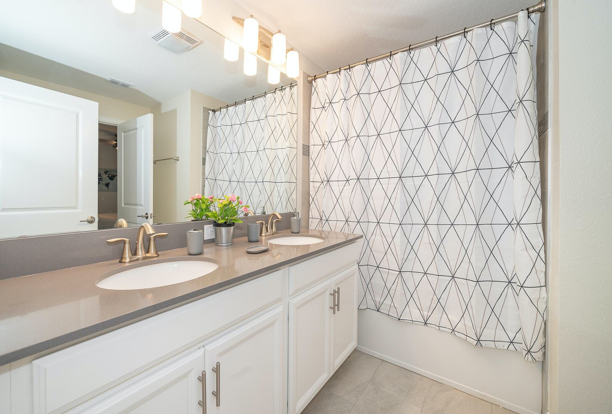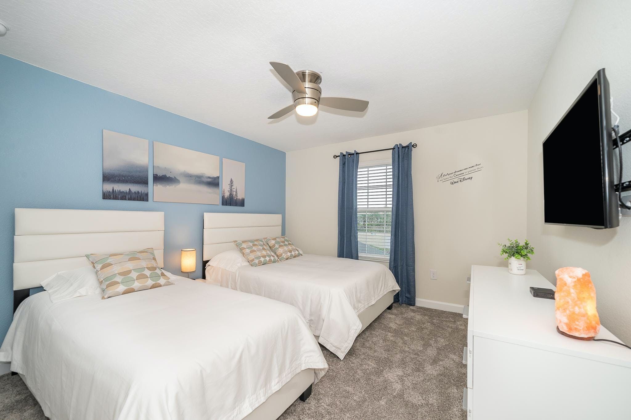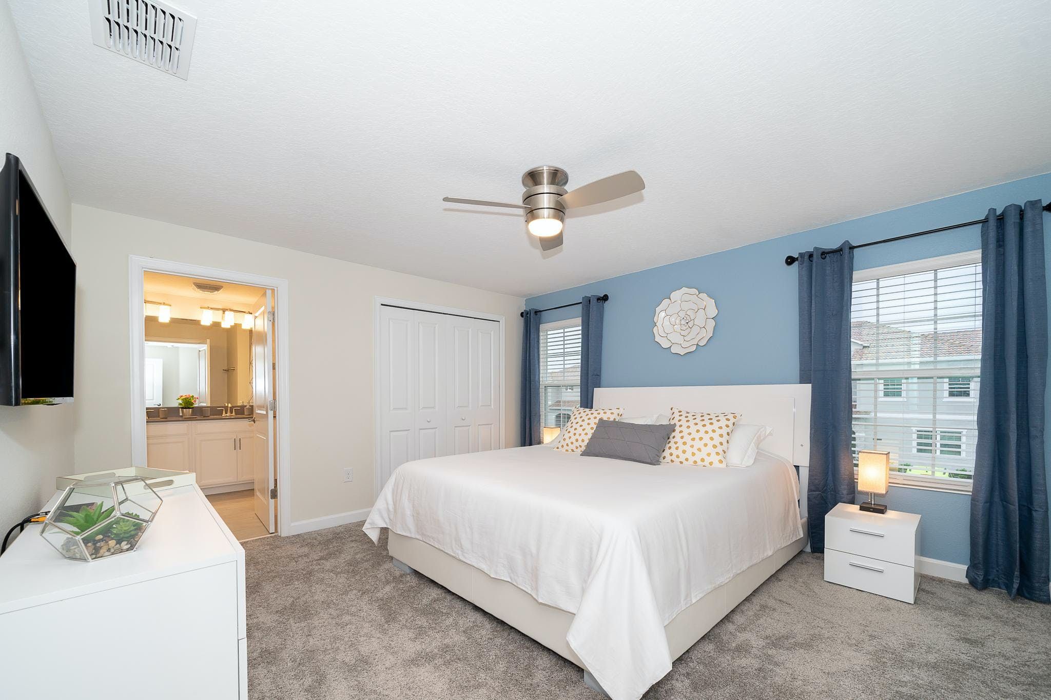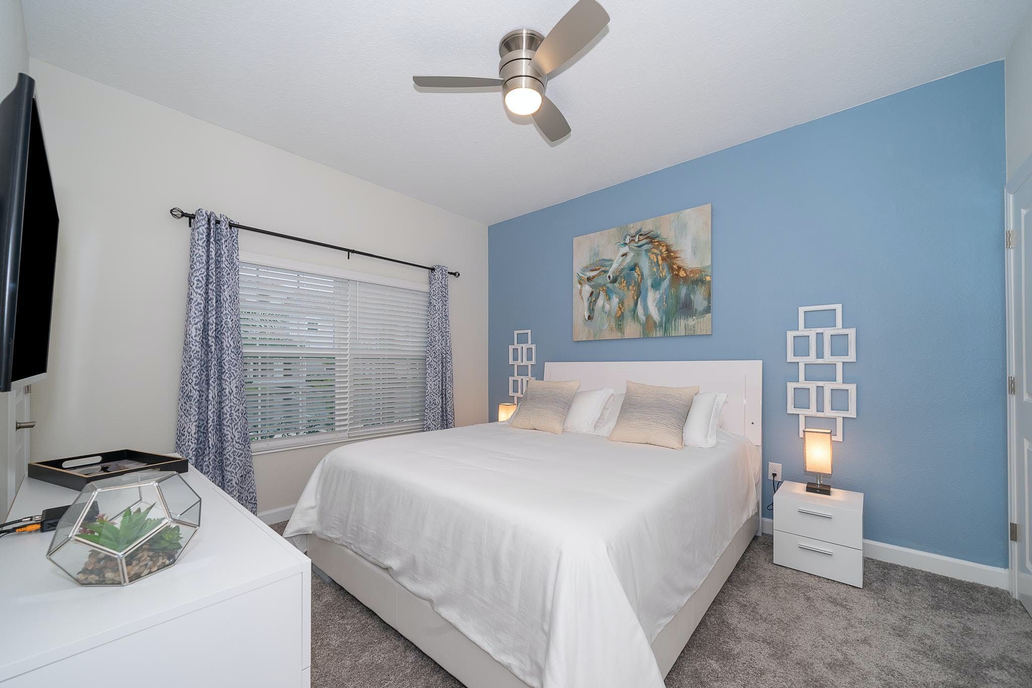 This brand new vacation rental is a stunning 4 bedroom, 3 bathroom property with a pool. The cozy beach house is located in the sought-after Storey Lake Resort, making it the perfect destination for an unforgettable vacation. The bedrooms are tastefully decorated, with one King bedroom downstairs, one King suite, and two bedrooms each with a full & twin beds. The location is ideal, being the closest community to Disney, Disney Springs, Malls and Walmart. The resort features a fantastic clubhouse with excellent amenities including two pools (one with a lazy river), restaurant and gym. Guests will enjoy relaxing on the patio by the pool or taking advantage of all of the great amenities that this resort has to offer.