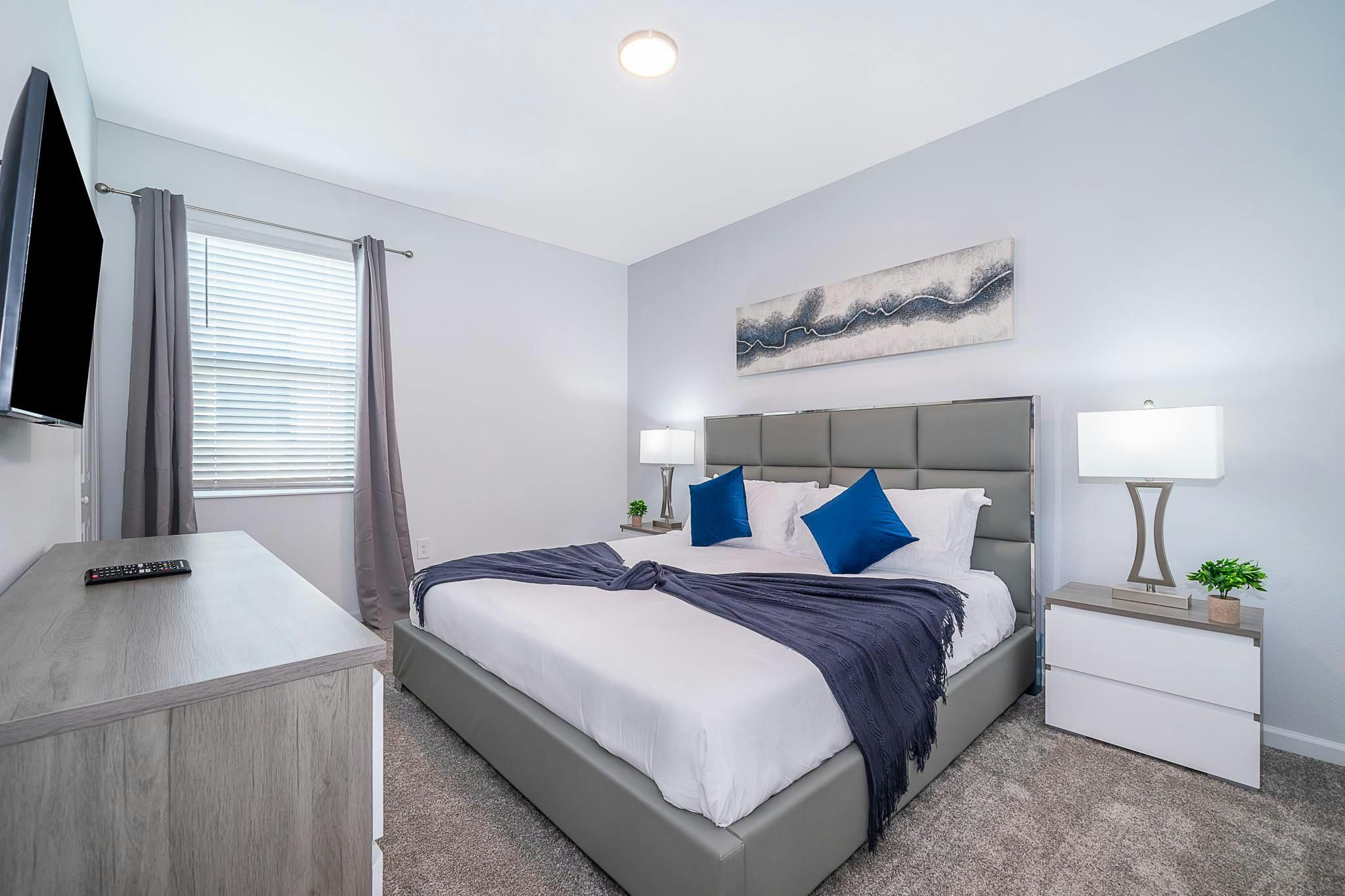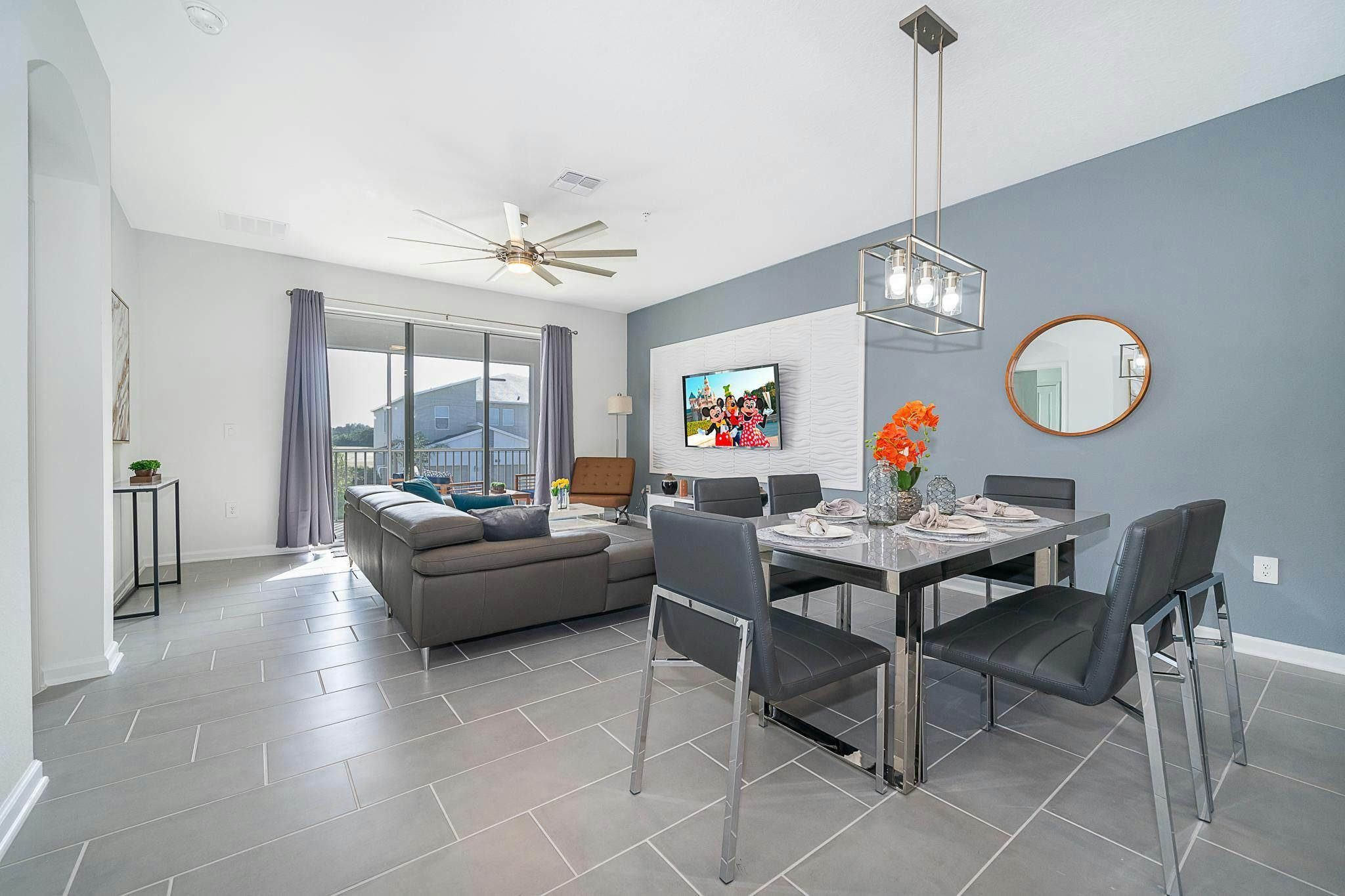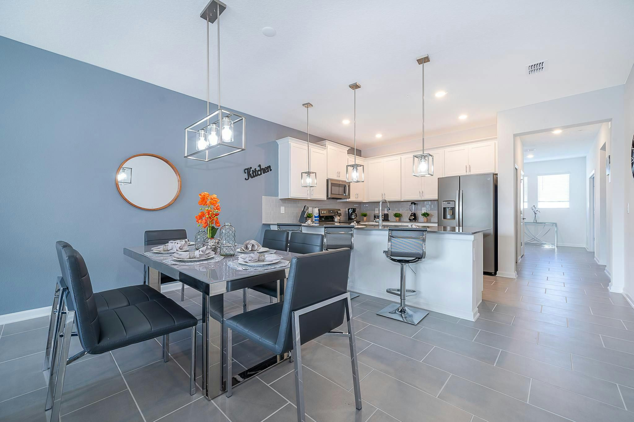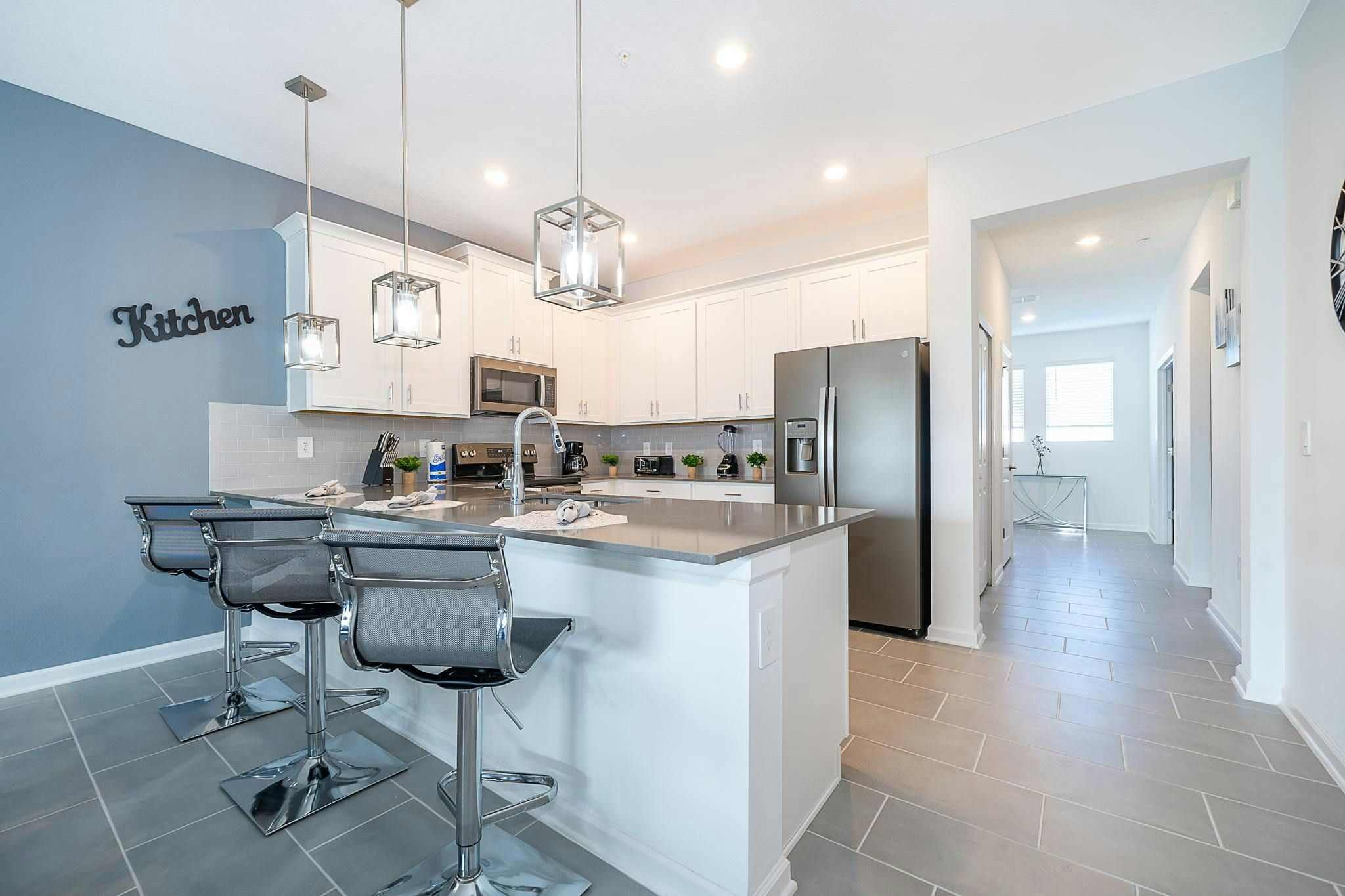 This stunning vacation rental condo is perfect for a family or group of friends. Located in the prestigious Champions Gate Resort, it boasts 3 beautiful bedrooms and 2 modern bathrooms. The bedrooms include a spacious on-suite King bedroom, another King bedroom, and a bedroom with two full size beds. The condo is situated on a golf course and also features a game room complete with a pool table. The resort is in close proximity to Disney, restaurants, and shopping centers. Guests can enjoy the amenities at the Clubhouse which includes 2 pools, a lazy river, restaurant, gym, and business center. This beautiful condo is also just steps away from golf courses and tennis courts.