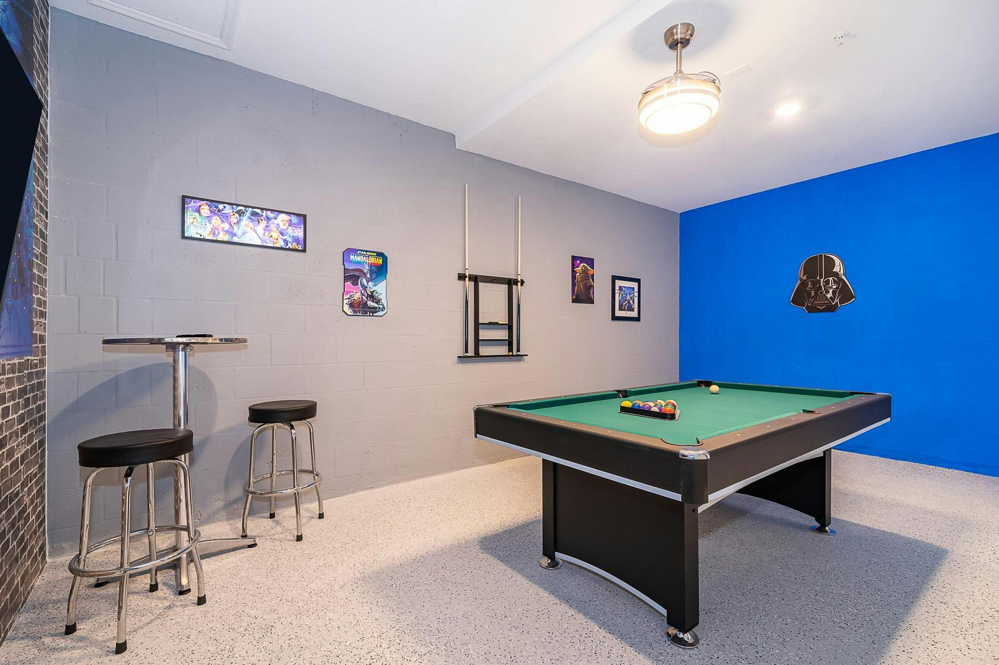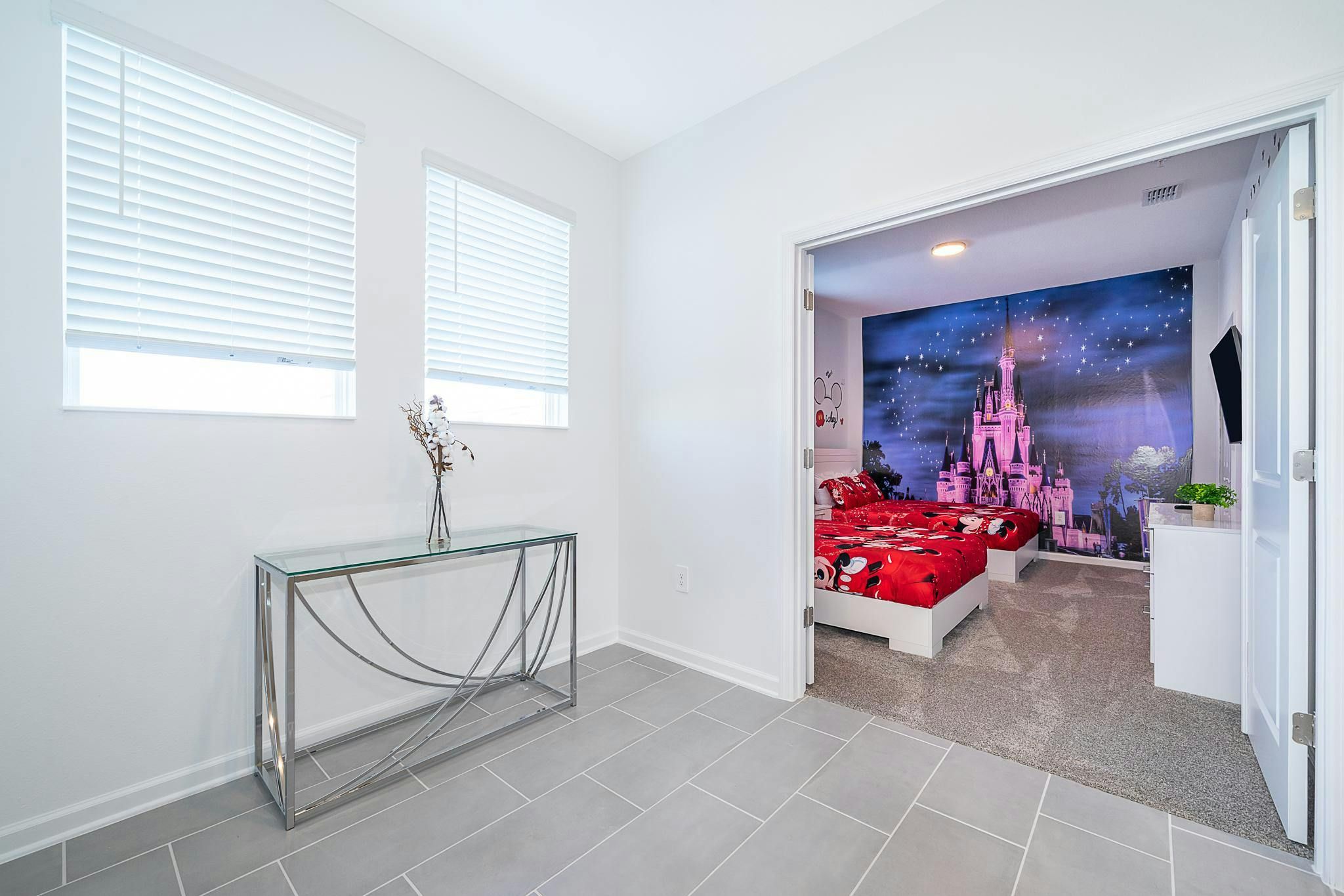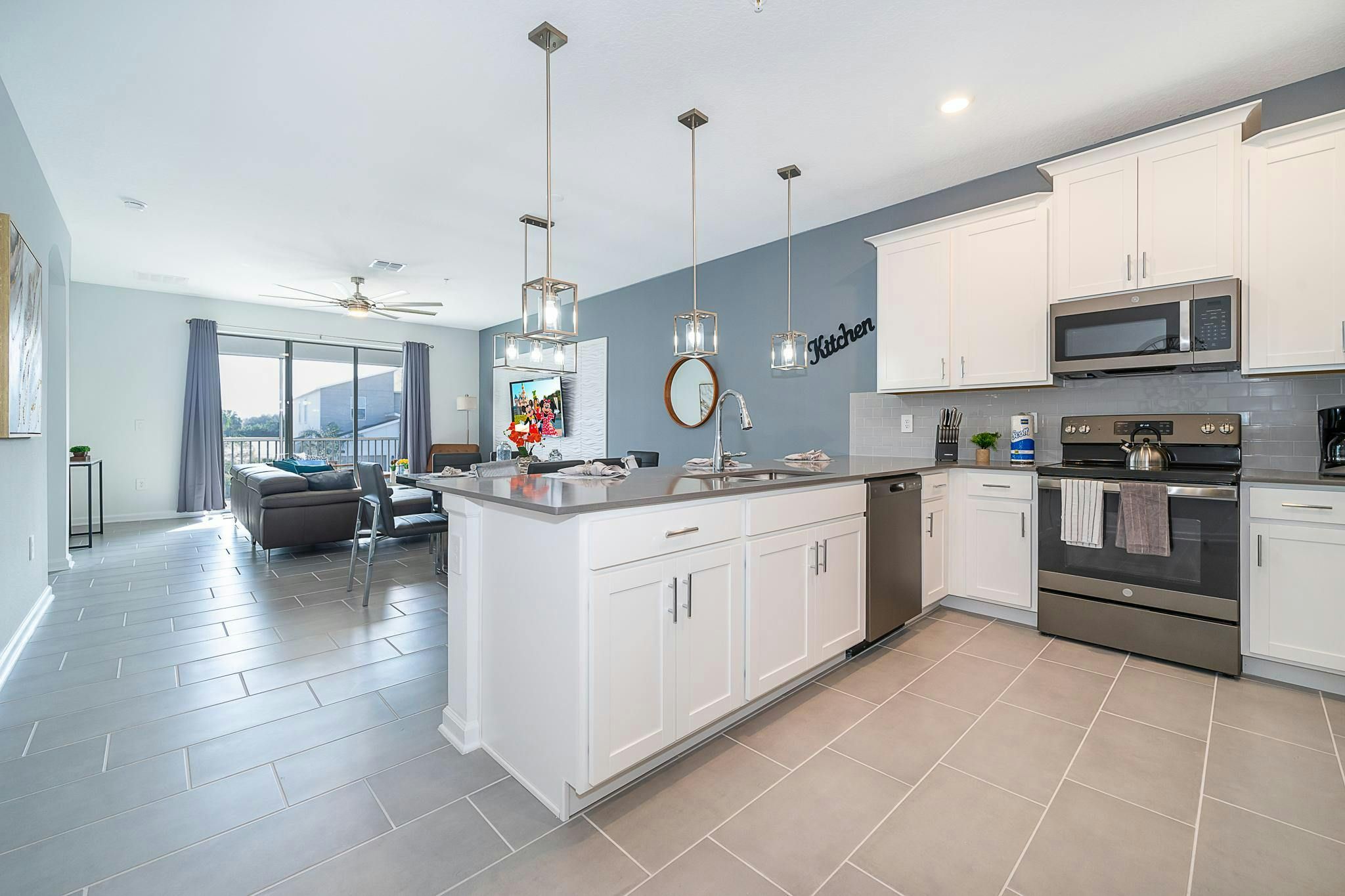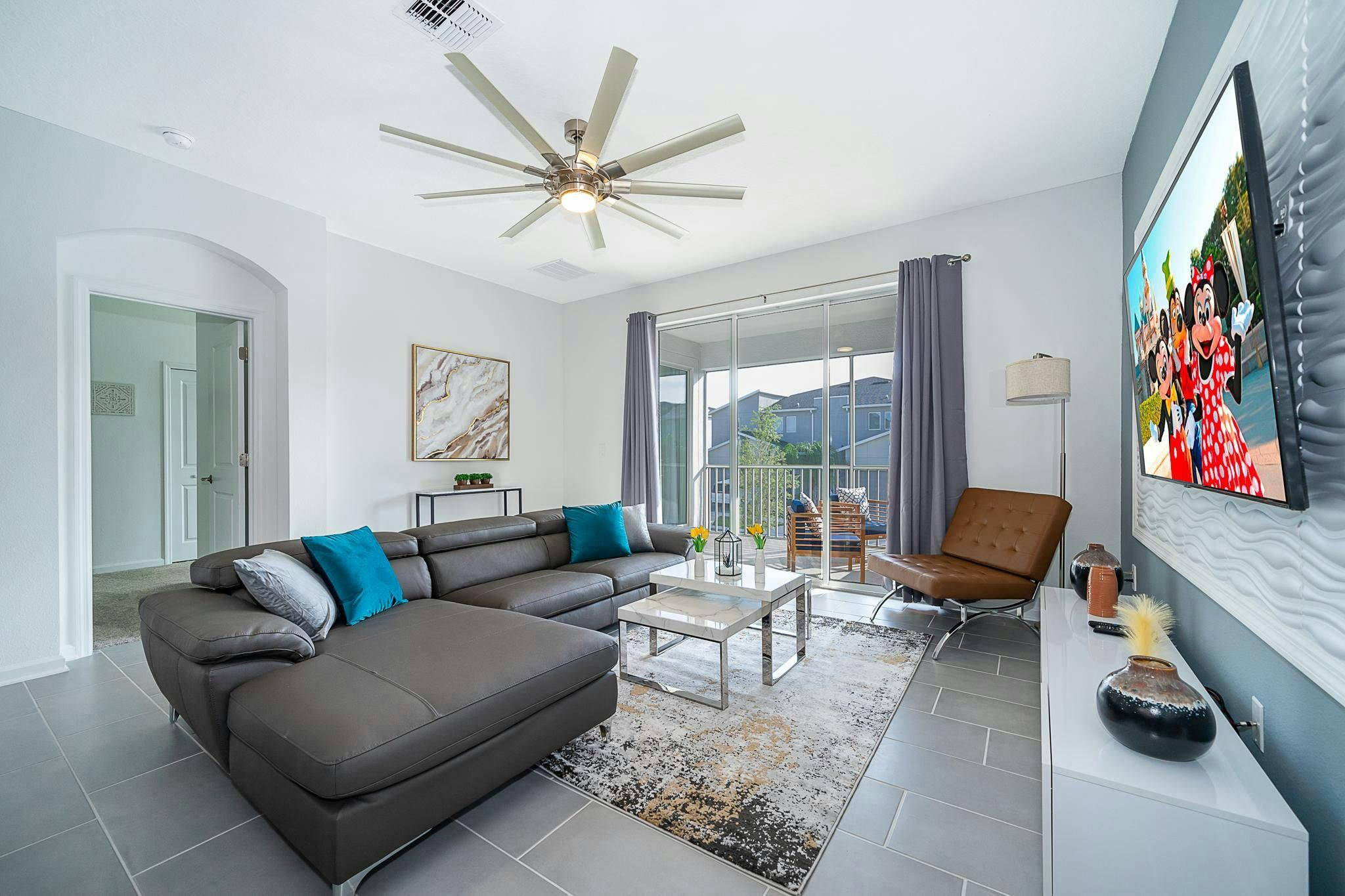 This stunning vacation rental condo is perfect for a family or group of friends. Located in the prestigious Champions Gate Resort, it boasts 3 beautiful bedrooms and 2 modern bathrooms. The bedrooms include a spacious on-suite King bedroom, another King bedroom, and a bedroom with two full size beds. The condo is situated on a golf course and also features a game room complete with a pool table. The resort is in close proximity to Disney, restaurants, and shopping centers. Guests can enjoy the amenities at the Clubhouse which includes 2 pools, a lazy river, restaurant, gym, and business center. This beautiful condo is also just steps away from golf courses and tennis courts.