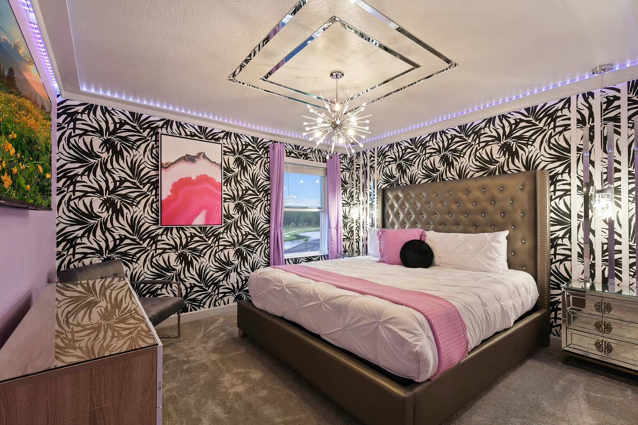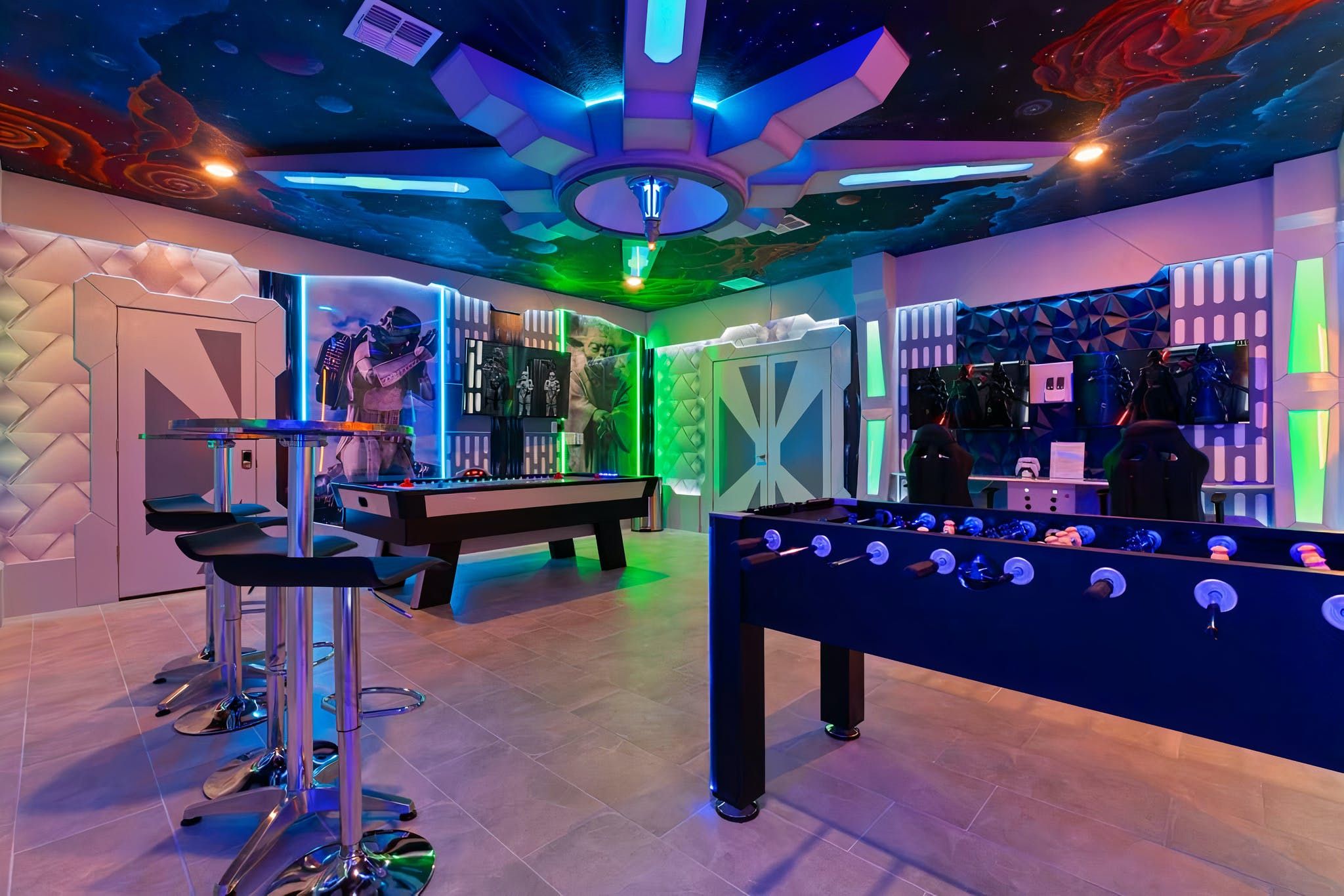 Disney fans will love this unique villa, with its character-themed bedrooms and Star Wars games room. Located just 7 miles from Walt Disney World Resort (and 12 miles from Universal Studios) it’s the perfect base from which to explore Florida’s theme parks. You’ll have your own pool and hot tub overlooking a lake here, as well as a six-seater cinema for watching your favourite blockbusters in style. And if that’s not enough, the home is part of the Storey Lakes Resort, so you’ll be able to use all of the shared amenities, including a water park, sports courts, and restaurants. We think this destination home is a great choice for anyone wanting an action-packed group getaway.