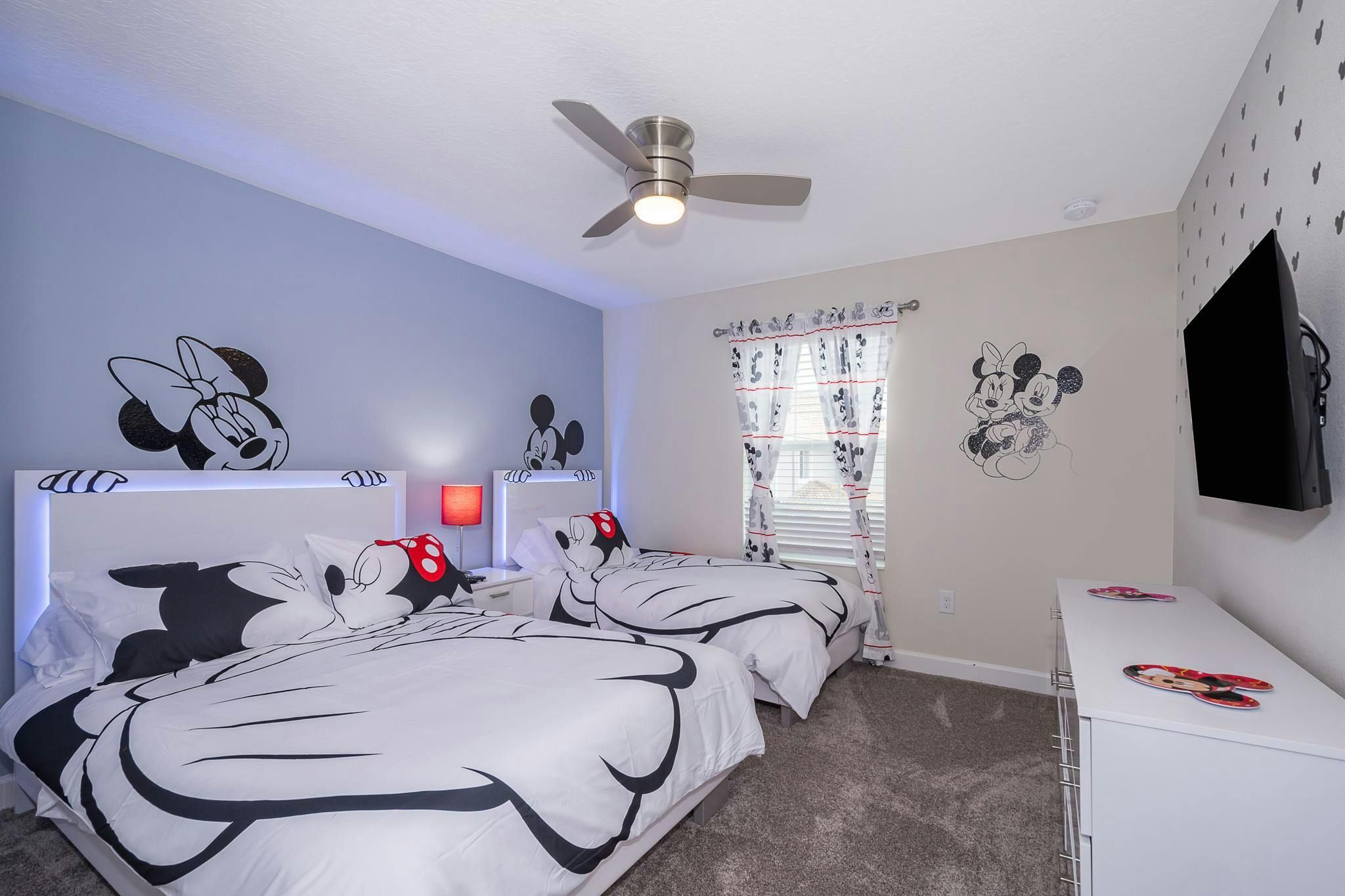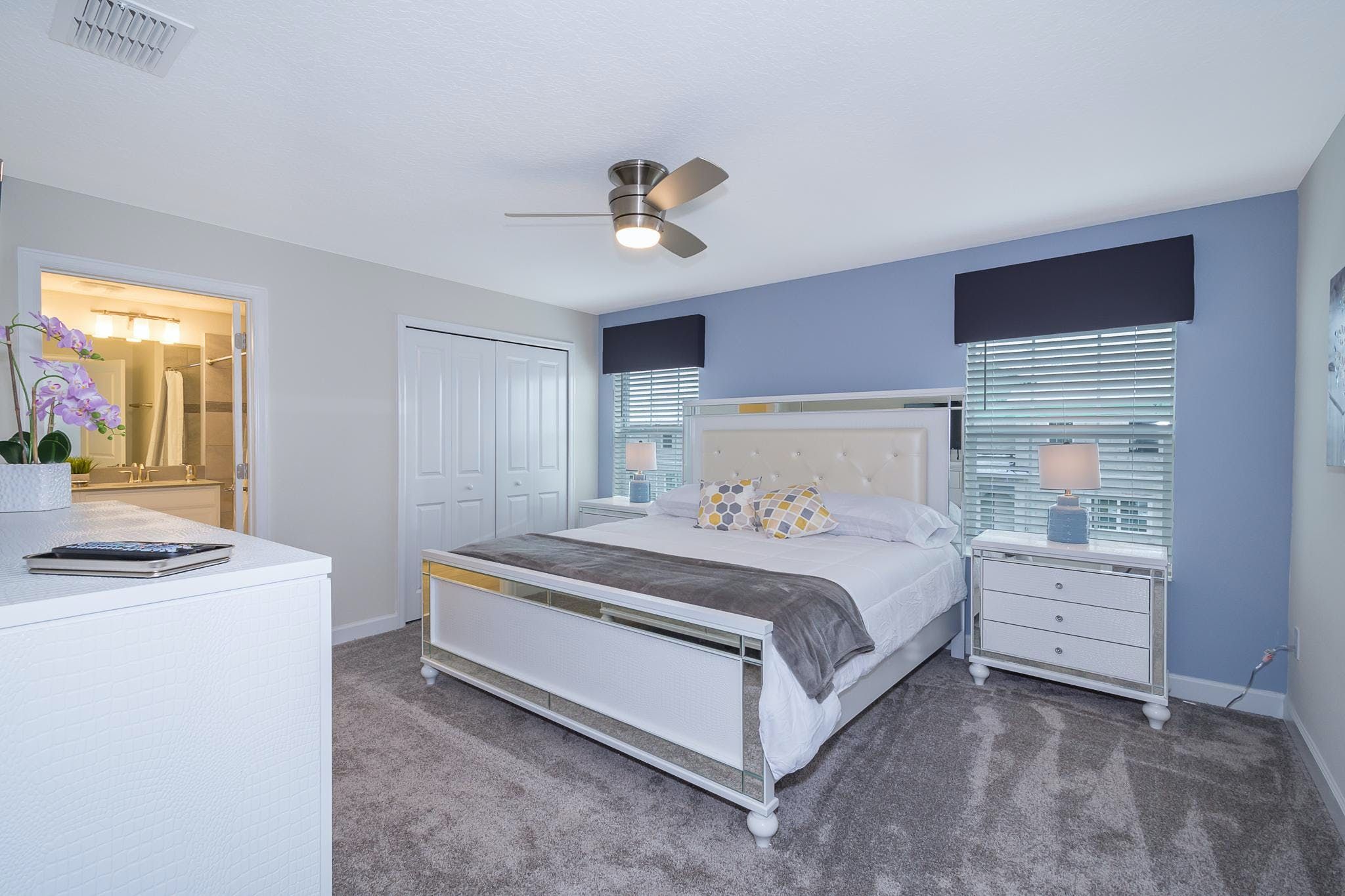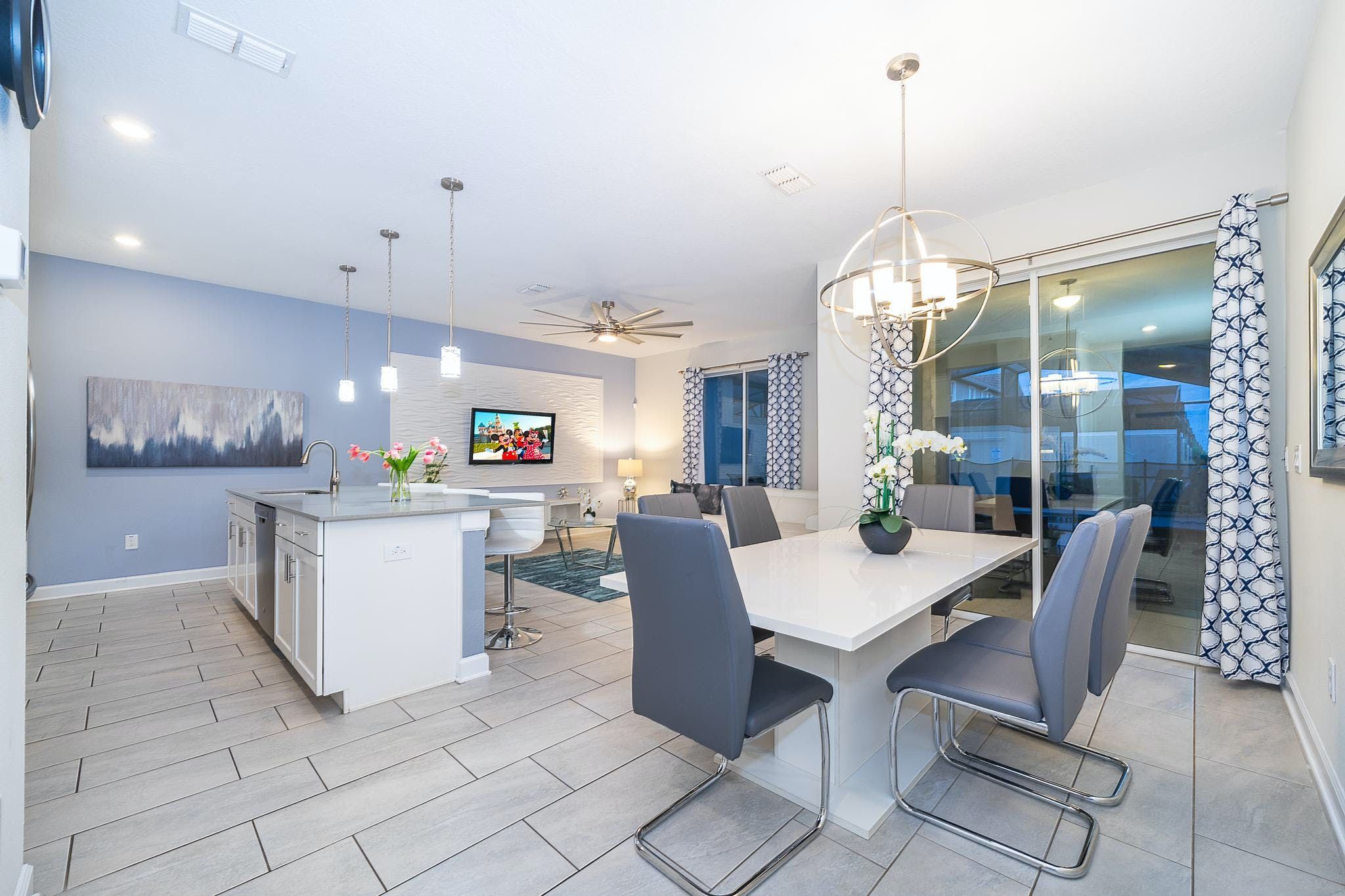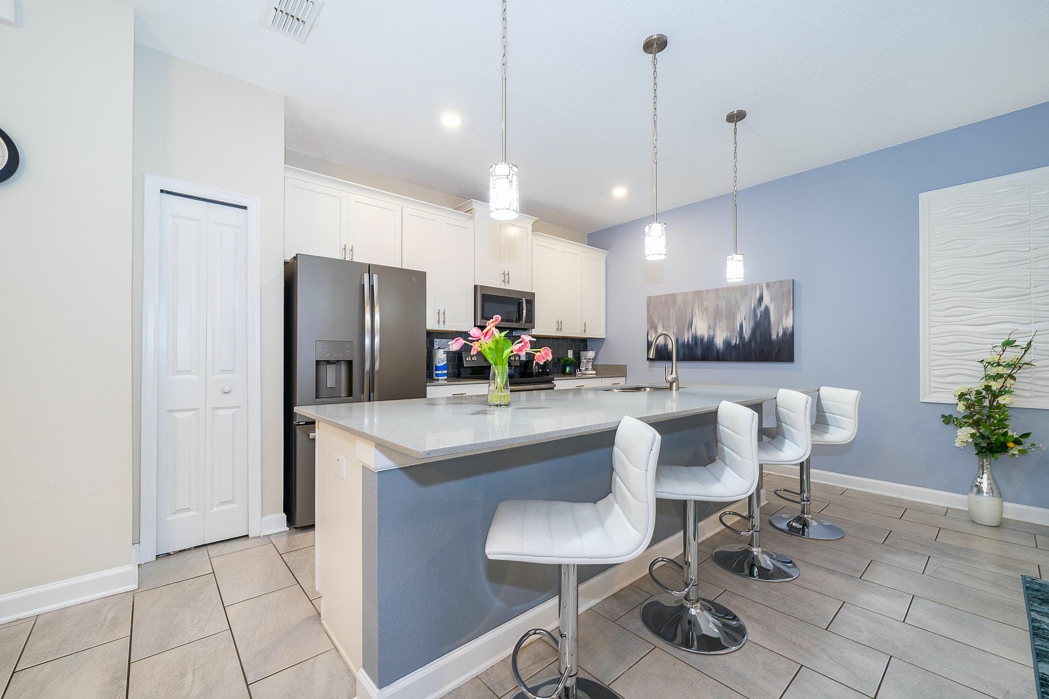 This brand new vacation rental is a stunning 4 bedroom, 3 bathroom property with a private pool. Located in the highly sought-after Storey Lake Resort, this property is perfect for families and groups looking to have a fantastic vacation. With one King bedroom downstairs, one King suite, and two bedrooms each with a full and twin bed, there's plenty of space for everyone. The resort is conveniently located close to Disney, Disney Springs, malls, and Walmart. The clubhouse has an array of great amenities including two pools (including a lazy river), a restaurant, gym, and more.