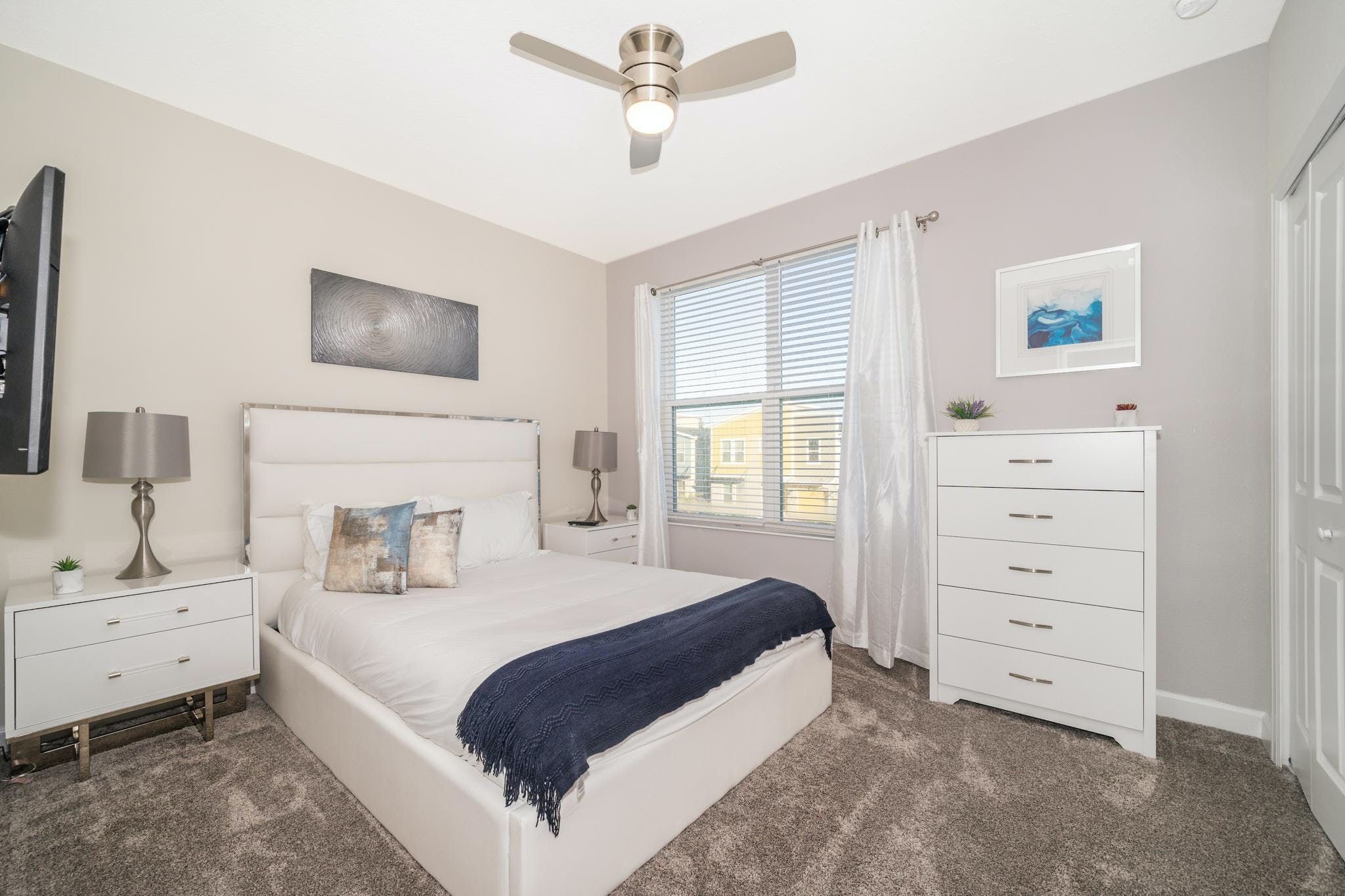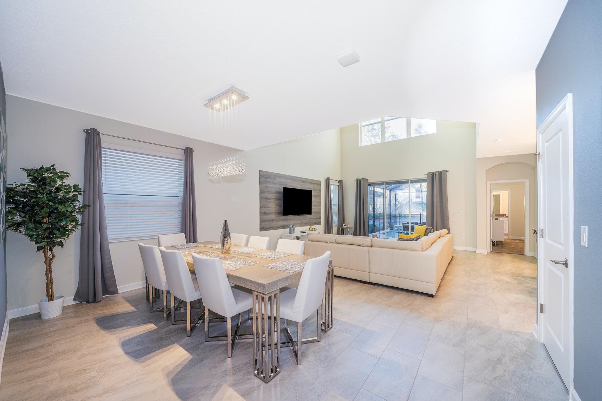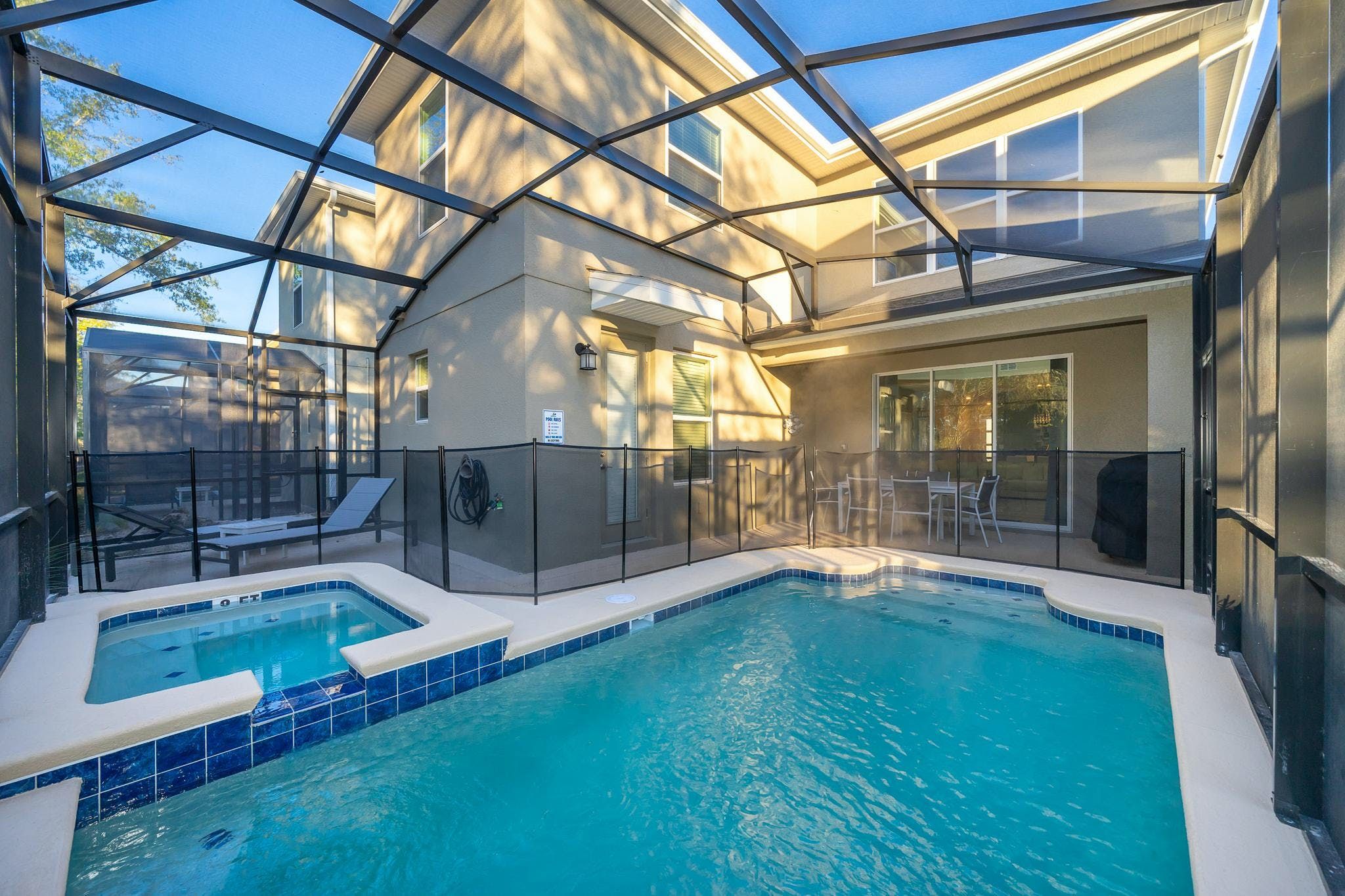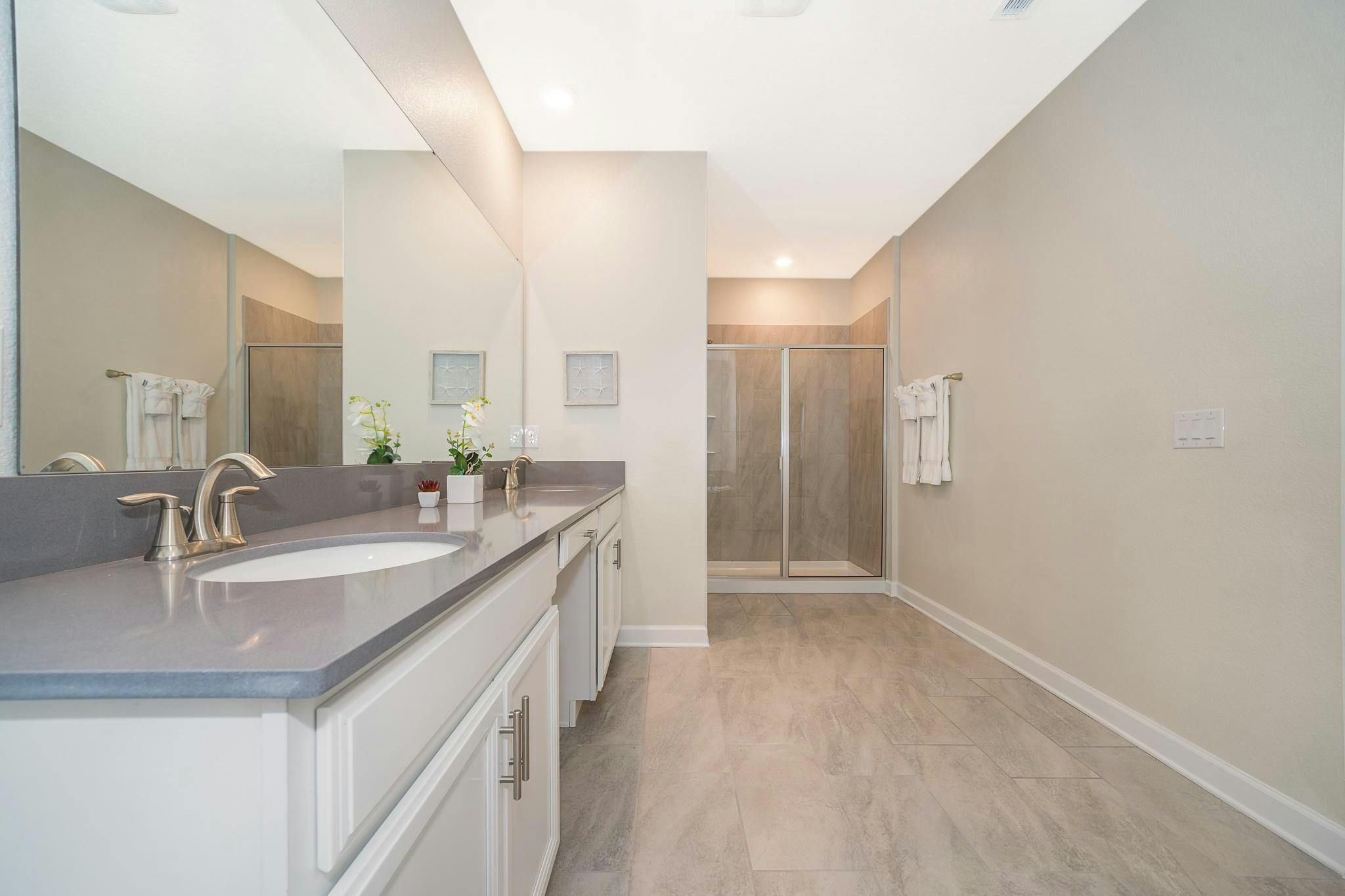 This brand new single family home features five bedrooms and five bathrooms, with two of the bedrooms located downstairs. The fully-equipped kitchen and private game room provide plenty of entertainment options for guests. The screened private pool and spa are perfect for relaxing after a long day exploring nearby attractions such as Disney and Disney Springs. The community is located on Osceola Parkway near I-4, making it easy to get around. Guests can enjoy access to the newly-opened Clubhouse Resort, which features two pools including a lazy river, restaurant, gym, business center, and other great amenities. Internet and cable are included in this newly-furnished and decorated vacation home.