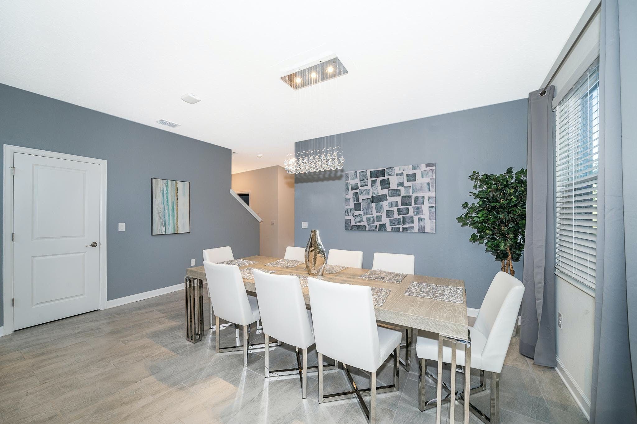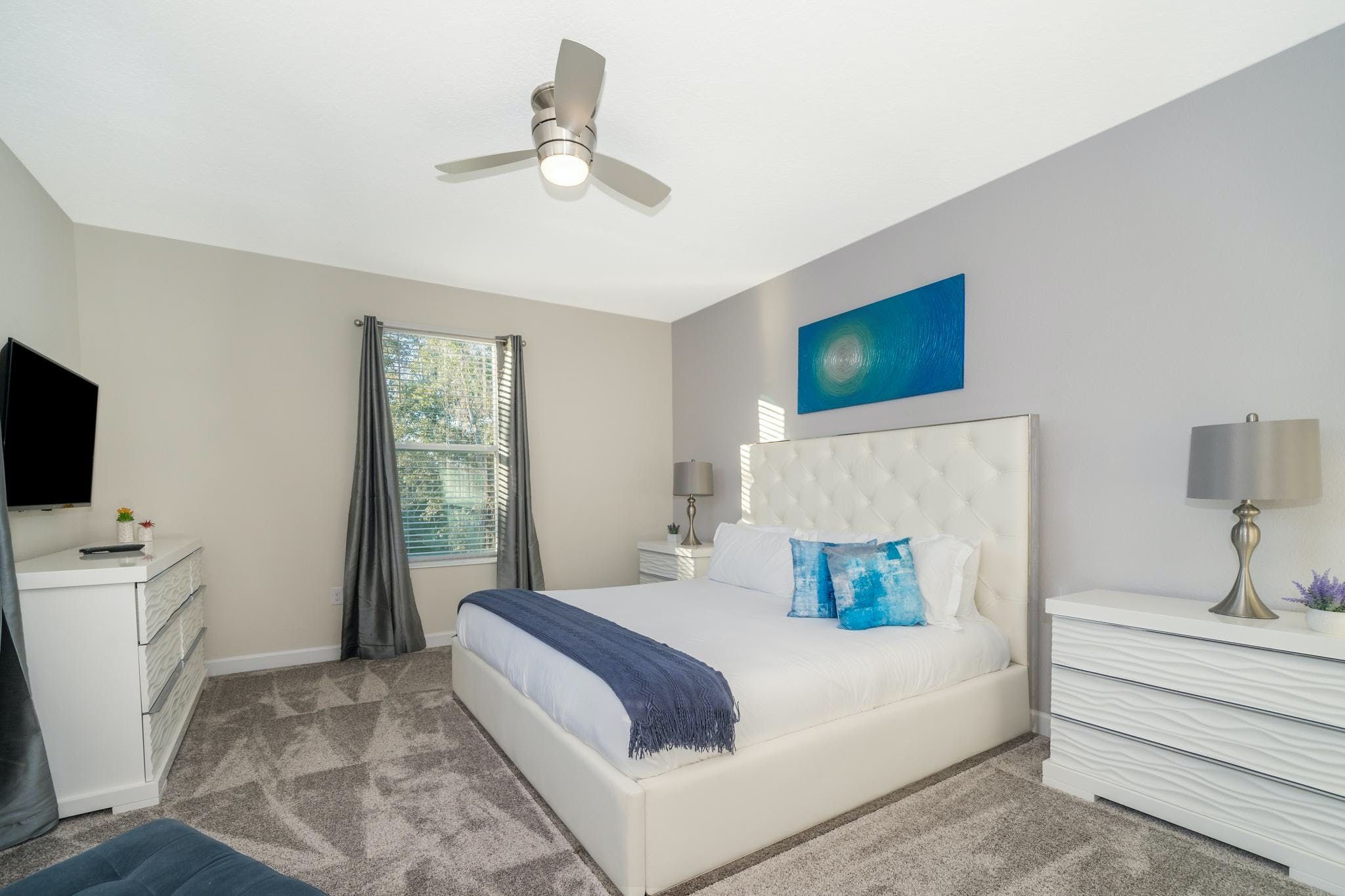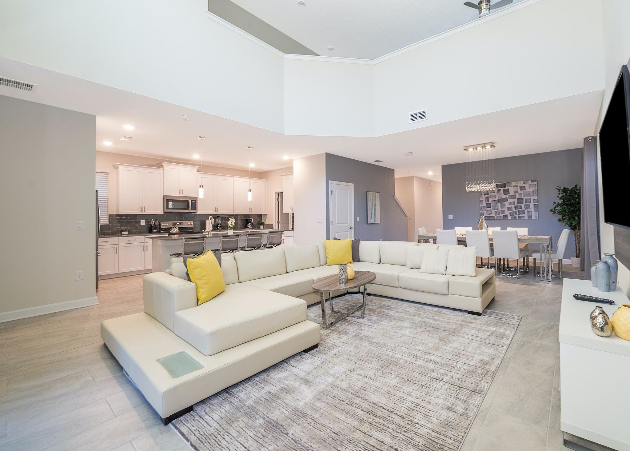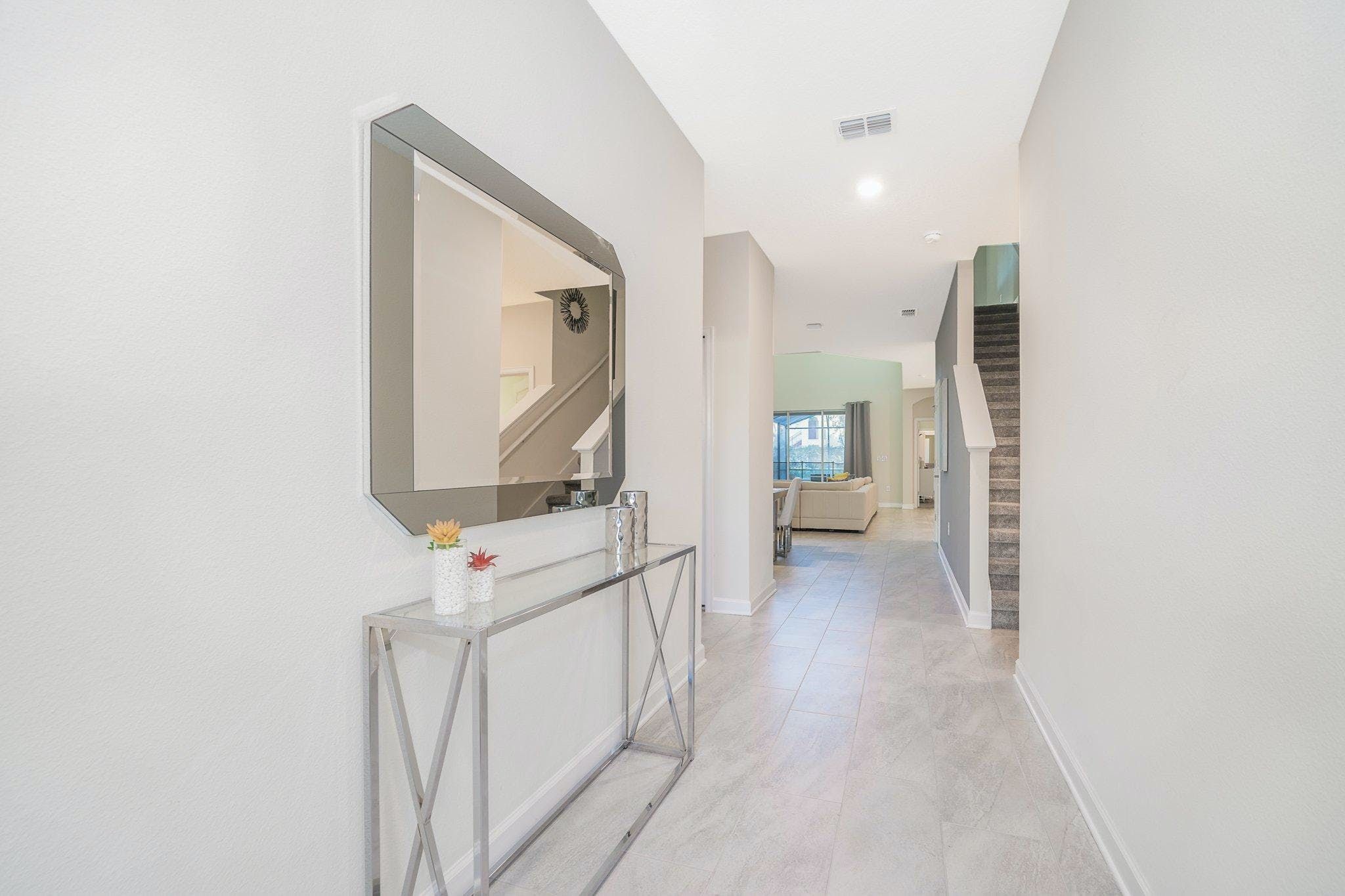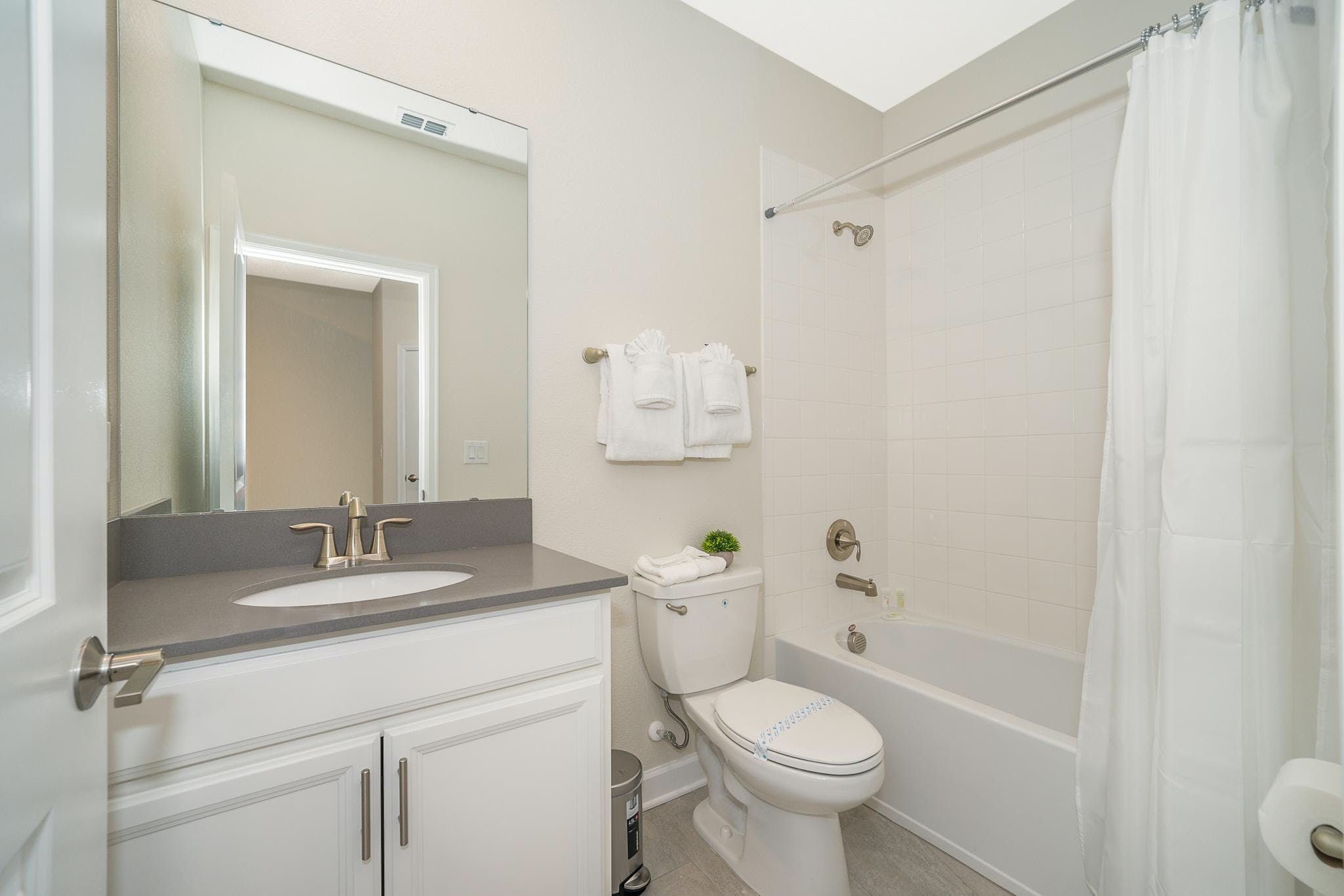 This brand new single family home features five bedrooms and five bathrooms, with two of the bedrooms located downstairs. The fully-equipped kitchen and private game room provide plenty of entertainment options for guests. The screened private pool and spa are perfect for relaxing after a long day exploring nearby attractions such as Disney and Disney Springs. The community is located on Osceola Parkway near I-4, making it easy to get around. Guests can enjoy access to the newly-opened Clubhouse Resort, which features two pools including a lazy river, restaurant, gym, business center, and other great amenities. Internet and cable are included in this newly-furnished and decorated vacation home.