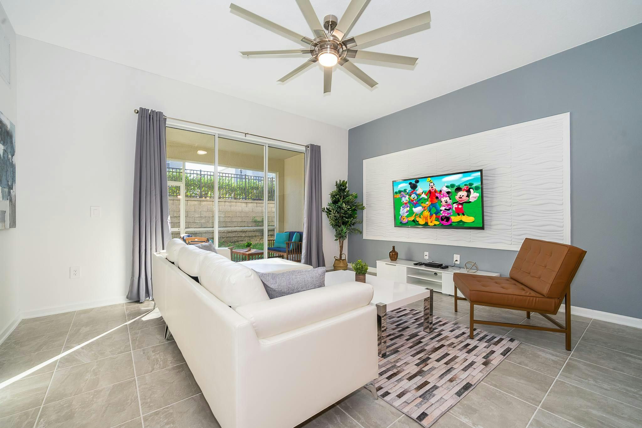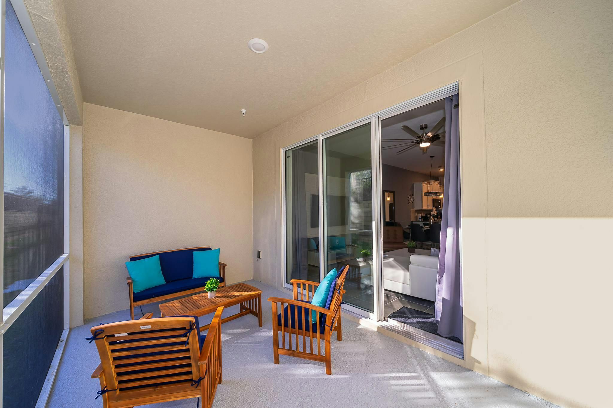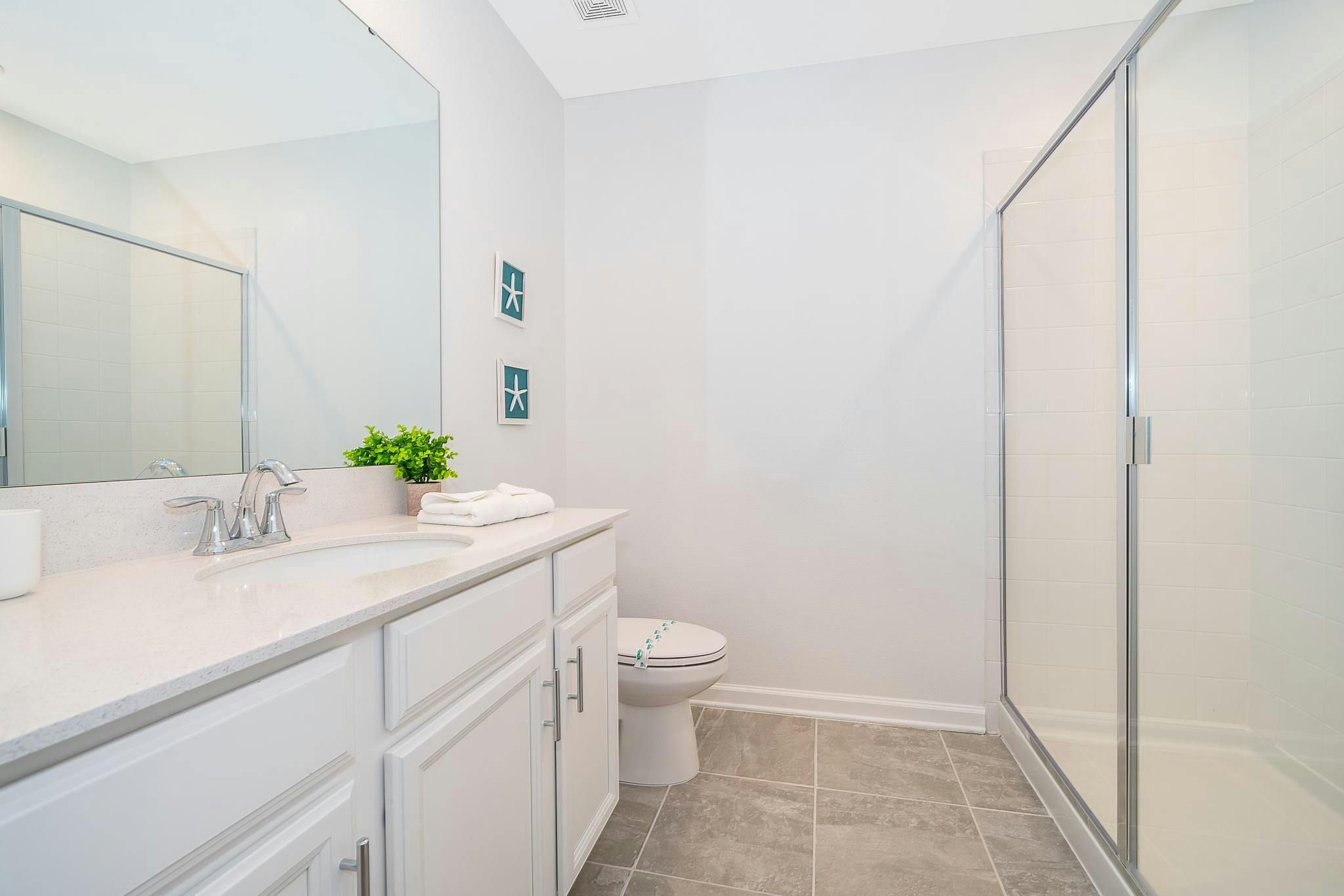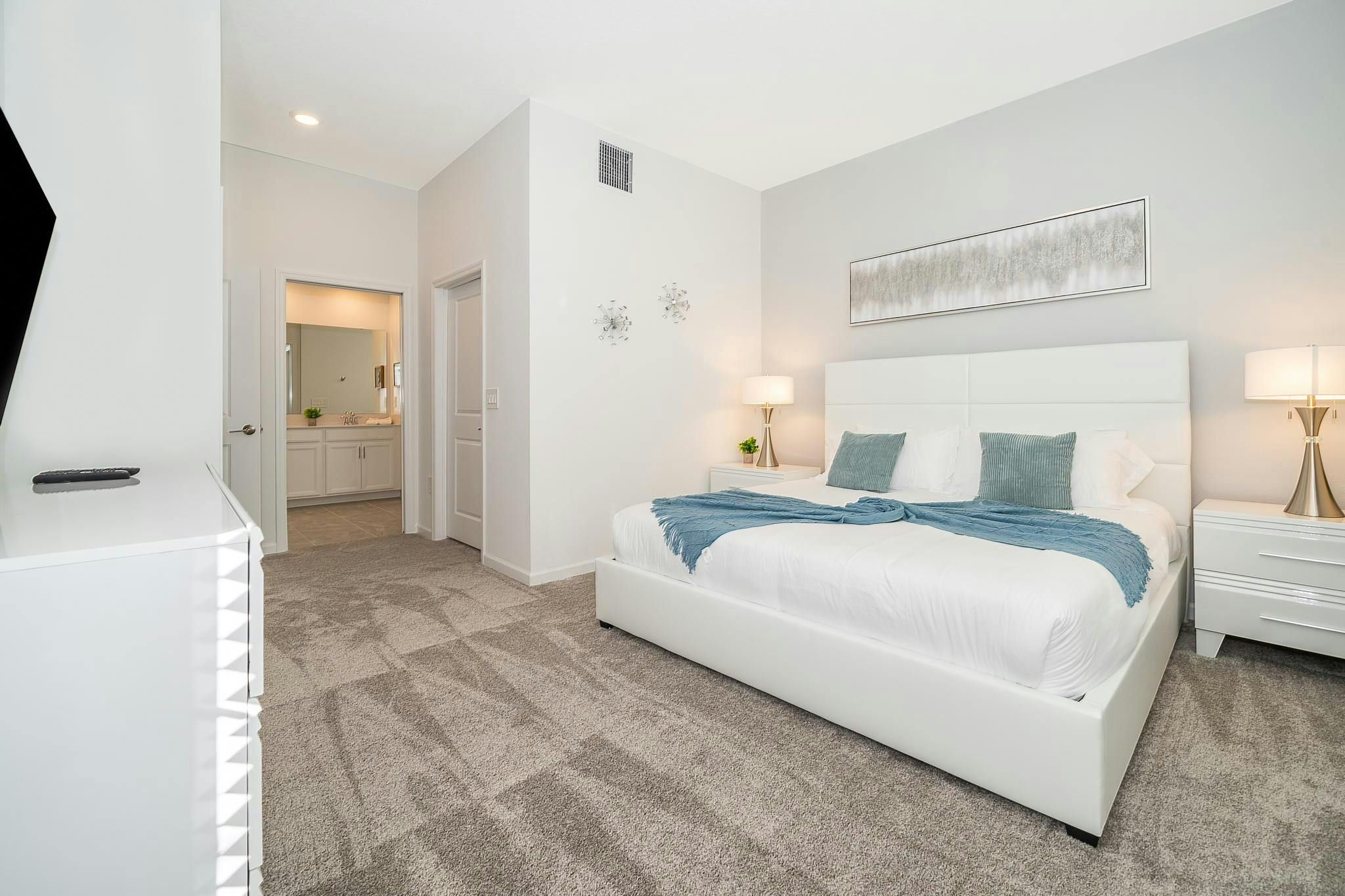 This brand new 2 bedroom, 2 bathroom vacation rental condo in Champions Gate Resort offers a fantastic vacation experience. The condo features a game room with a pool table and sleeps up to six guests. The bedrooms include one king bedroom en suite and one bedroom with two full beds. This community is located close to Disney, restaurants, and shopping. The clubhouse offers great amenities such as two pools, a lazy river, a restaurant, a gym, and a business center. Additionally, guests will be steps away from golf courses and tennis courts.
