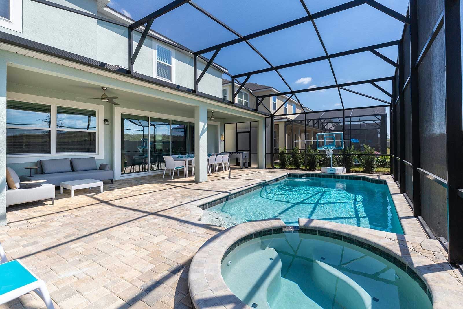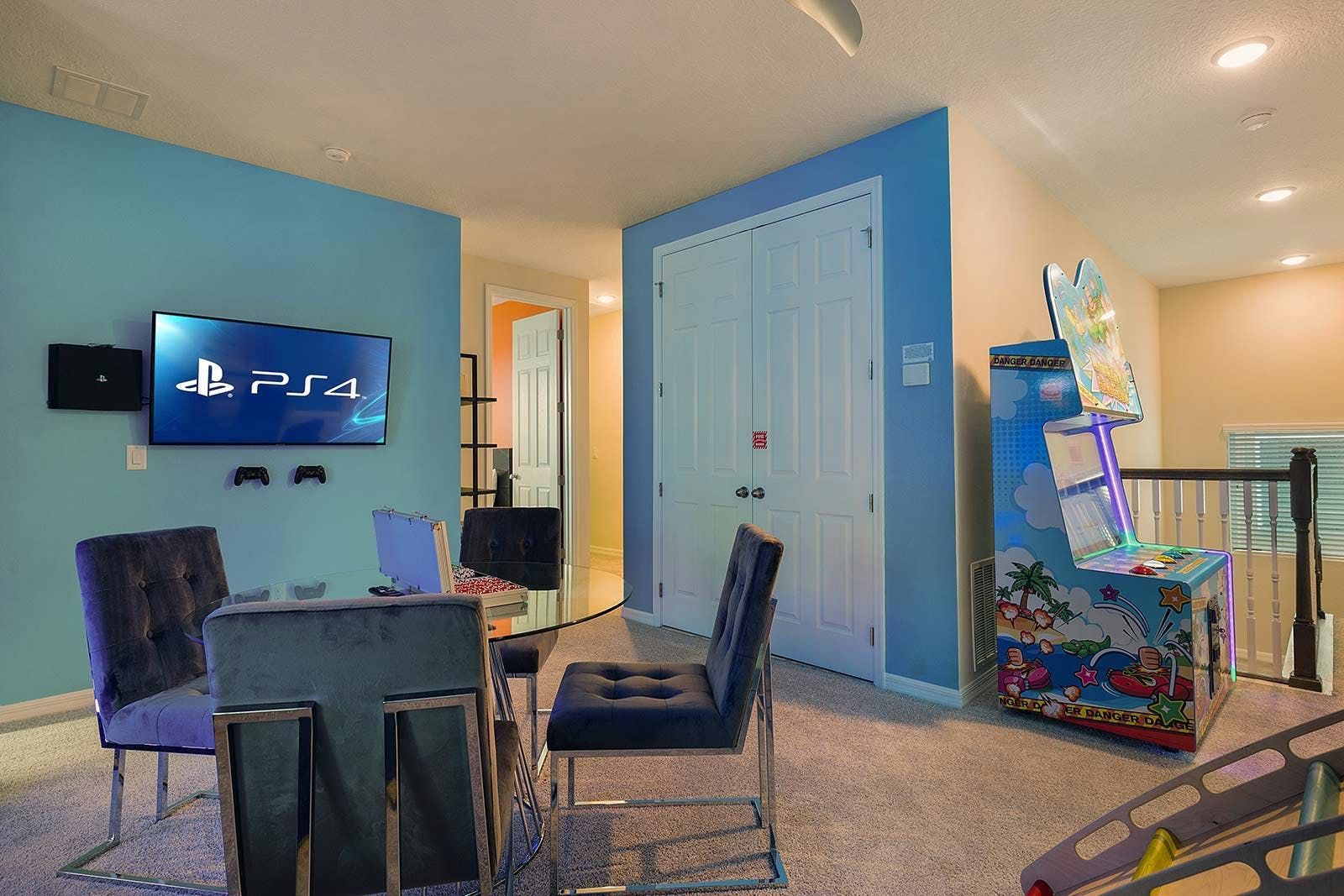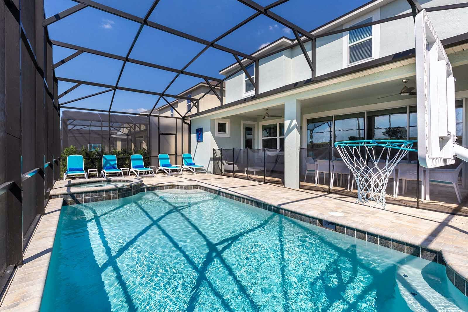 Entertaining the family couldn’t be easier at this home. It’s ideally located for trips to Disney World and Universal Orlando (both less than an hour’s drive away), but days at home might be equally exciting – in the games loft, you’ll find full-sized arcade favourites, plus a jungle gym for little ones. Movie nights get an upgrade in the private cinema room, and the private outdoor pool is the perfect place to gather with the whole family. Plus, you can enjoy resort amenities like a splash pool, surfing simulator, basketball courts, and a fitness centre. The only problem might be getting little ones to sleep – the two themed rooms are bound to provide plenty of excitement.
