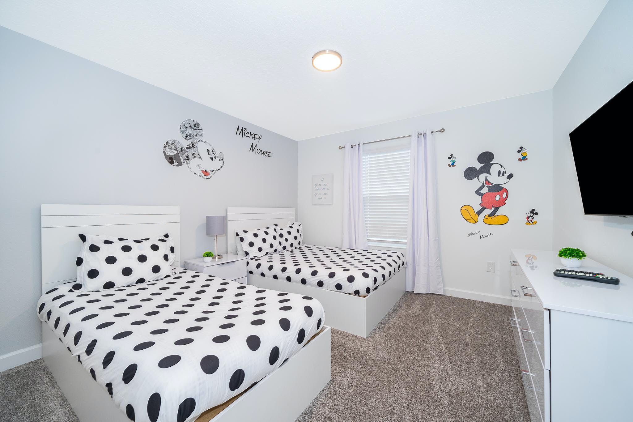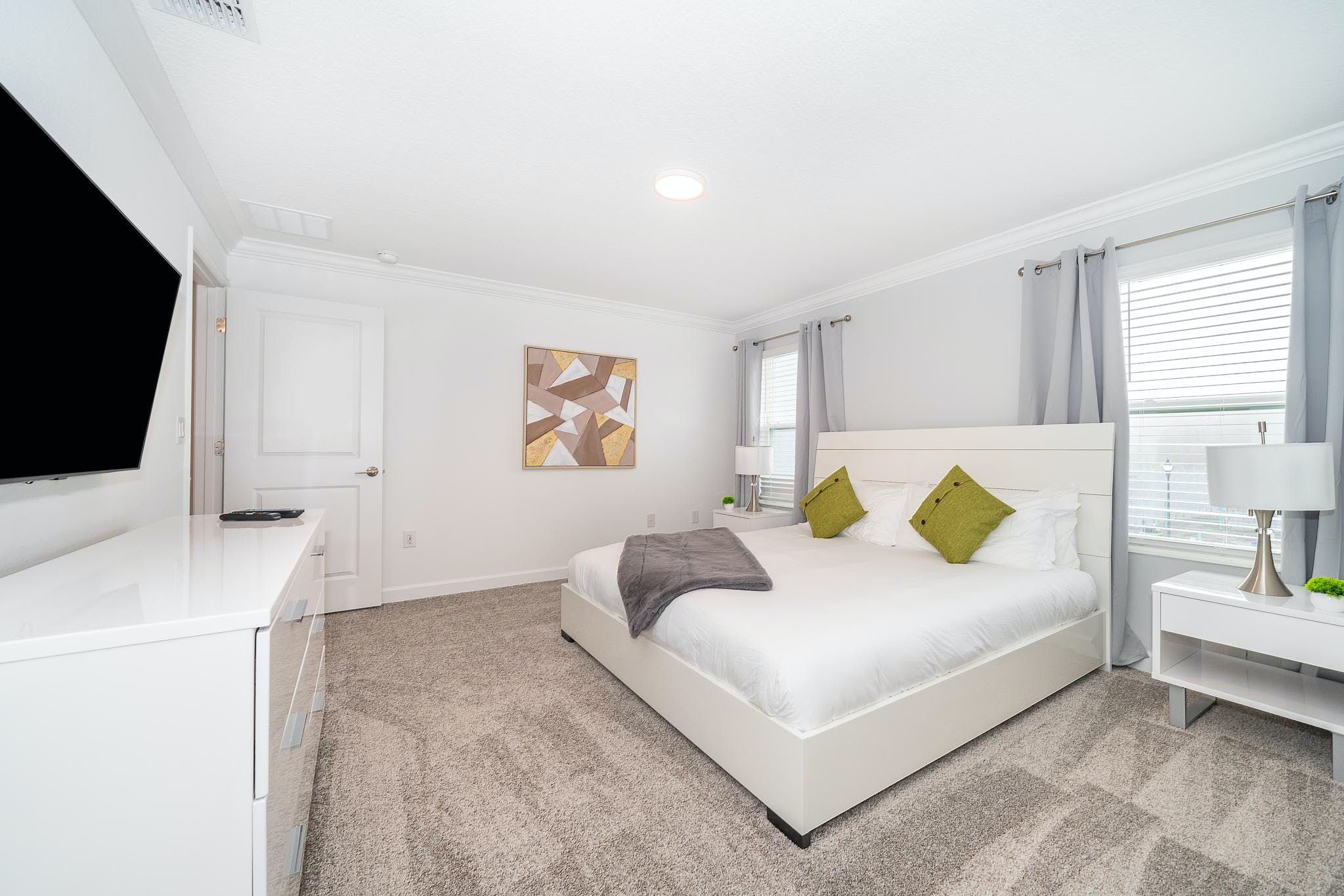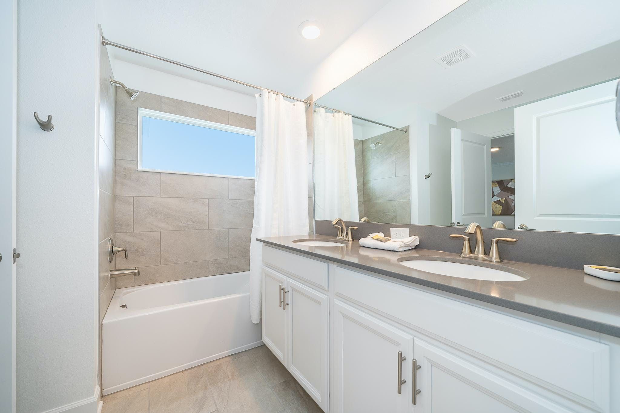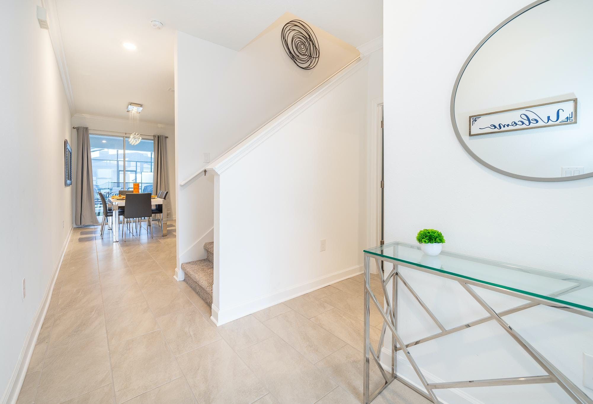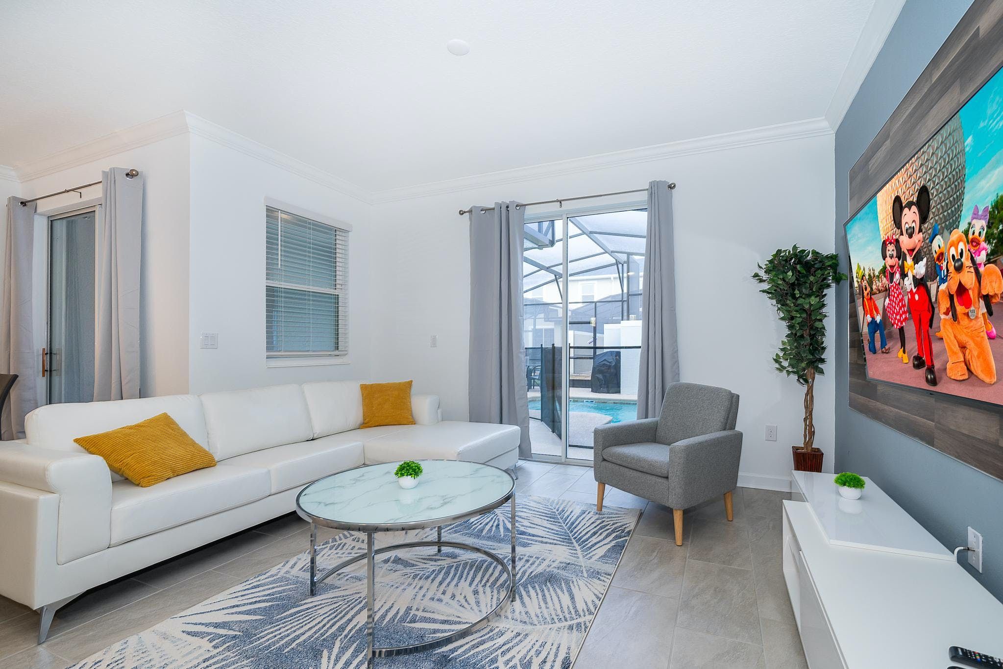 This brand new 4 bedroom, 3 bathroom vacation rental with a pool is located in Storey Lake Resort, providing guests with an exceptional vacation experience. The bedrooms include a king bedroom downstairs, a king suite upstairs, and two bedrooms with one full and one twin bed each. This resort is the closest community to Disney, Disney Springs, malls, and Walmart. Guests can enjoy the great amenities offered at the clubhouse resort such as two pools including a lazy river, restaurant, gym, and more.