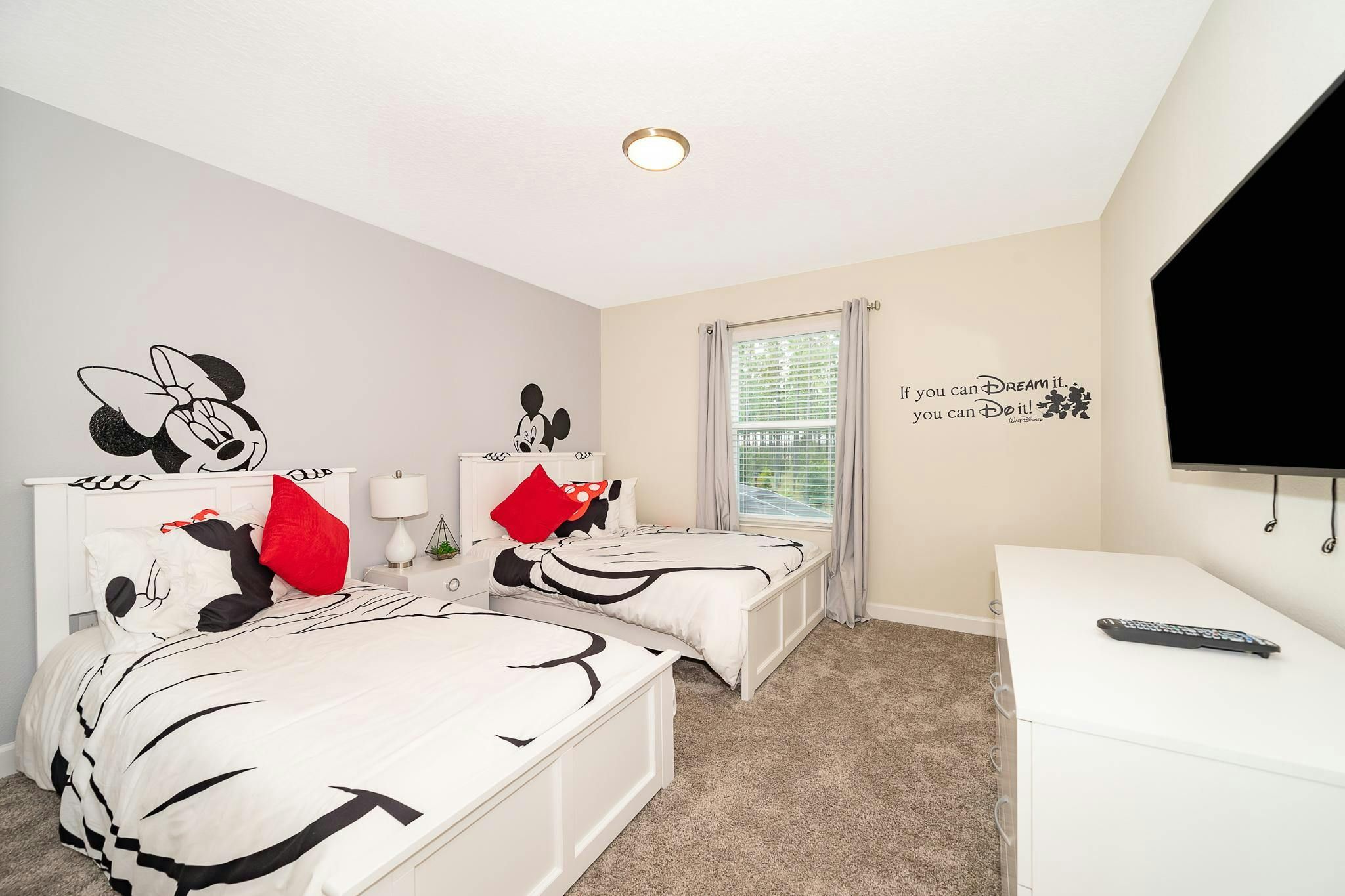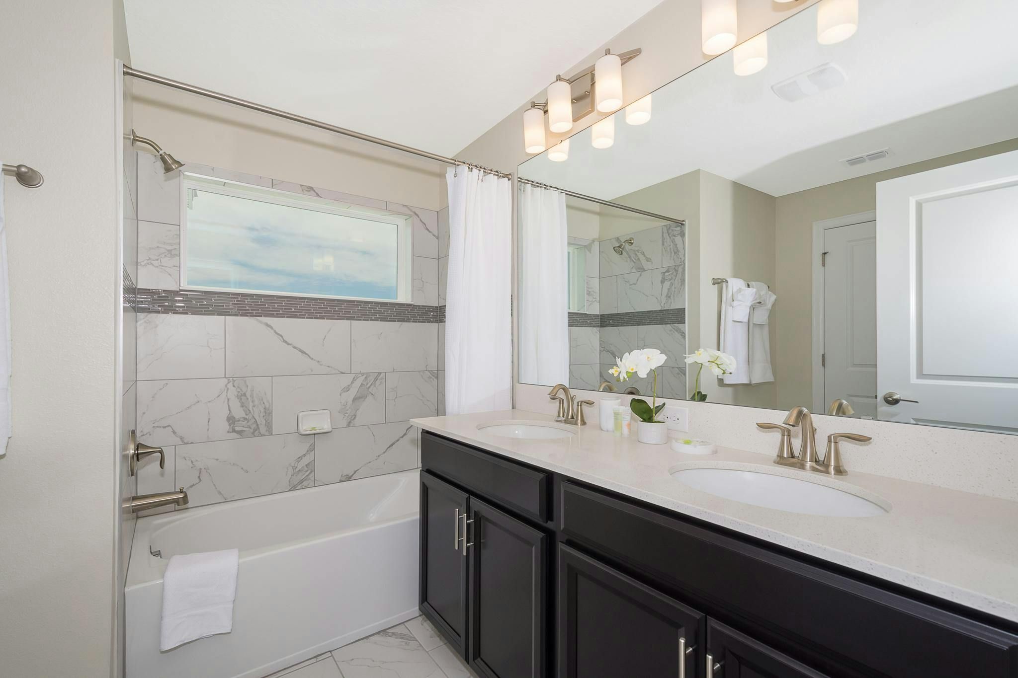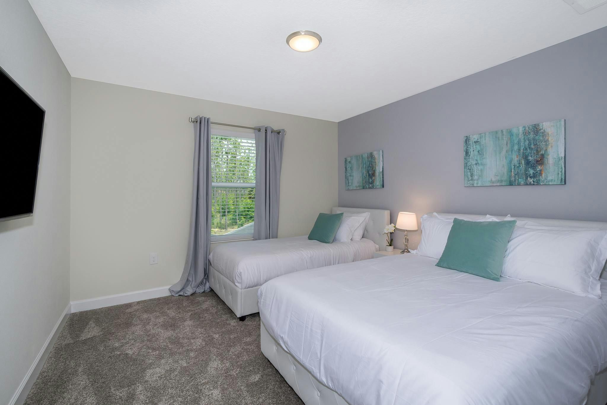 This stunning new vacation rental with a private pool is perfect for families or groups of friends. With four bedrooms and three bathrooms, it comfortably sleeps up to eight guests. The two king bedrooms and two bedrooms with one full and one twin bed each provide plenty of sleeping space. The rental is located in the Champions Gate Resort's new phase, surrounded by golf courses and tennis courts. Guests have access to the Clubhouse Resort's excellent amenities, including two pools (including a lazy river), a restaurant, gym, business center, game room, cinema, and more. Whether you want to relax by the pool or stay active with golfing and tennis, this vacation rental has something for everyone.