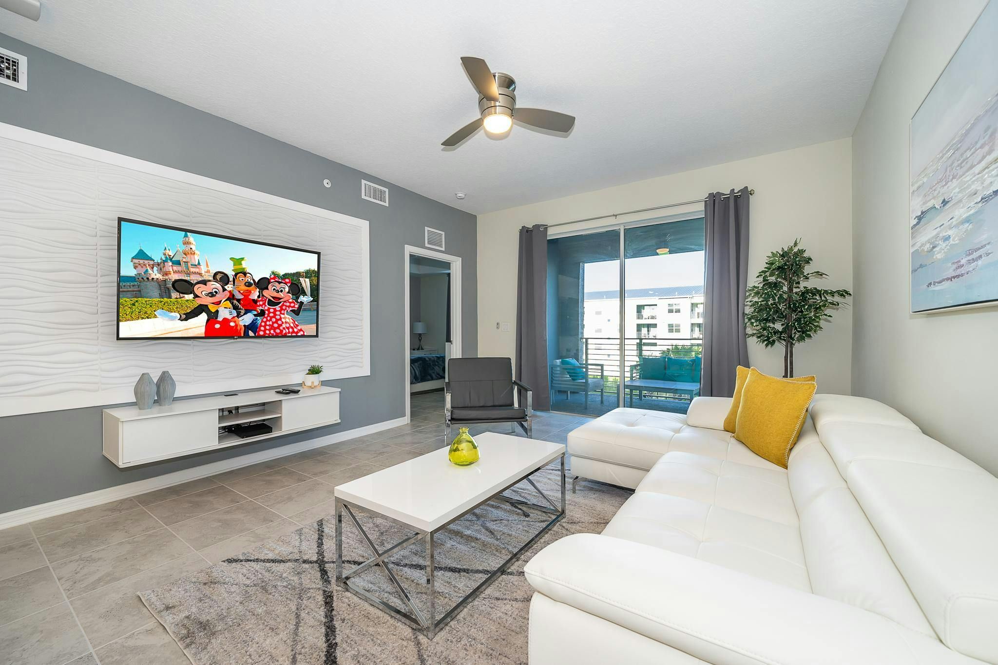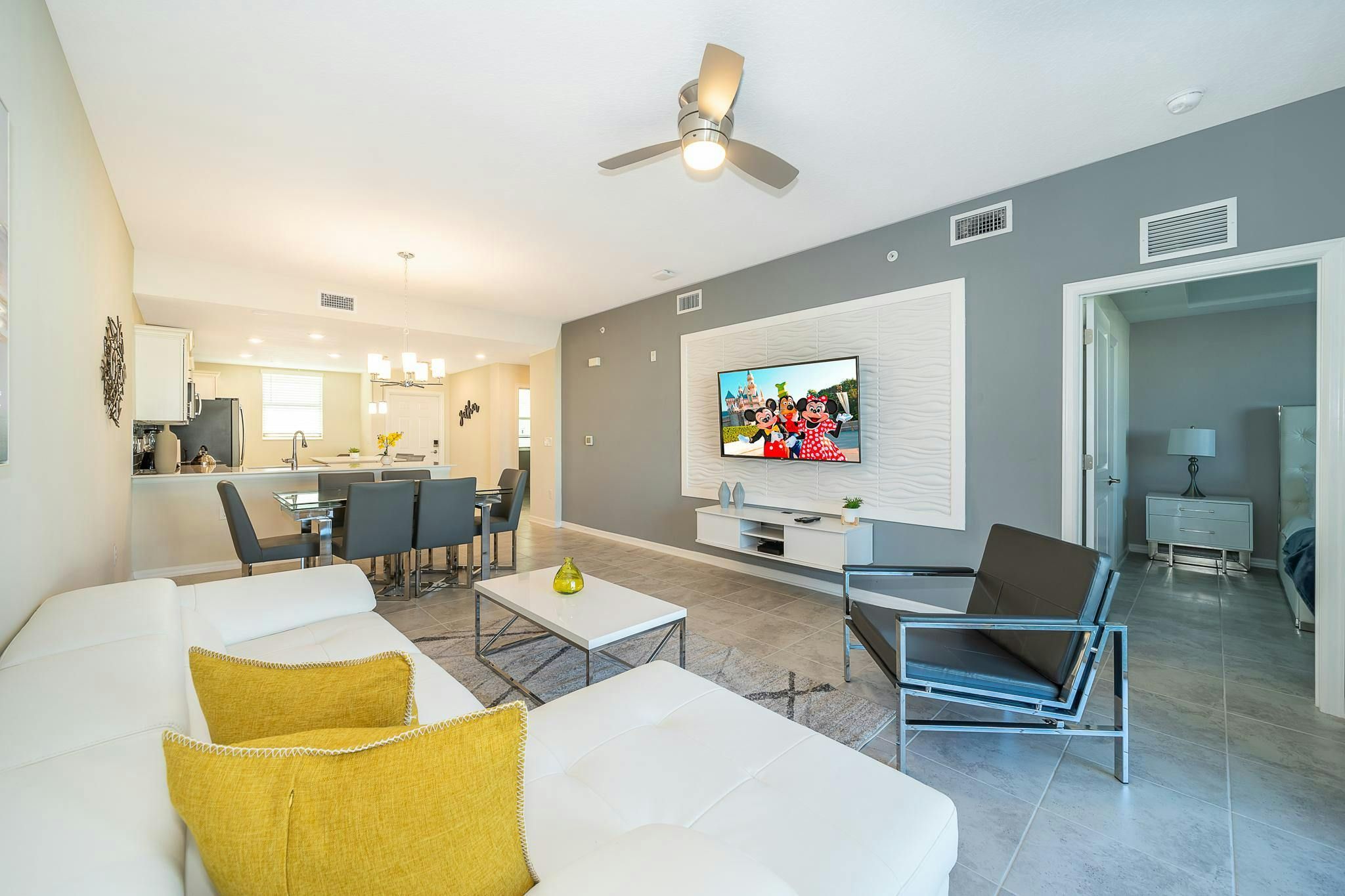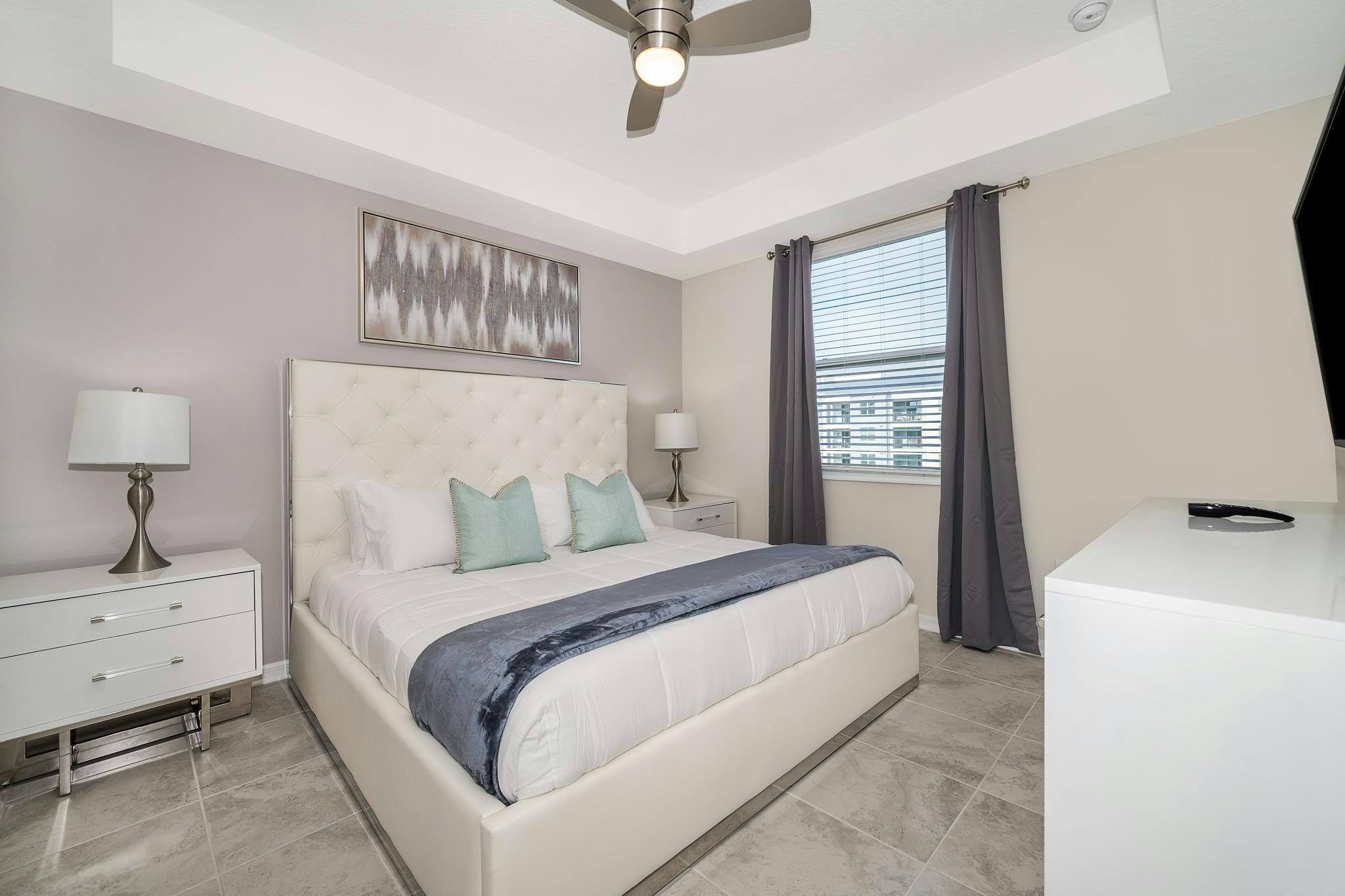 This stunning 2-bedroom, 2-bathroom vacation rental condo is located in the beautiful Storey Lake Resort and promises guests an unforgettable vacation. The condo features a king bedroom with an en-suite bathroom, as well as a bedroom with twin bunk beds and a pull-out trundle bed. The property is conveniently located close to Disney, Disney Springs, malls, and Walmart. Guests can take advantage of the resort's brand new clubhouse, which offers fantastic amenities such as two pools (including a lazy river), a restaurant, gym, business center, and more.