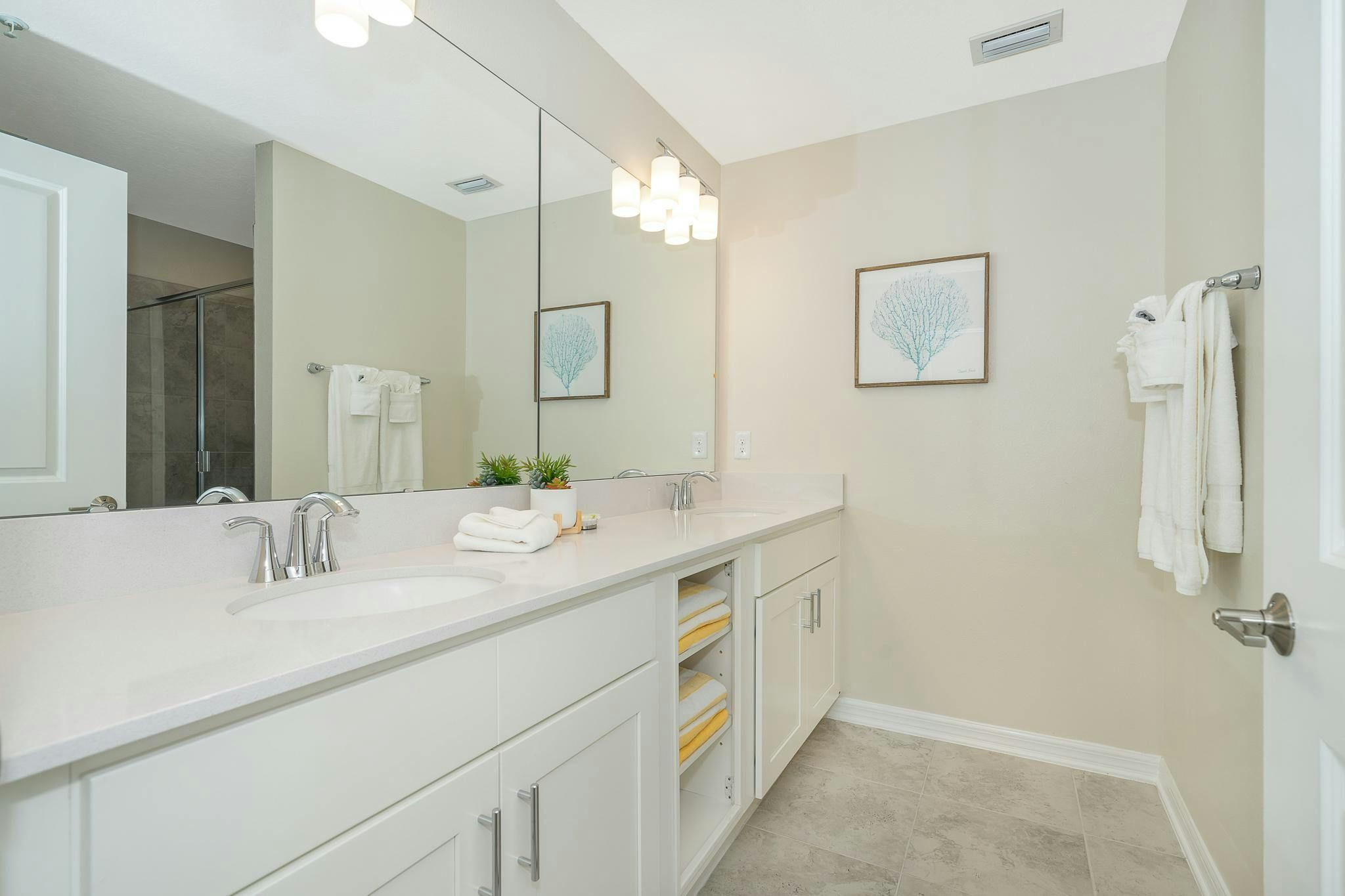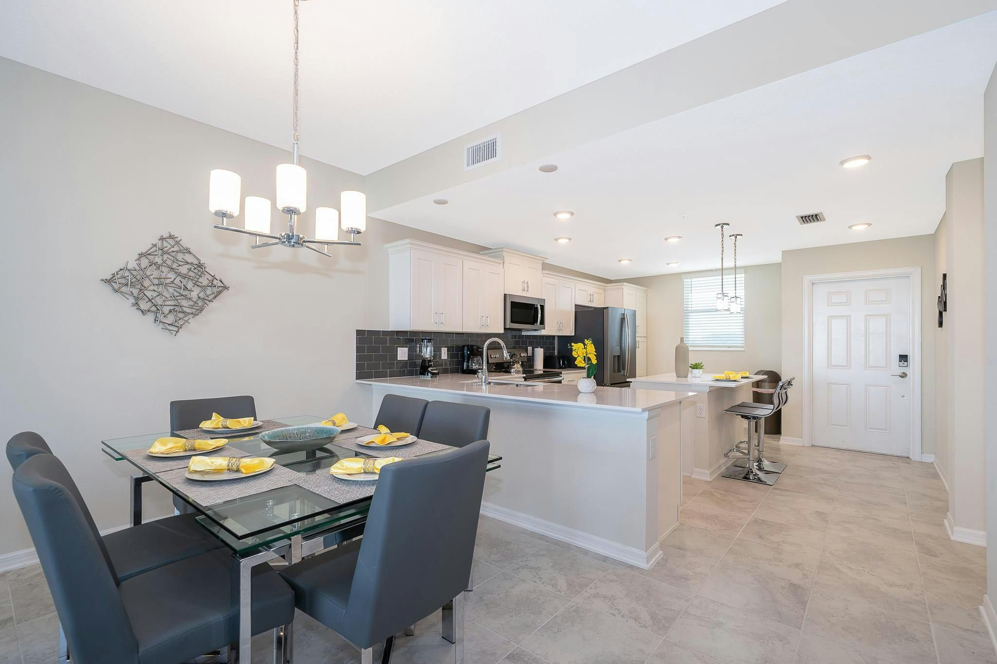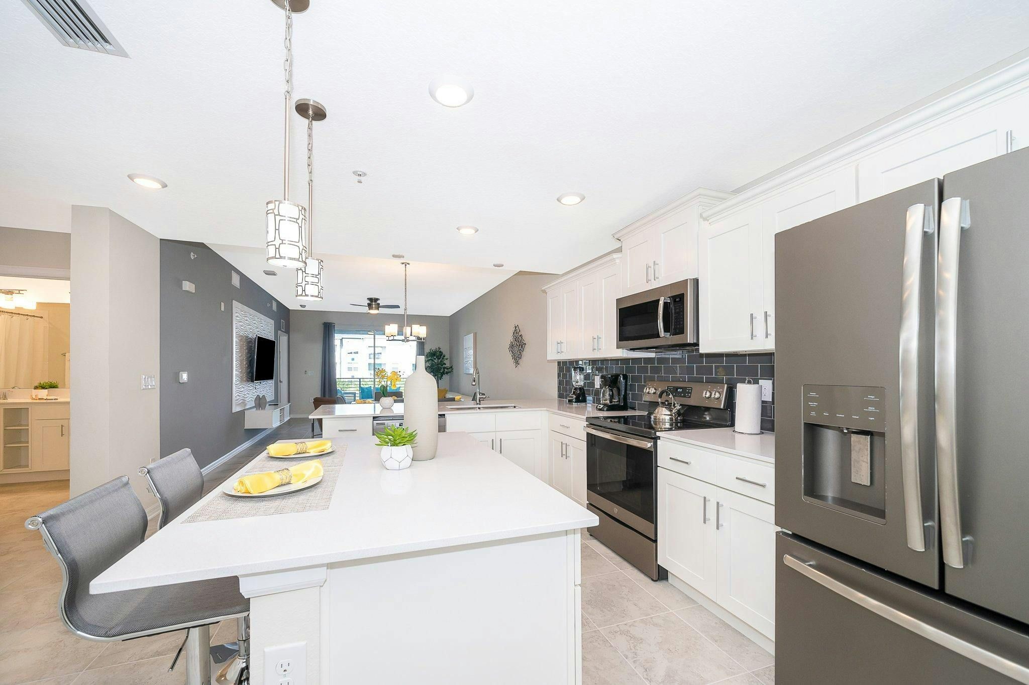 This stunning 2-bedroom, 2-bathroom vacation rental condo is located in the beautiful Storey Lake Resort and promises guests an unforgettable vacation. The condo features a king bedroom with an en-suite bathroom, as well as a bedroom with twin bunk beds and a pull-out trundle bed. The property is conveniently located close to Disney, Disney Springs, malls, and Walmart. Guests can take advantage of the resort's brand new clubhouse, which offers fantastic amenities such as two pools (including a lazy river), a restaurant, gym, business center, and more.