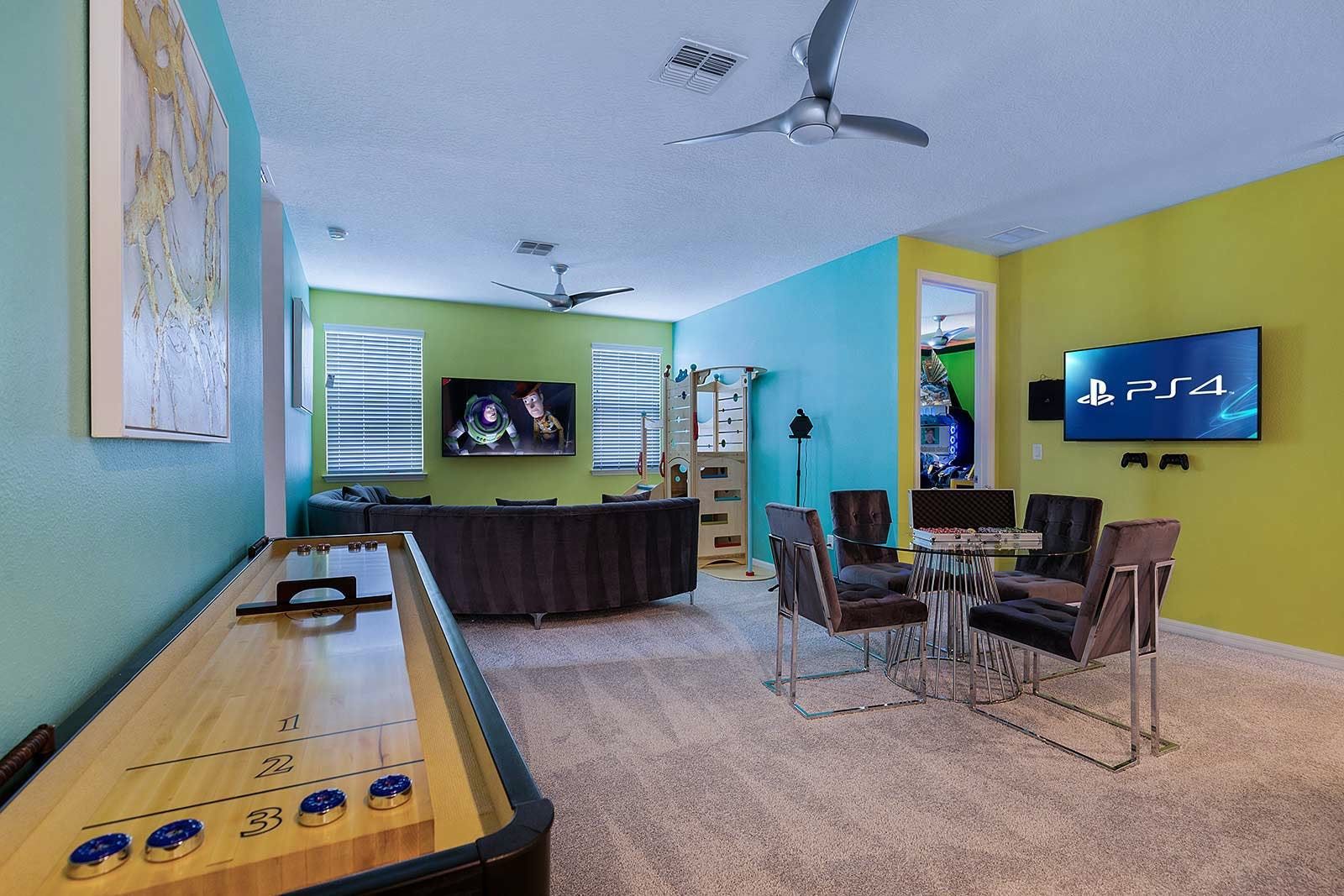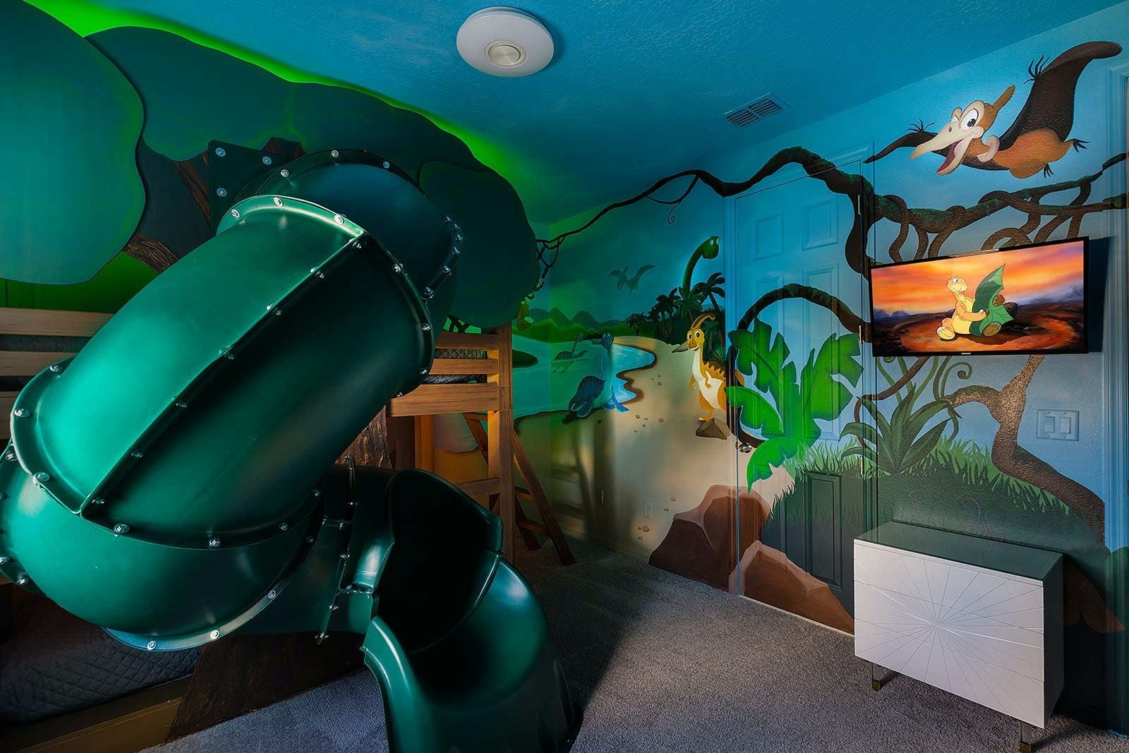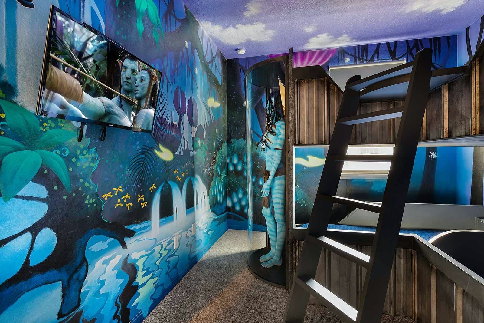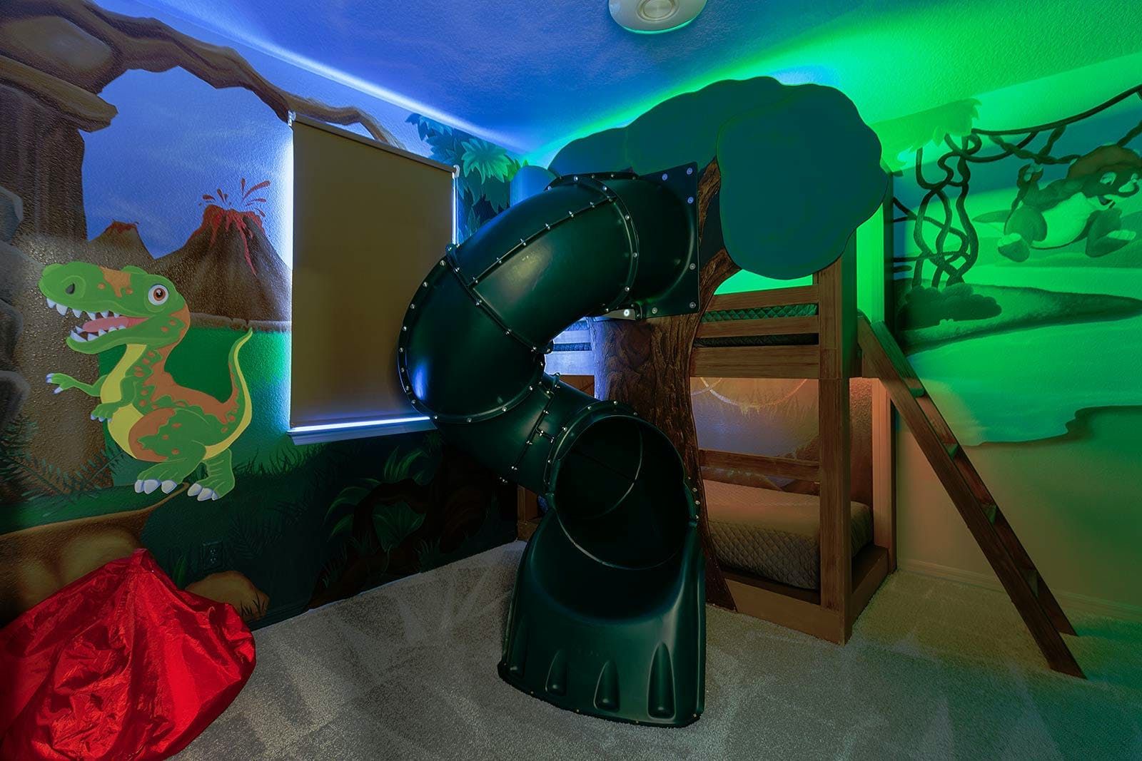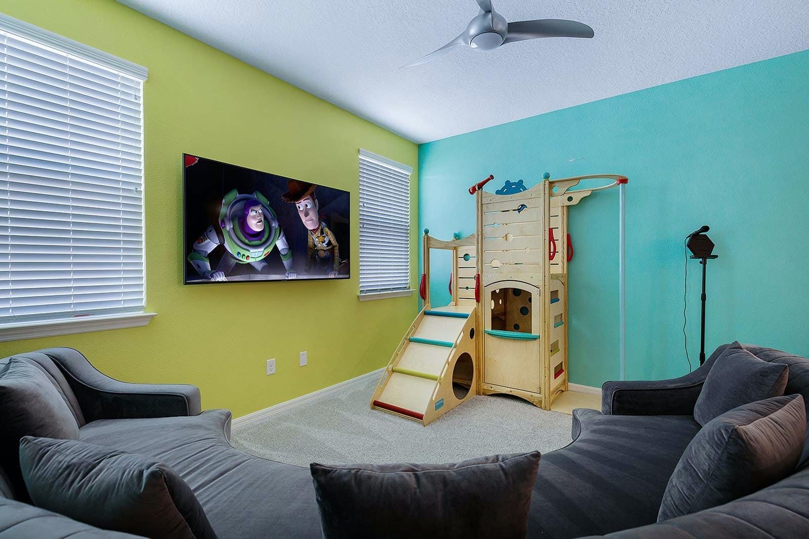 Just fifteen minutes from Disney, this home in Kissimmee, Florida, is ideal for family fun. From the themed kids' bedrooms and home cinema to the games room complete with karaoke and retro arcade games, it's fully set up for all-ages entertainment. It's located within a resort community, so as well as your own private pool and patio, you'll also have access to the resort's clubhouse, restaurant, gym, splash parks and more. Plus, as well as Disney, you're perfectly placed for other big attractions like Universal Studios and Sea World.