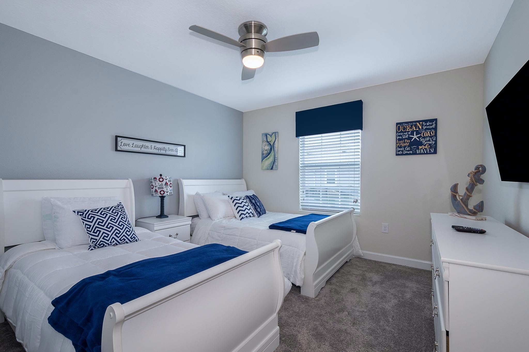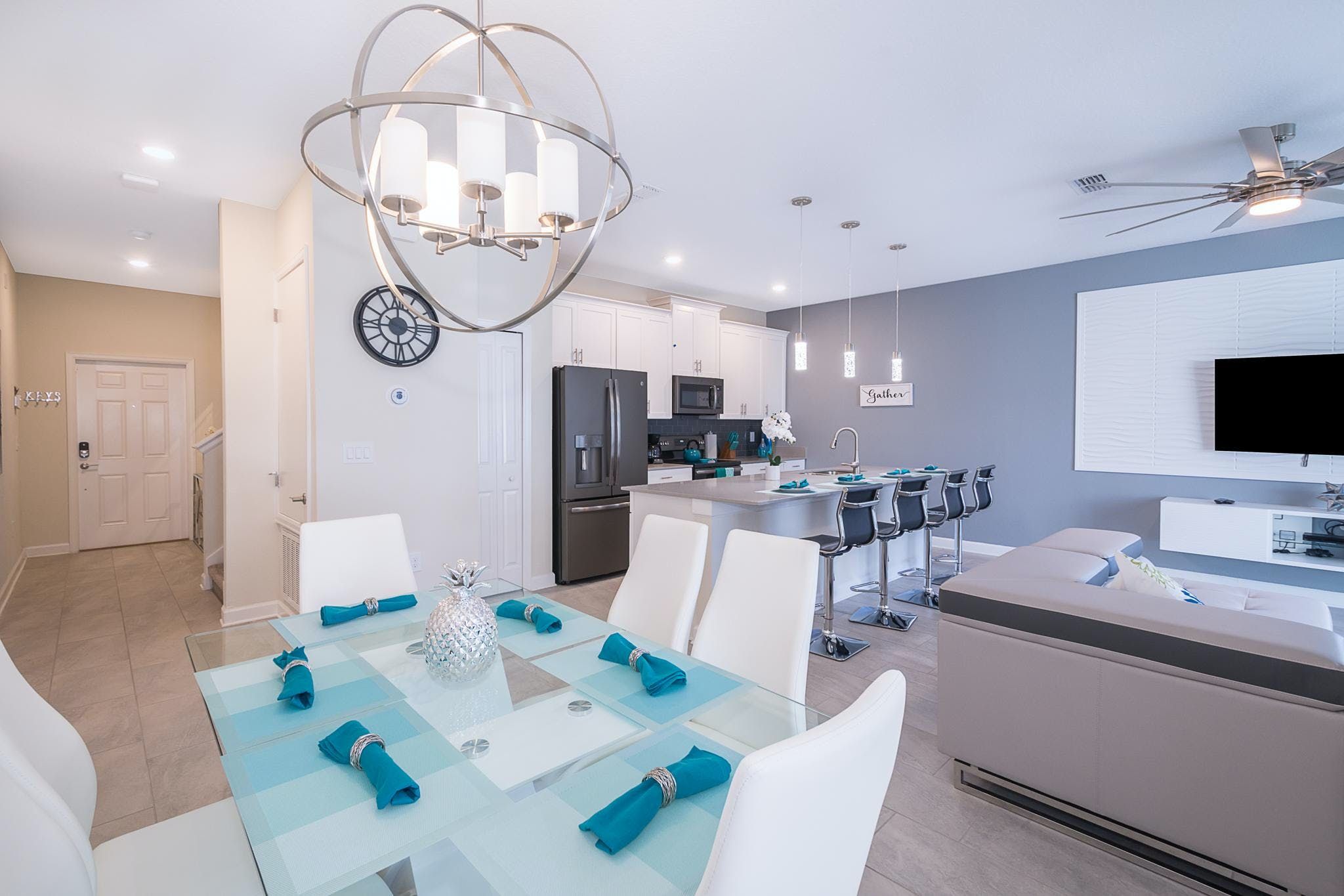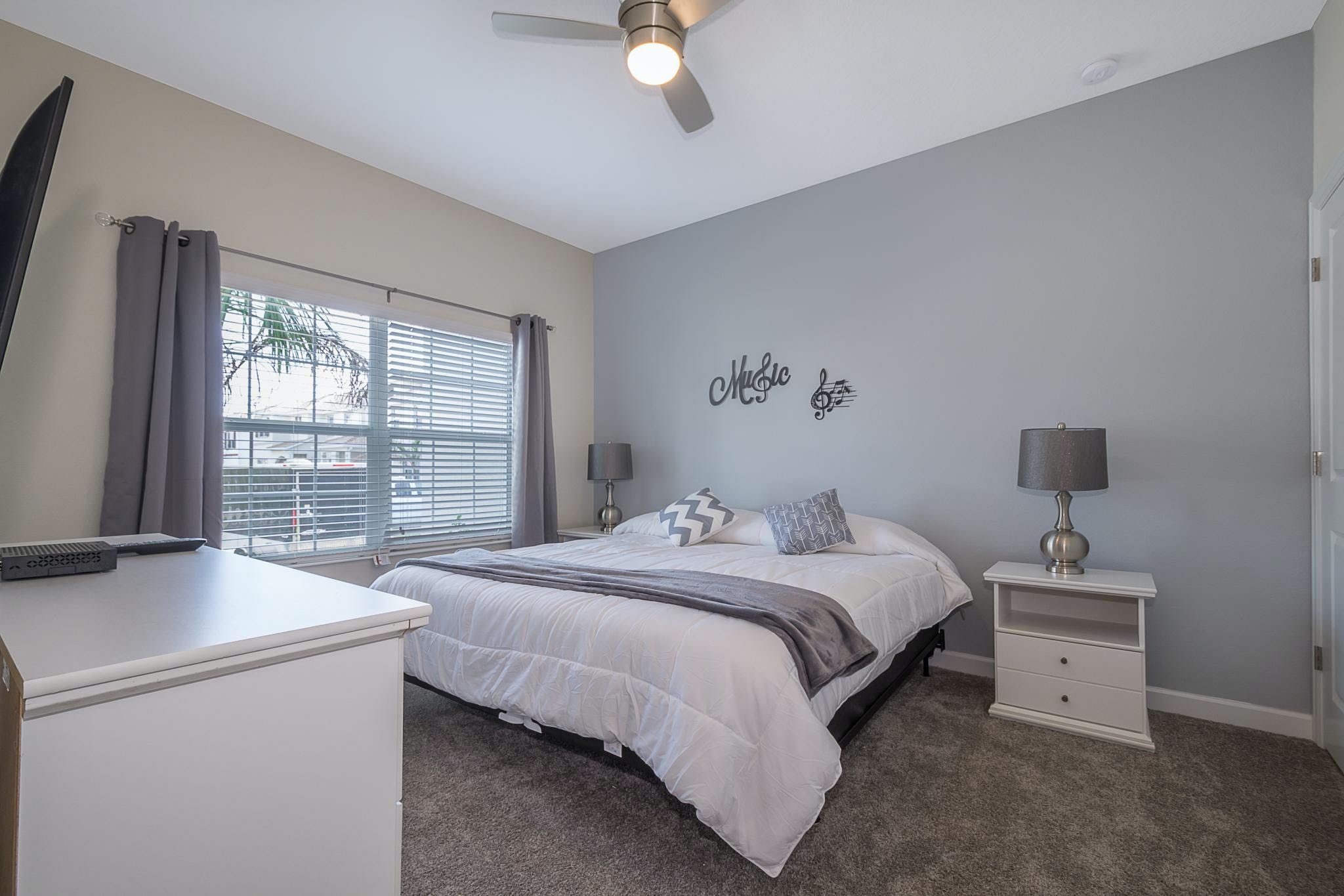 This beautiful four-bedroom, three-bathroom vacation rental with a pool is the perfect place for a relaxing getaway. Located in Storey Lake Resort, guests will have access to fantastic amenities, including two pools, a lazy river, a restaurant, and a gym. The home features two king bedrooms - one downstairs and one upstairs - as well as two bedrooms with full and twin beds. The community is conveniently located near Disney World, Disney Springs, malls, and Walmart. With its brand new clubhouse resort and close proximity to all the best Orlando attractions, this vacation rental is sure to provide an amazing vacation experience.