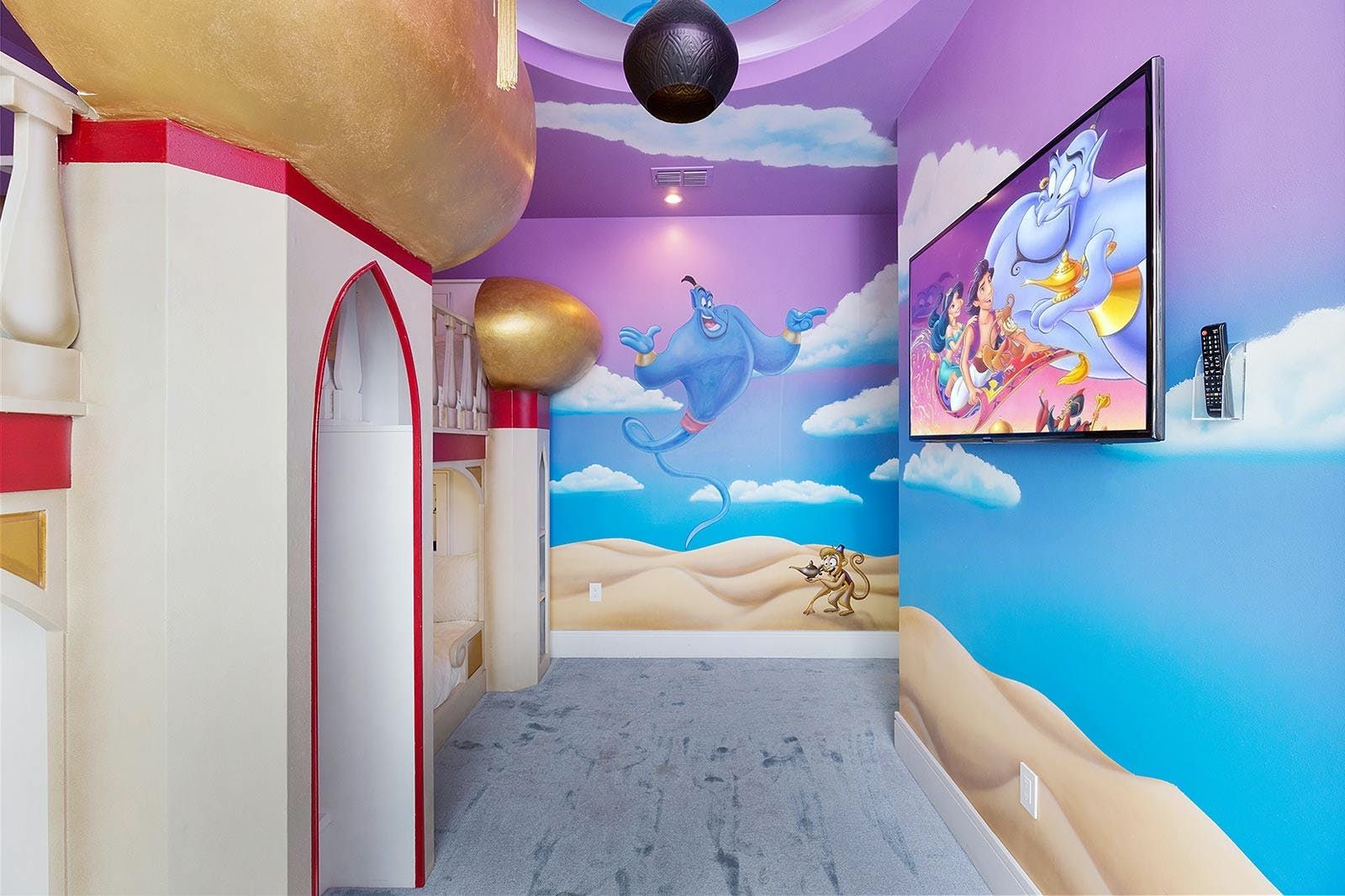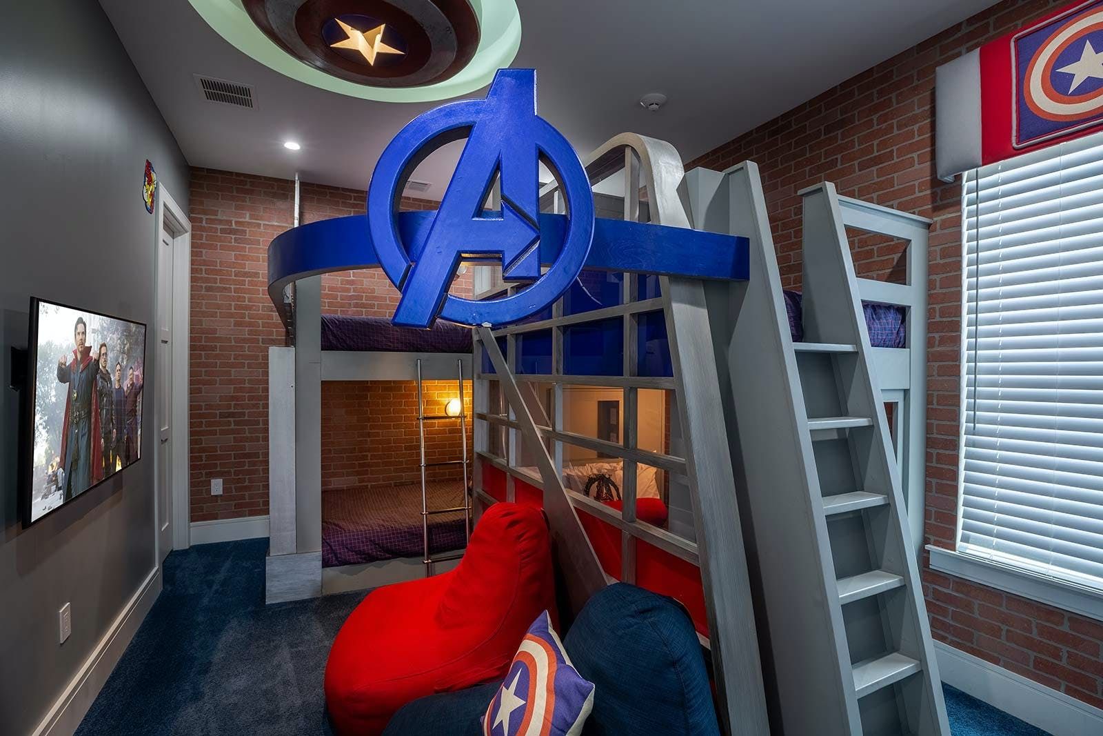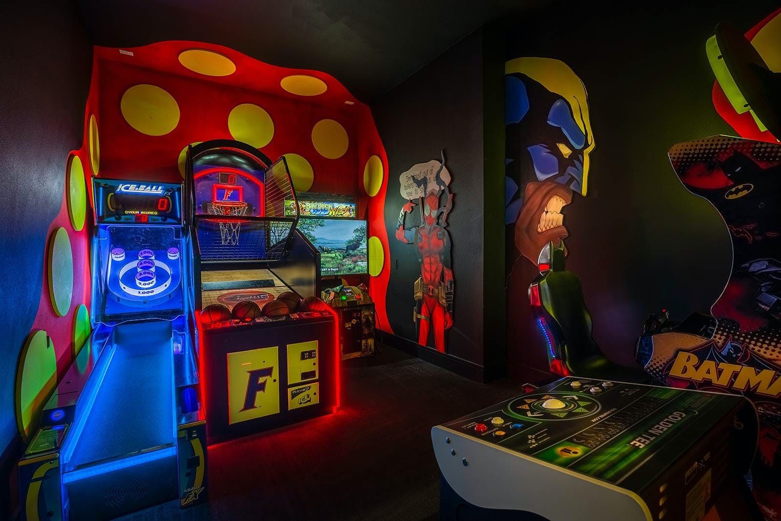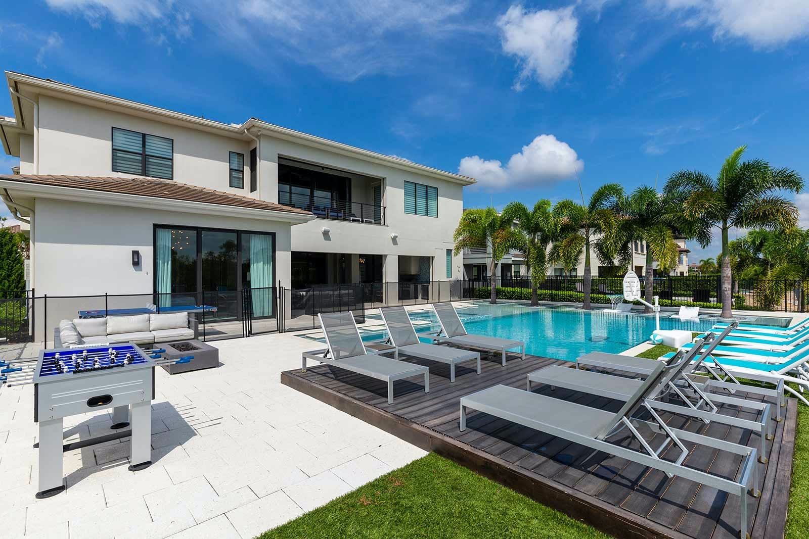 Looking for the ultimate group getaway in Florida? This spacious villa in Kissimmee is where family fun meets luxury living. Step through the door and you're met with a grand foyer that immediately sets the tone. Outside, a private pool with in-water palm trees, a spillover spa, and a golf course view set the scene for lazy afternoons. Fire up the outdoor kitchen, challenge friends to ping-pong or foosball, or unwind under the stars. Inside, the magic continues with a superhero arcade, a home cinema, and a loft with shuffleboard, karaoke and more. Adults can retreat to the full bar and balcony, while kids can immerse themselves in the amazing themed bedrooms. With Disney only a short drive away, this is your ticket to sunshine, laughter, and unforgettable memories.