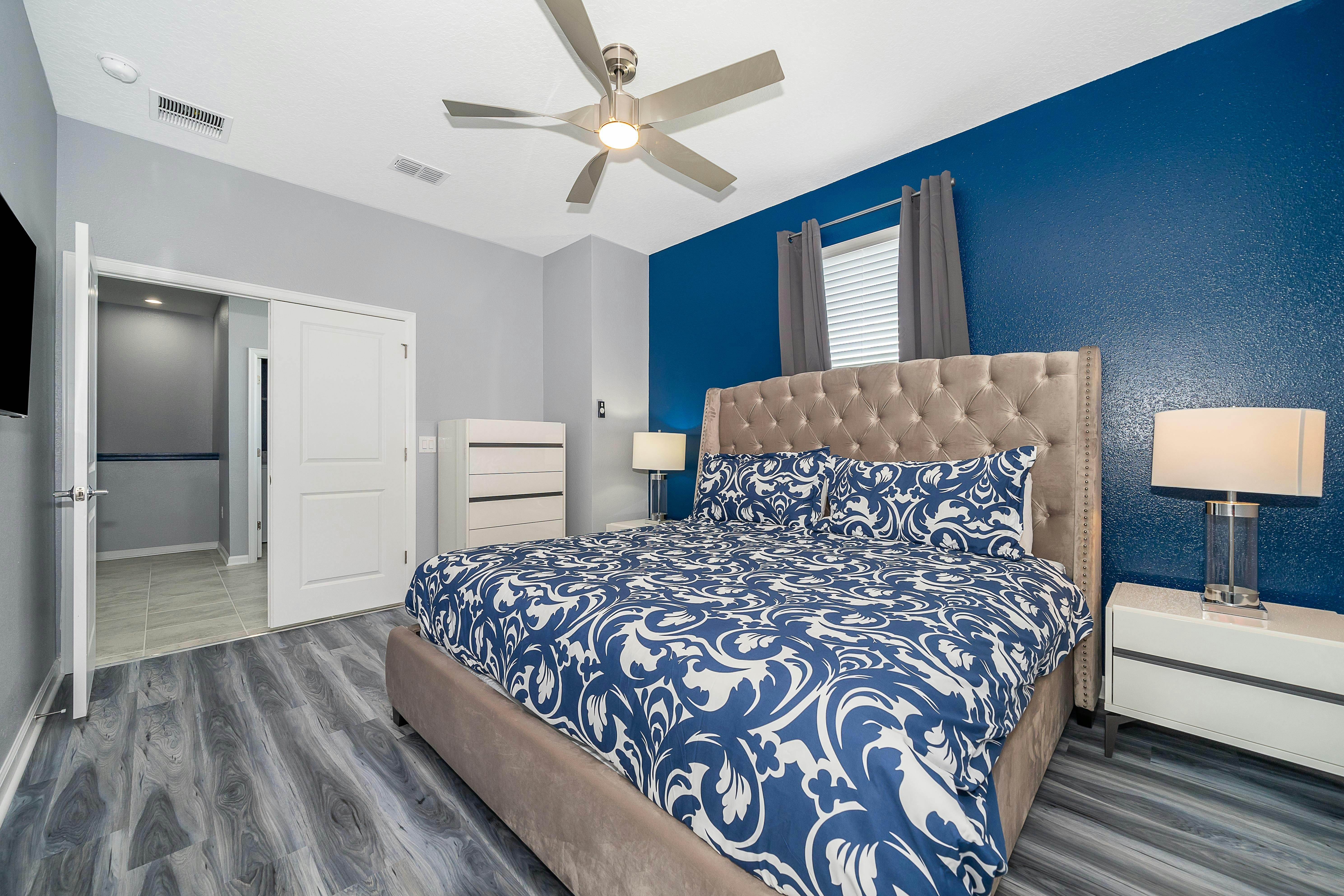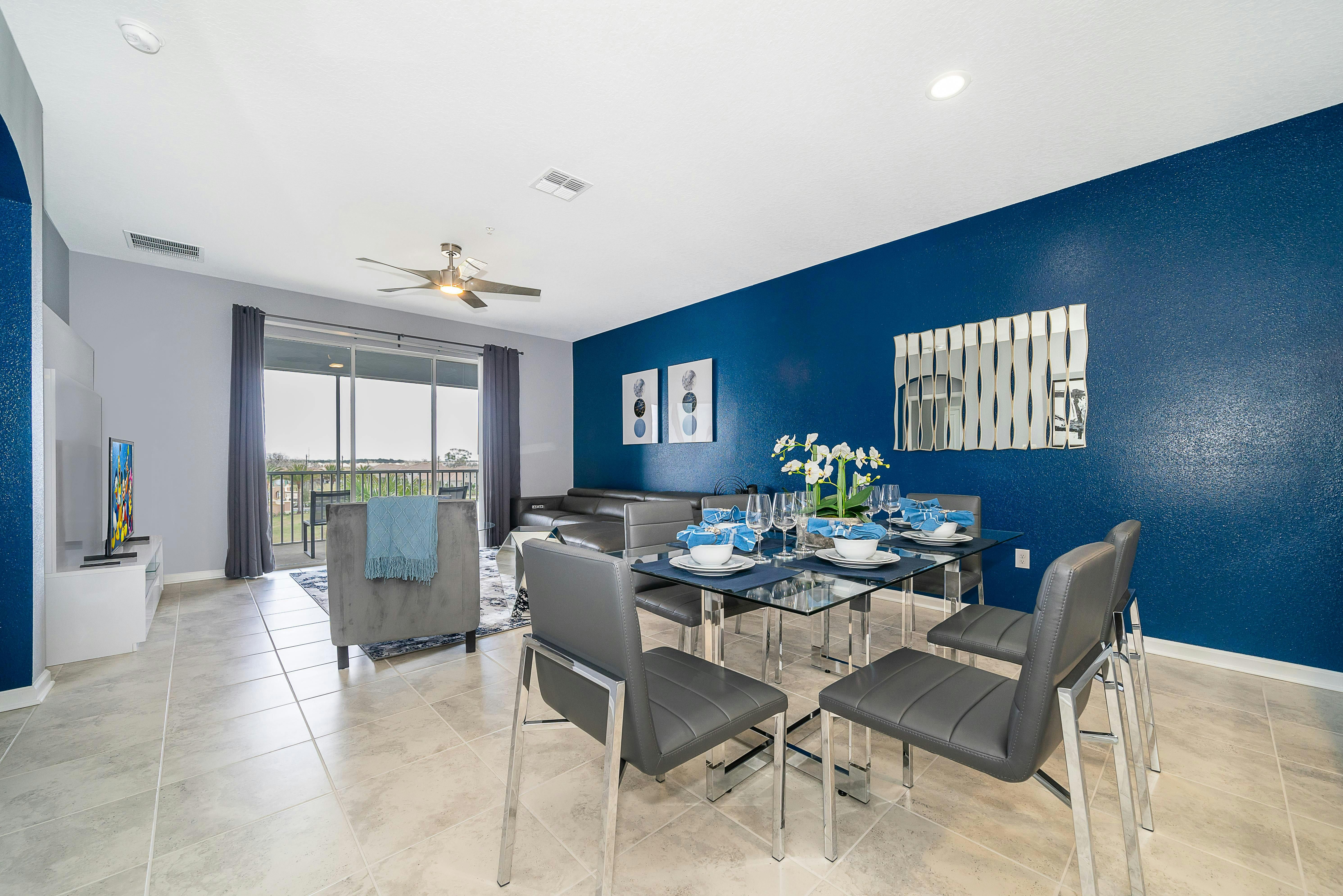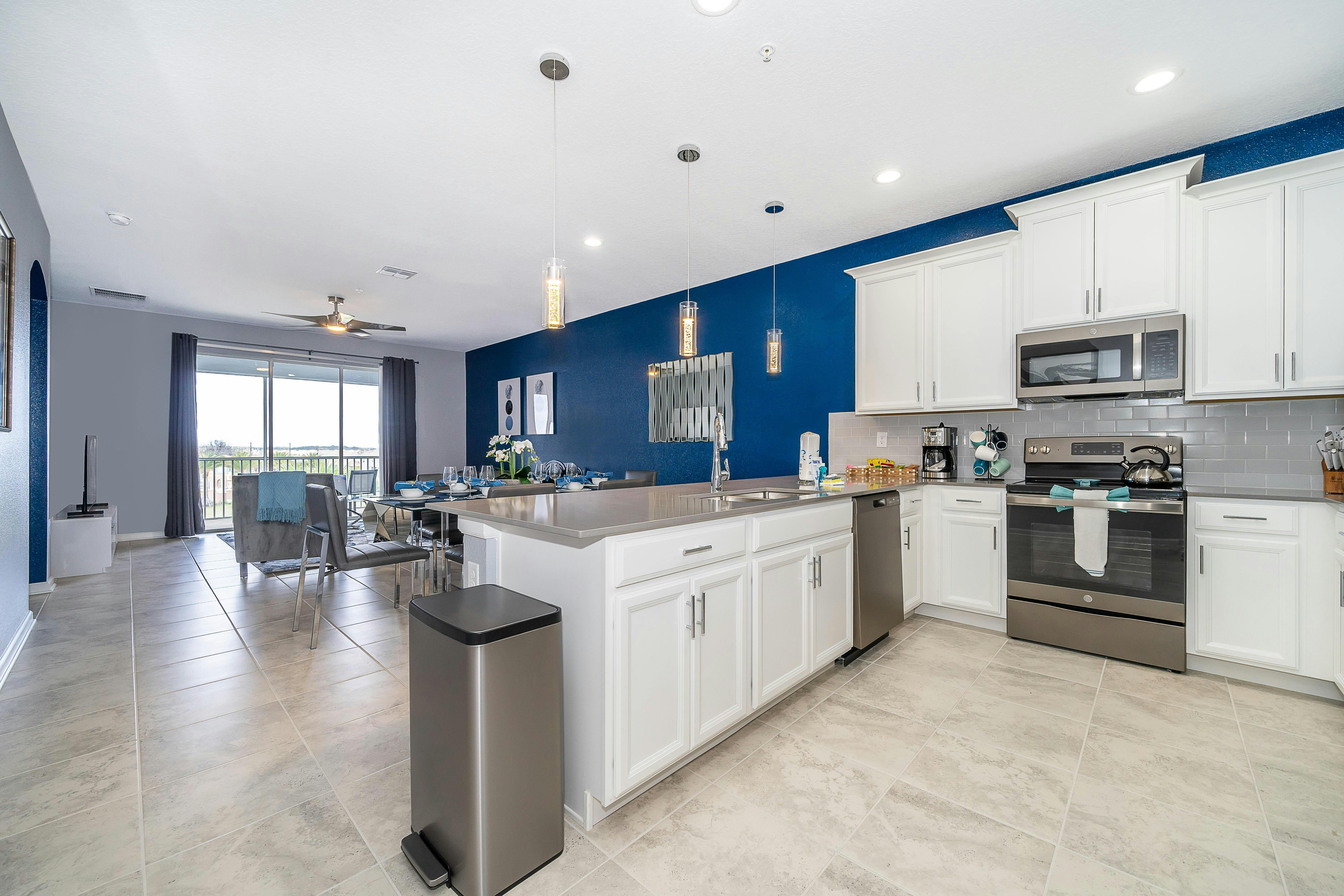 This brand new vacation rental condo is located in the Champions Gate Resort and offers three bedrooms and two bathrooms, including a king bedroom on suite, another king bedroom, and a third bedroom with two twin beds. Guests will enjoy the convenient location, just steps away from golf courses and tennis courts, as well as being close to Disney, restaurants, and shopping. The clubhouse amenities include two pools, a lazy river, a restaurant, gym, and business center. In addition to the comfortable living space, guests can also enjoy a game room featuring foosball and air hockey. This is the perfect destination for families or small groups looking for a fun and relaxing vacation.