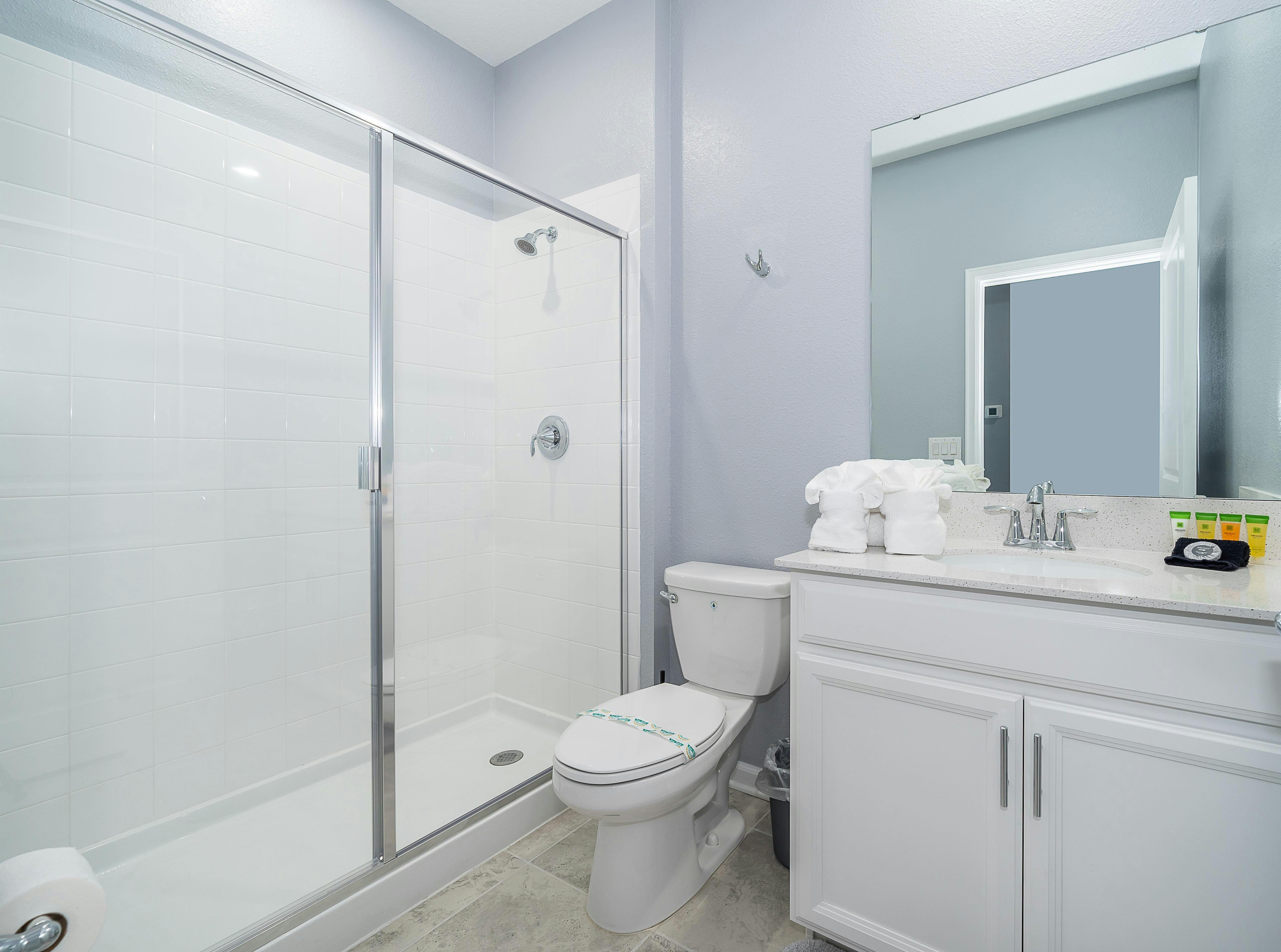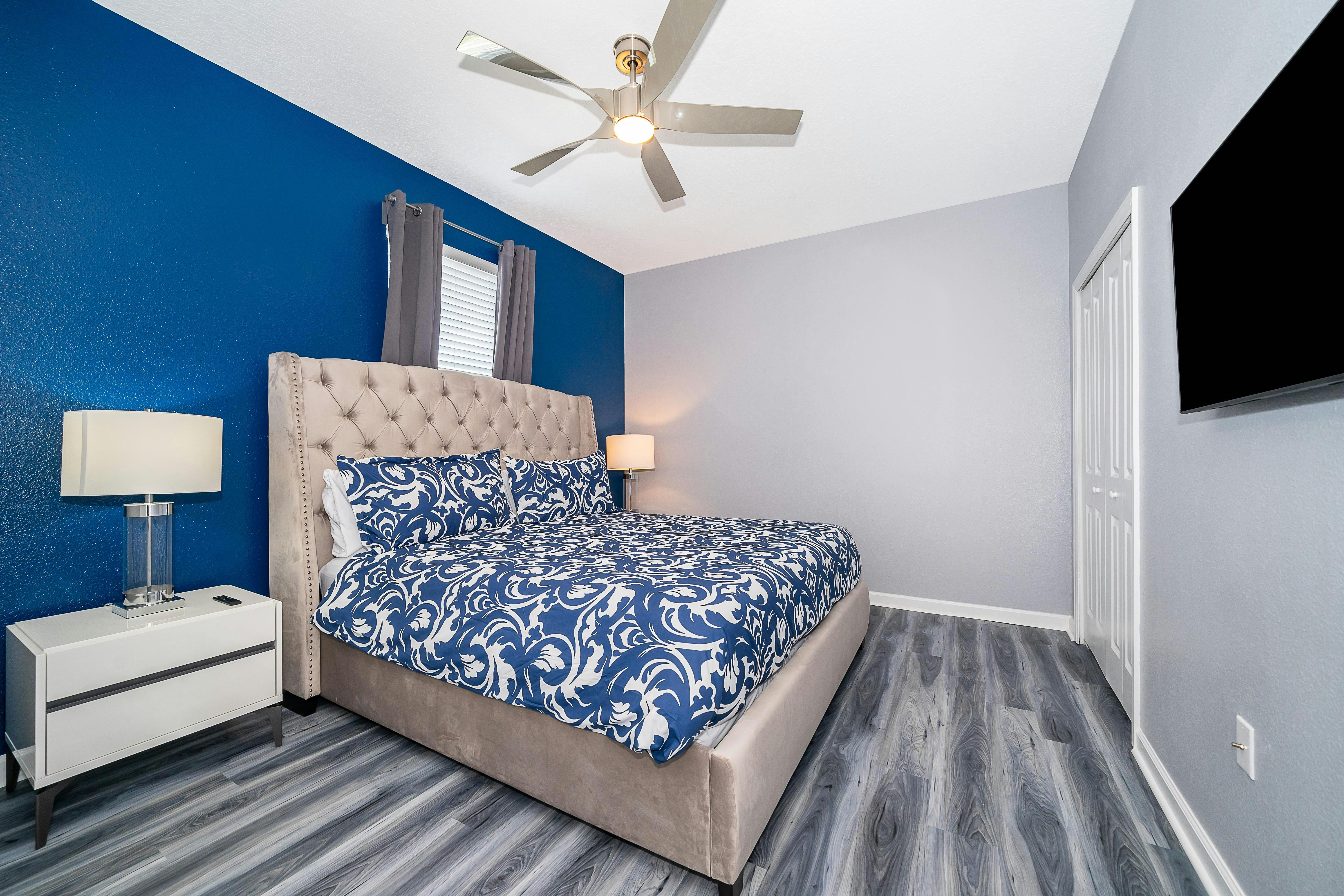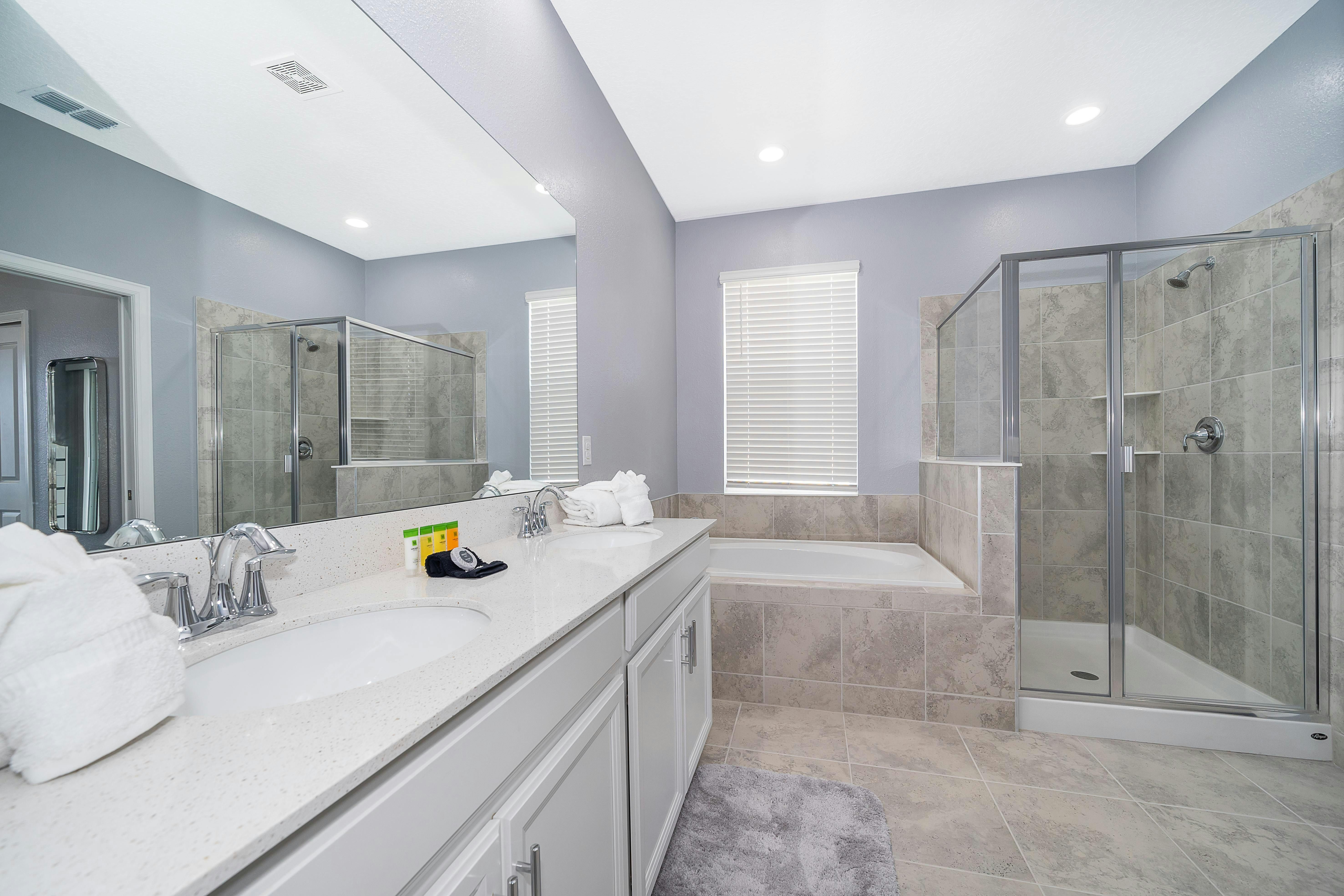 This brand new vacation rental condo is located in the Champions Gate Resort and offers three bedrooms and two bathrooms, including a king bedroom on suite, another king bedroom, and a third bedroom with two twin beds. Guests will enjoy the convenient location, just steps away from golf courses and tennis courts, as well as being close to Disney, restaurants, and shopping. The clubhouse amenities include two pools, a lazy river, a restaurant, gym, and business center. In addition to the comfortable living space, guests can also enjoy a game room featuring foosball and air hockey. This is the perfect destination for families or small groups looking for a fun and relaxing vacation.