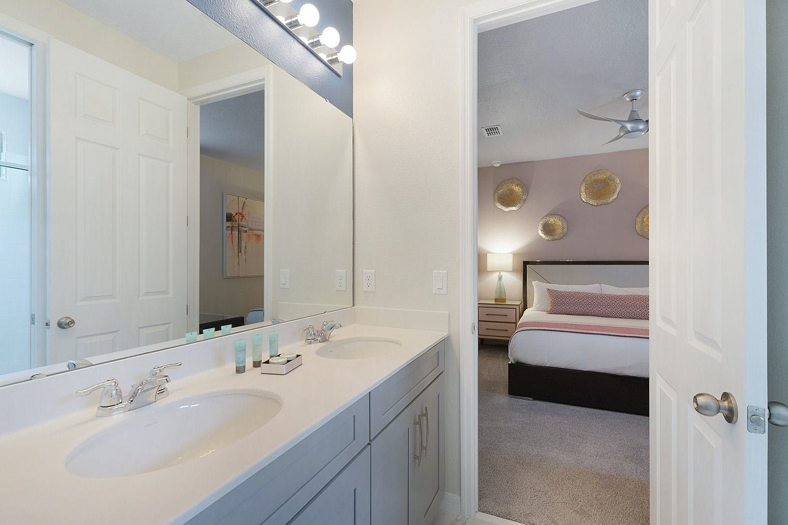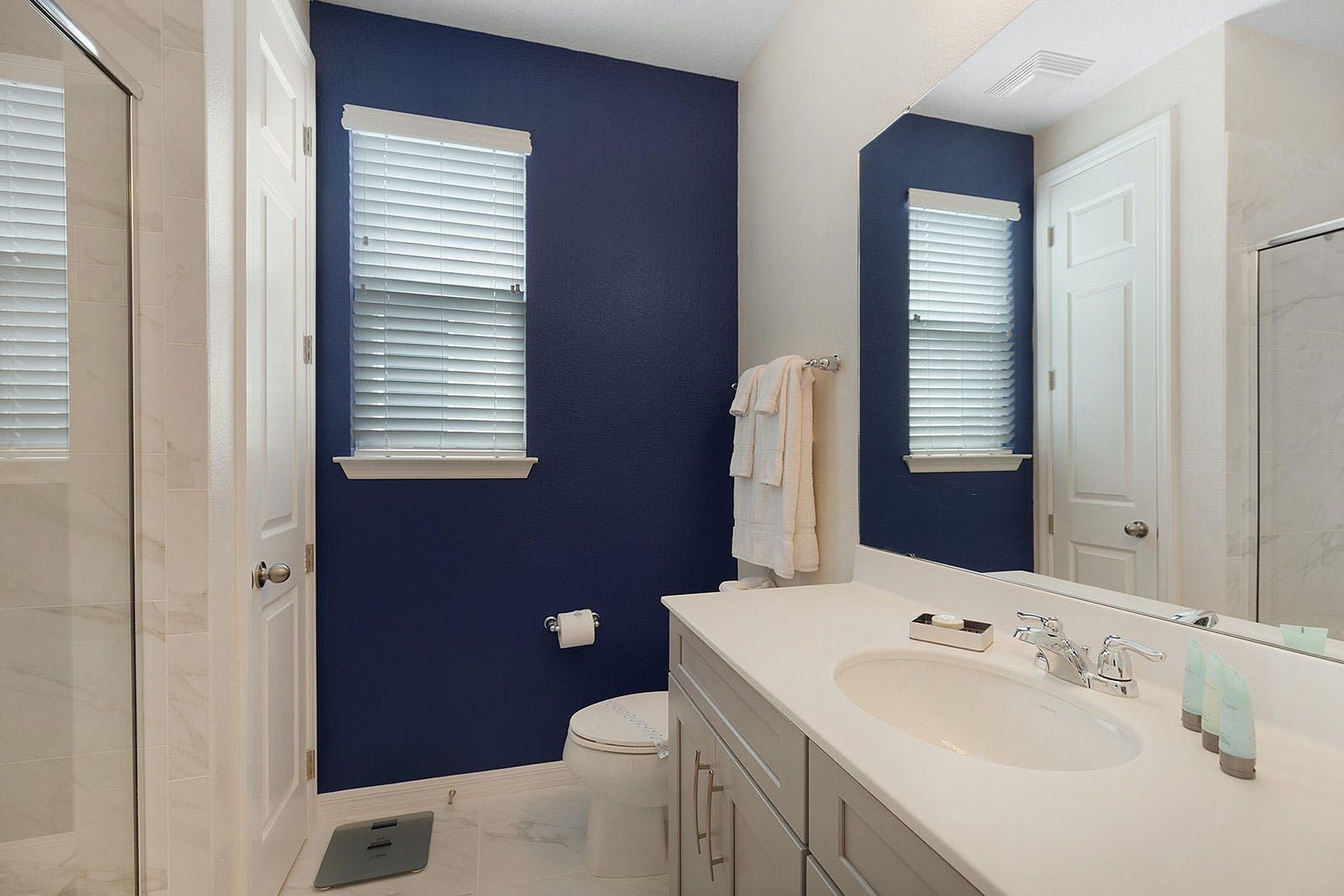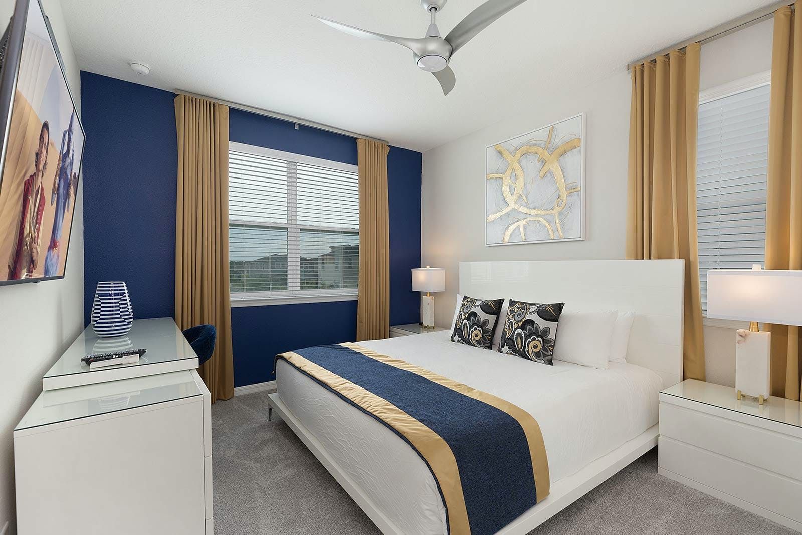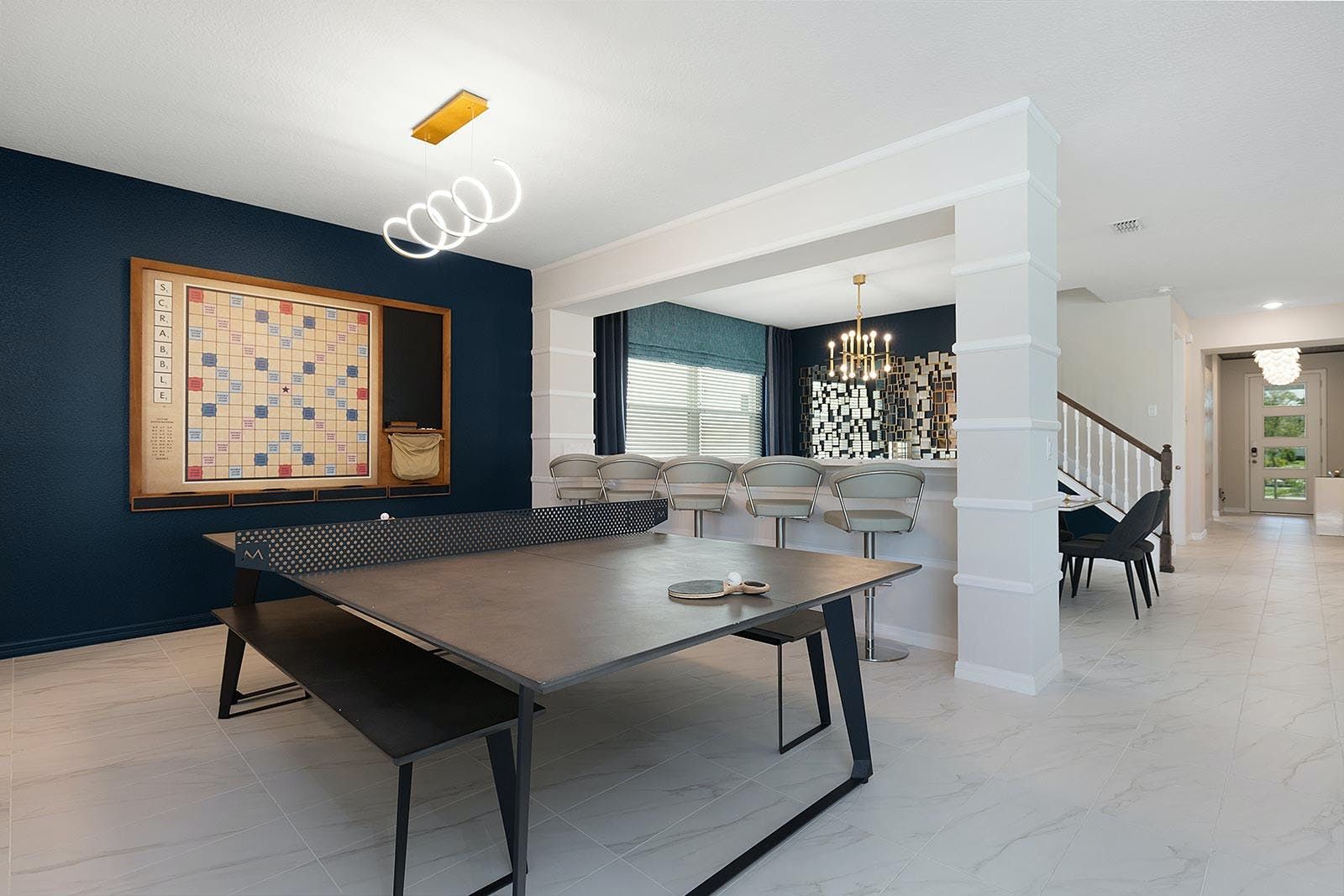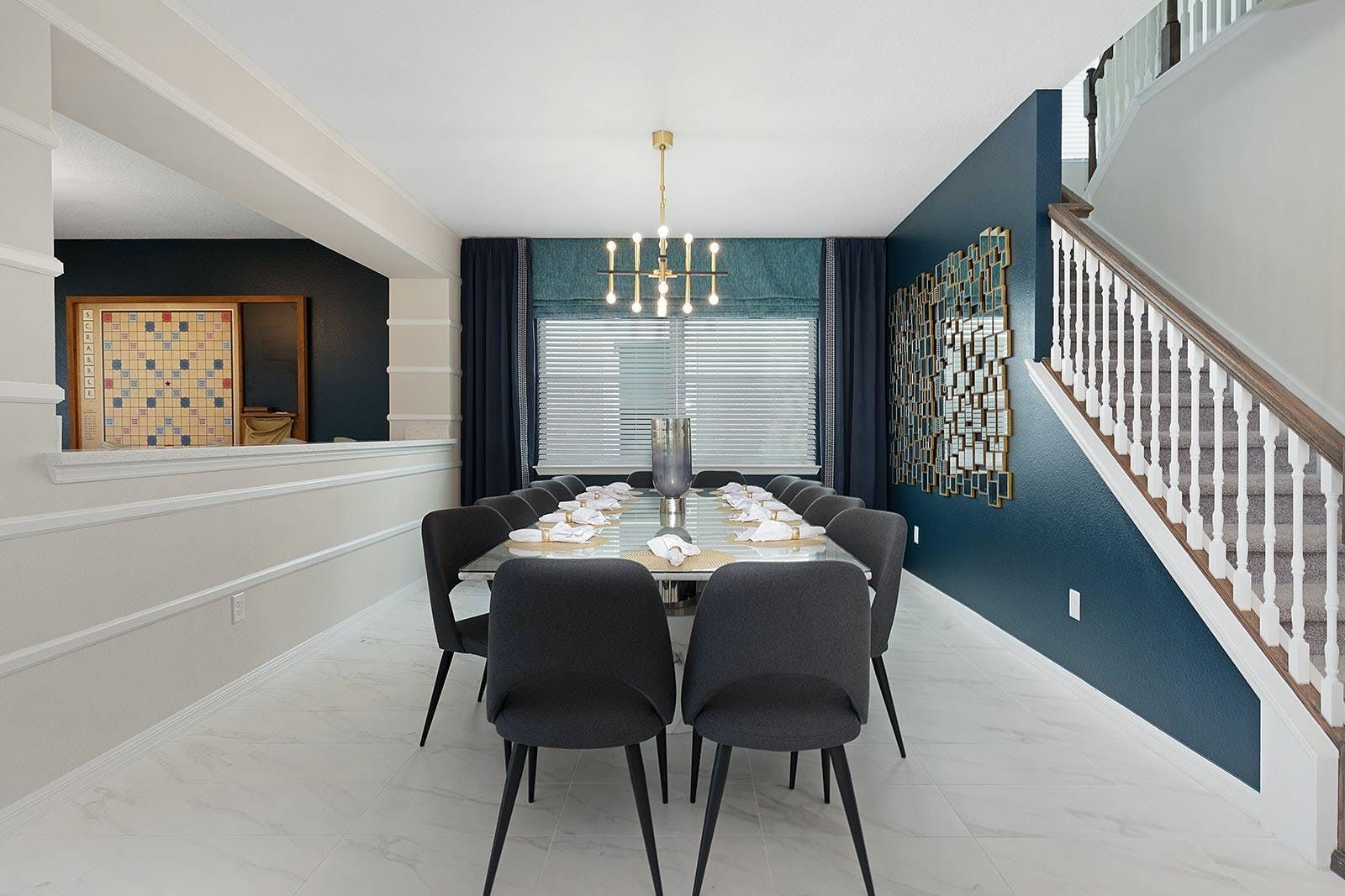 This vacation rental is perfect for families with children who love adventure and excitement. The winter-themed bedroom features a snow-capped bedframe and life-sized princesses, while the superhero-themed bedroom has over-the-top bunk beds and room decor. The house also boasts a private home theater with 10 comfy leather recliners, an arcade section, and a game room/loft with karaoke system, mini jungle gym, and smart TV lounge area. Outside is a screened-in pool and spillover spa surrounded by loungers, foosball table, giant connect four, pool basketball, and outdoor dining area. The kitchen is fully equipped with everything needed for mealtime and the living room has soft couches to relax on. Bedrooms have deluxe mattresses with super soft hotel quality linens. The resort offers luxury amenities such as FlowRider Surfing Simulator, splash parks with water slides, heated Grand Pool, volleyball/basketball/soccer courts, walking trails, fitness center, full-service restaurant, and more. It's located just miles from Disney and other popular attractions like Universal Studios and Sea World.