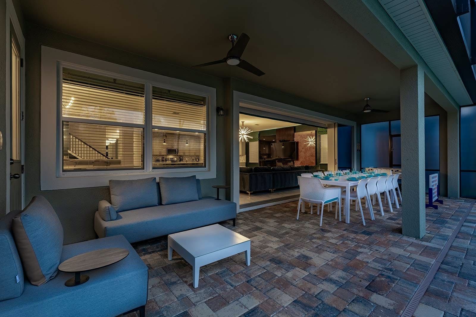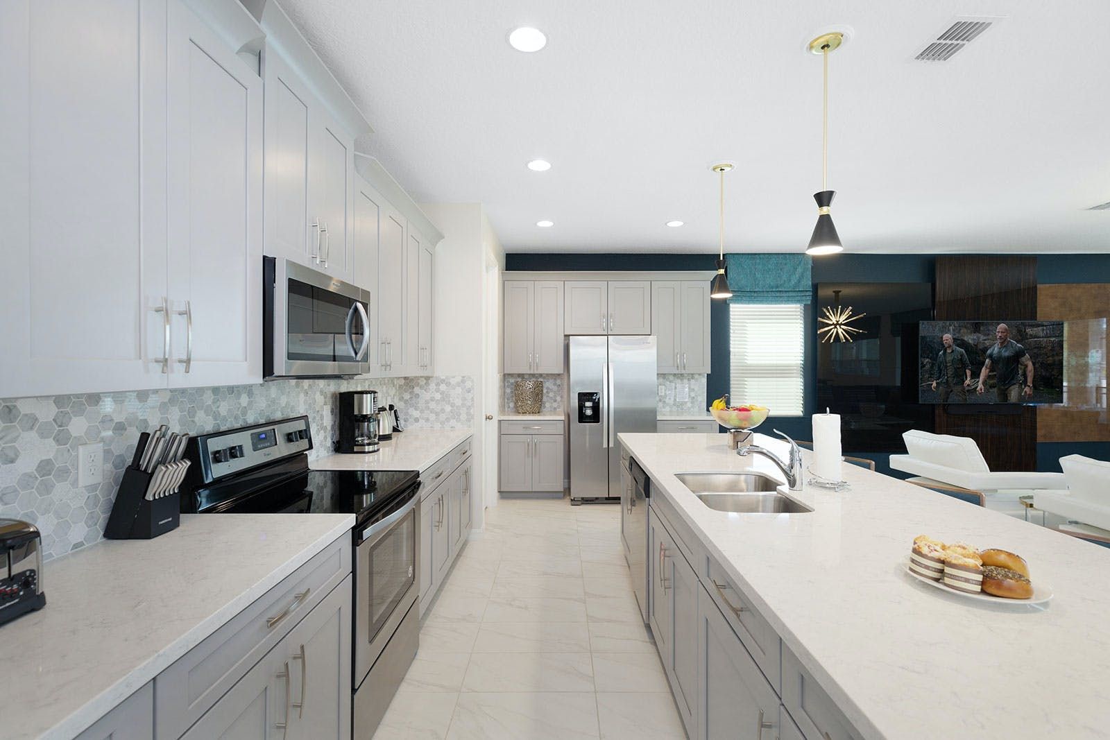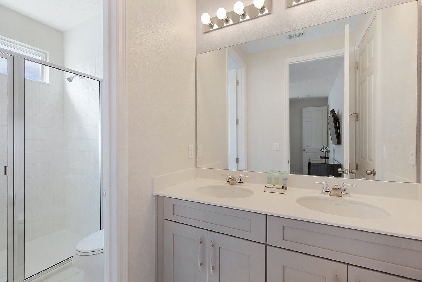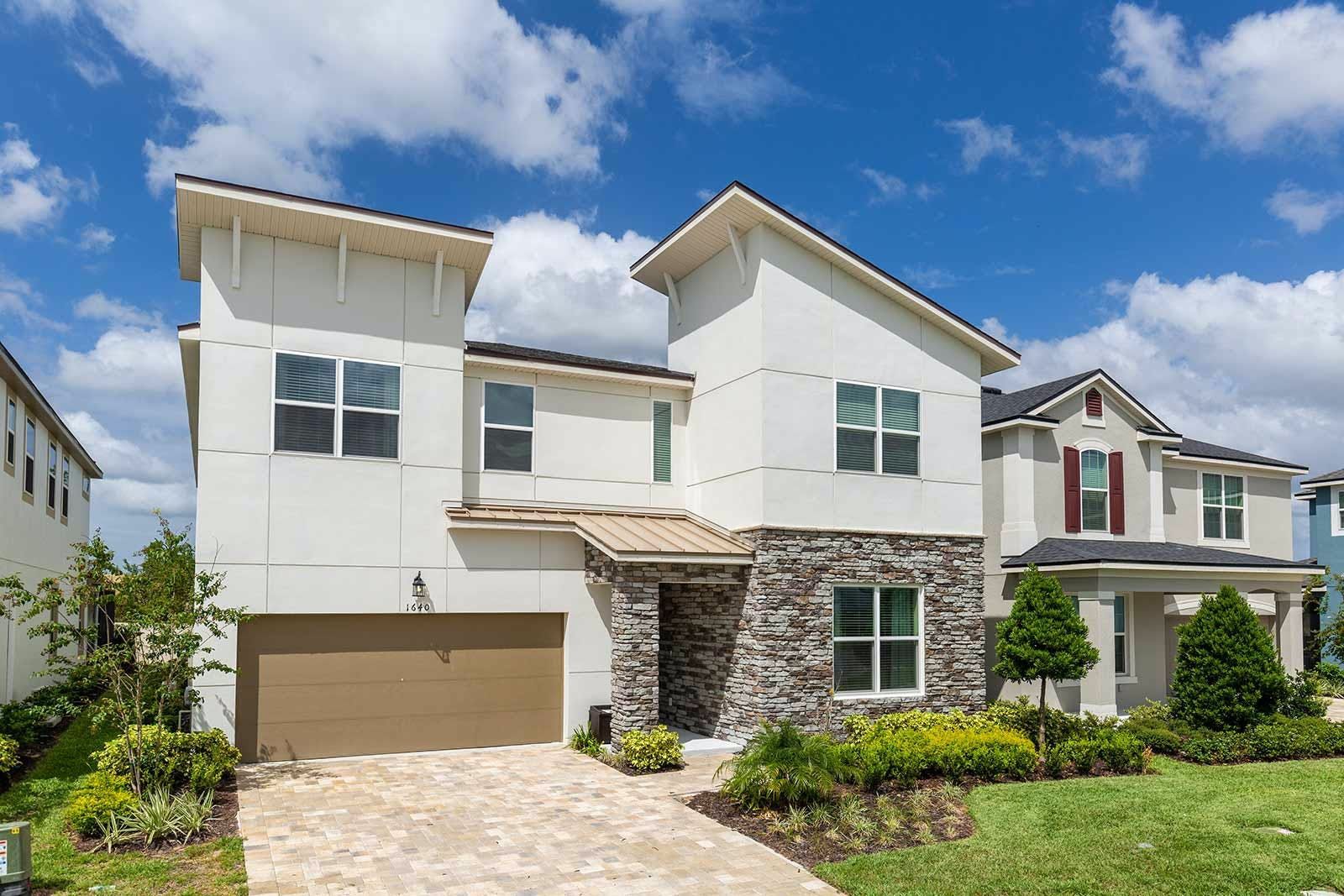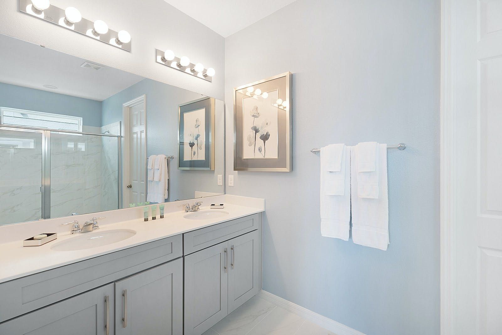 This vacation rental is perfect for families with children who love adventure and excitement. The winter-themed bedroom features a snow-capped bedframe and life-sized princesses, while the superhero-themed bedroom has over-the-top bunk beds and room decor. The house also boasts a private home theater with 10 comfy leather recliners, an arcade section, and a game room/loft with karaoke system, mini jungle gym, and smart TV lounge area. Outside is a screened-in pool and spillover spa surrounded by loungers, foosball table, giant connect four, pool basketball, and outdoor dining area. The kitchen is fully equipped with everything needed for mealtime and the living room has soft couches to relax on. Bedrooms have deluxe mattresses with super soft hotel quality linens. The resort offers luxury amenities such as FlowRider Surfing Simulator, splash parks with water slides, heated Grand Pool, volleyball/basketball/soccer courts, walking trails, fitness center, full-service restaurant, and more. It's located just miles from Disney and other popular attractions like Universal Studios and Sea World.