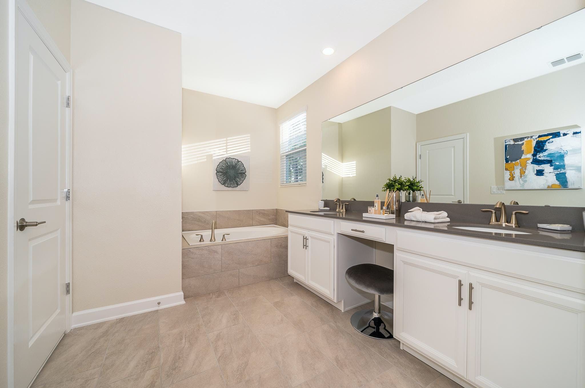 This modern home is full of entertainment options for younger guests, but doesn't forsake parents and resort fans looking for somewhere kitted out and comfortable. The living room, dining area and kitchen all have plenty of room for both cooking and socialising. Upstairs you'll find five bedrooms, with two better suited for little ones, as well as five bathrooms to prevent any queues. There's a private pool for gentle drifting or gleeful splashing, while the games room is well stocked with table and video games. You'll have access to the resort's many amenities, including the pool, lazy river and golf course – plus a certain other popular resort is only a twenty minute drive away.