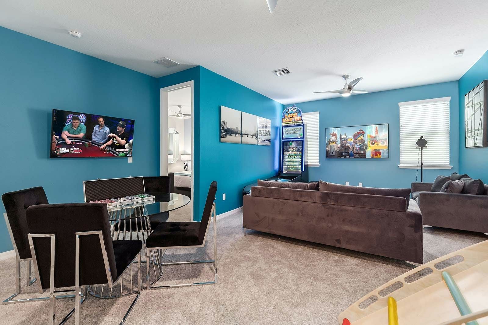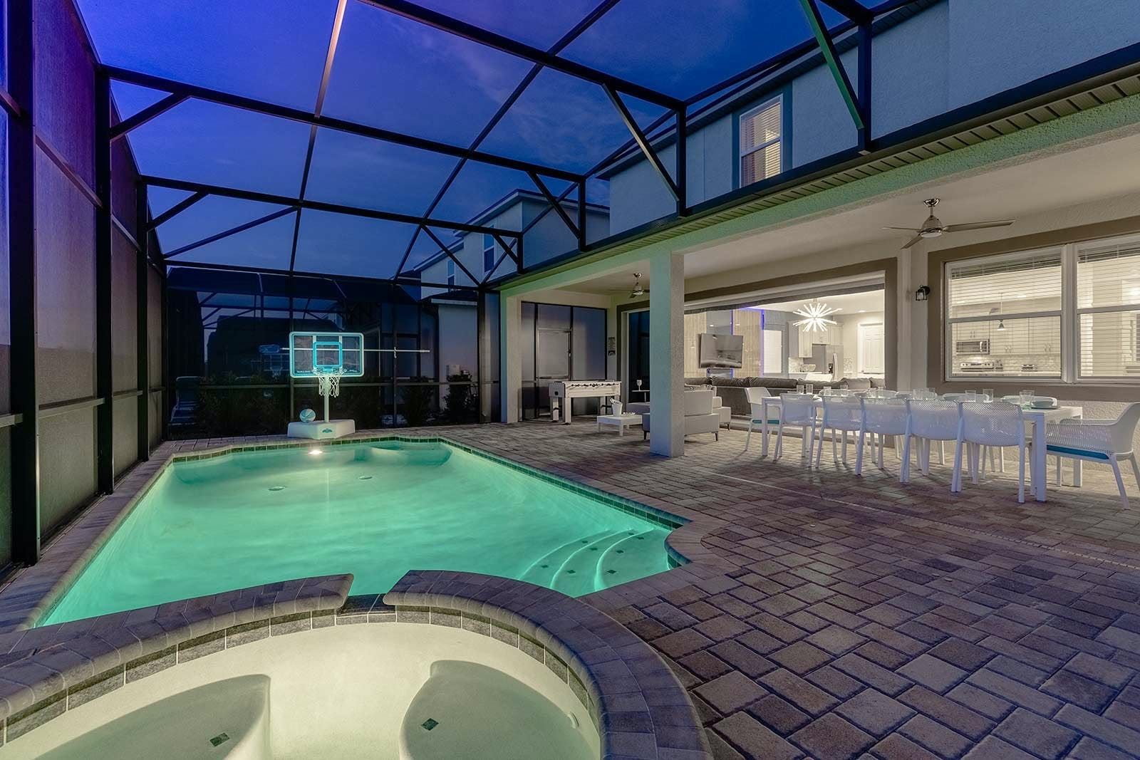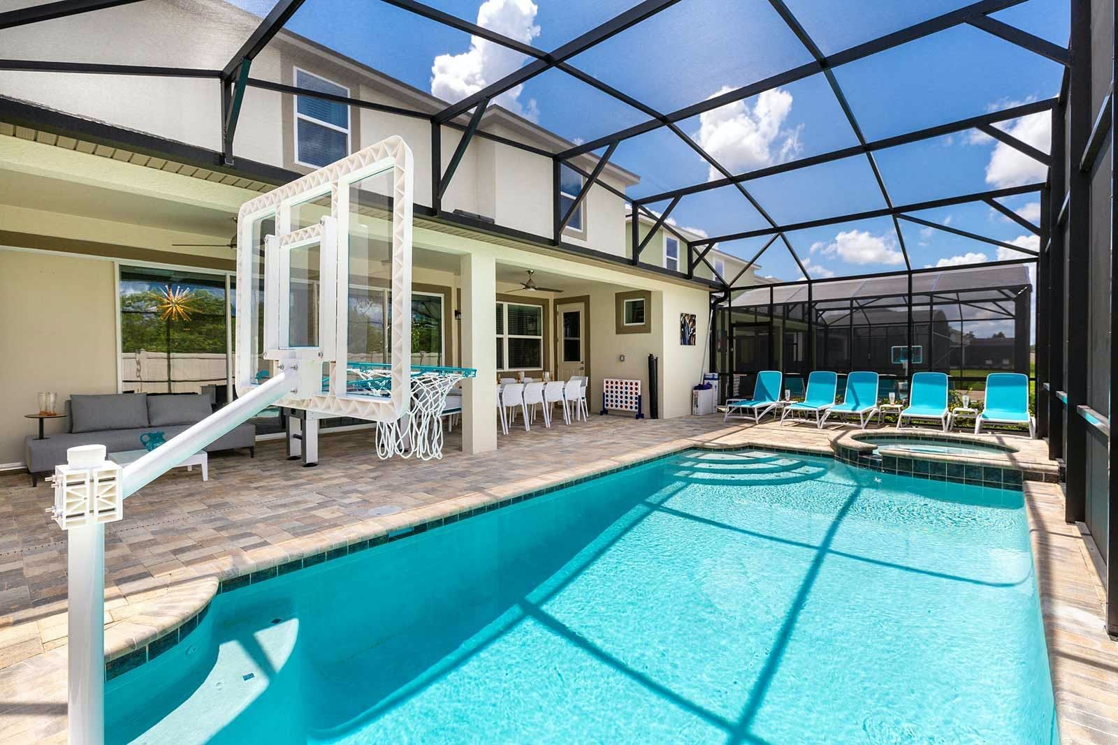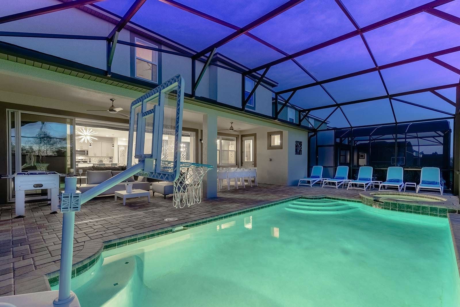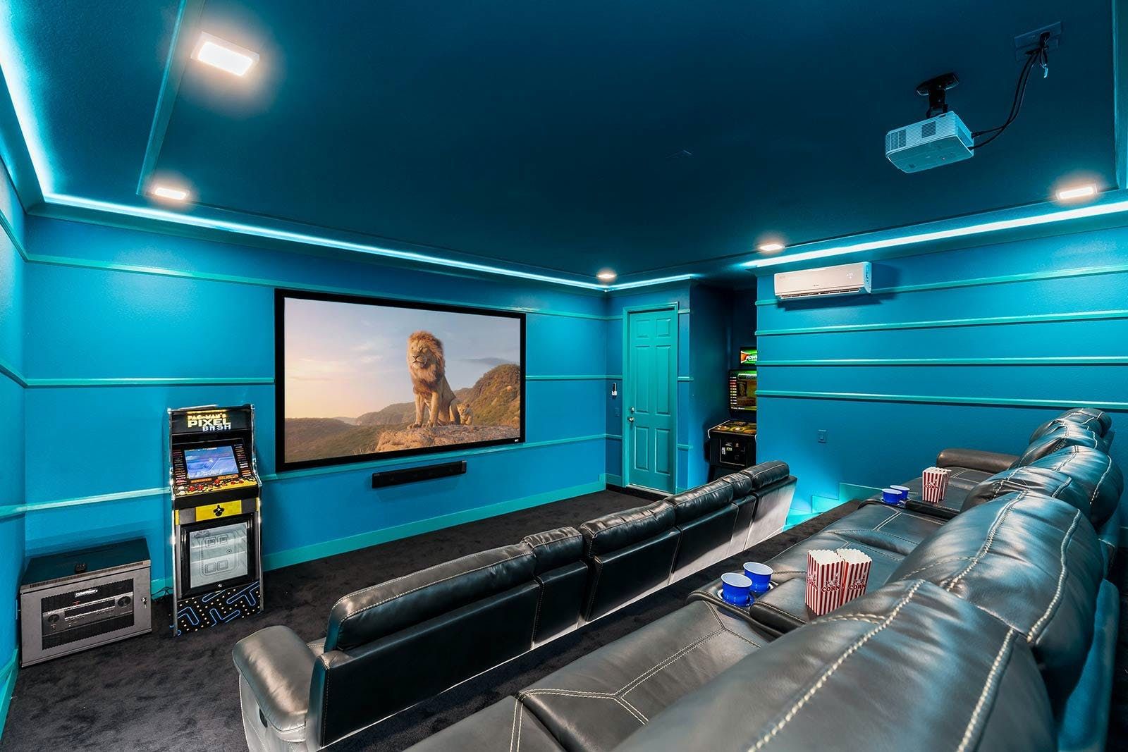 The fun of Florida comes to life in this family home. From the private pool and galaxy-themed movie theatre to the games and karaoke room, every detail has been considered to bring joy to your stay. Kids will love the themed bedrooms and everyone can enjoy the range of resort amenities. You’ll have access to the communal pool and it’s just steps to Melbourne Beach. There’s also plenty to keep the whole group entertained in the area with easy access to Cocoa Beach Pier and Ron Jon’s Surf Shop. It’s also less than a ninety-minute drive to Walt Disney World Resorts and Universal Studios.