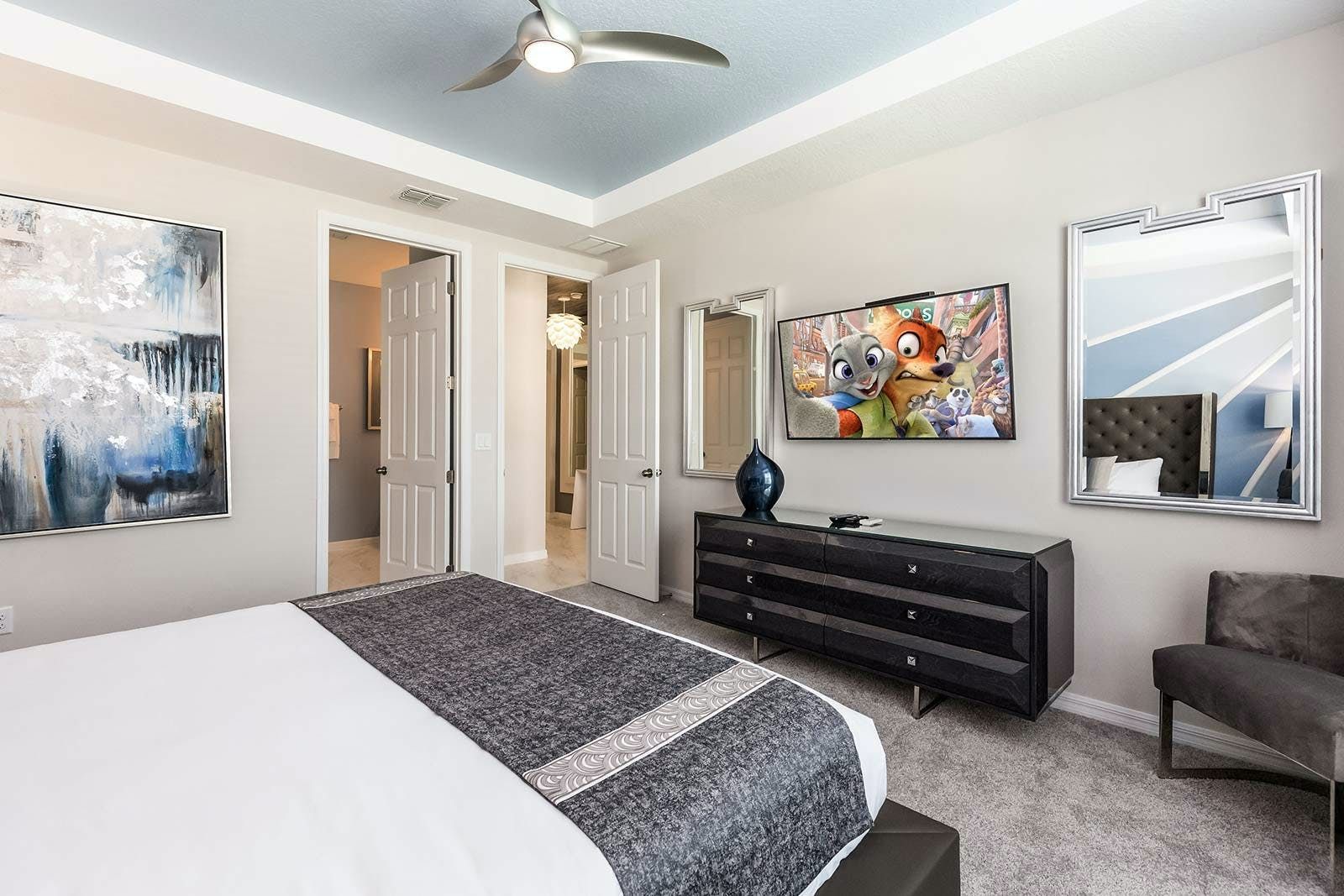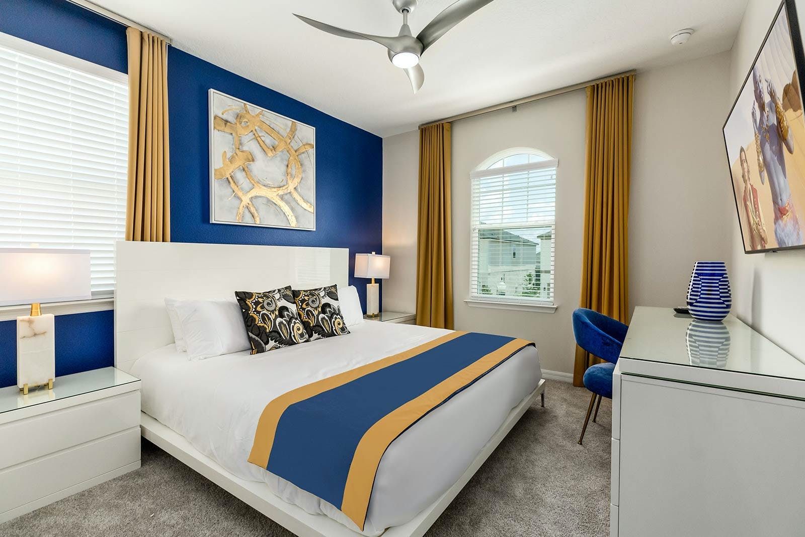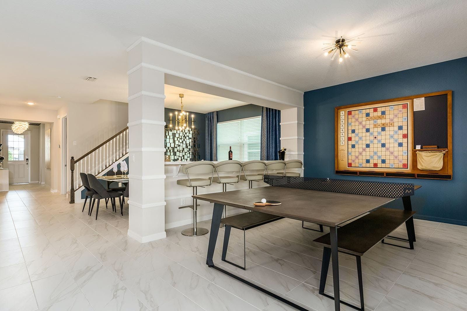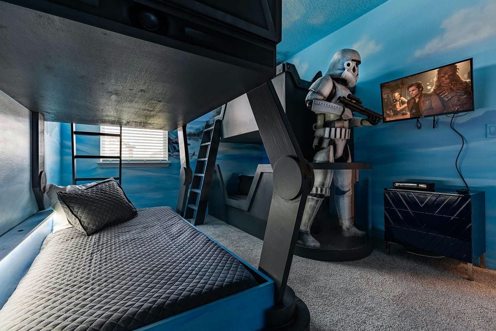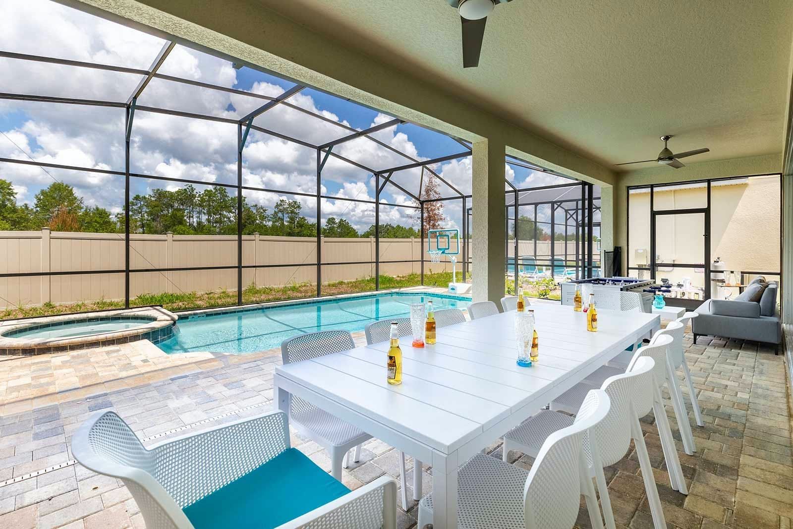 The fun of Florida comes to life in this family home. From the private pool and galaxy-themed movie theatre to the games and karaoke room, every detail has been considered to bring joy to your stay. Kids will love the themed bedrooms and everyone can enjoy the range of resort amenities. You’ll have access to the communal pool and it’s just steps to Melbourne Beach. There’s also plenty to keep the whole group entertained in the area with easy access to Cocoa Beach Pier and Ron Jon’s Surf Shop. It’s also less than a ninety-minute drive to Walt Disney World Resorts and Universal Studios.