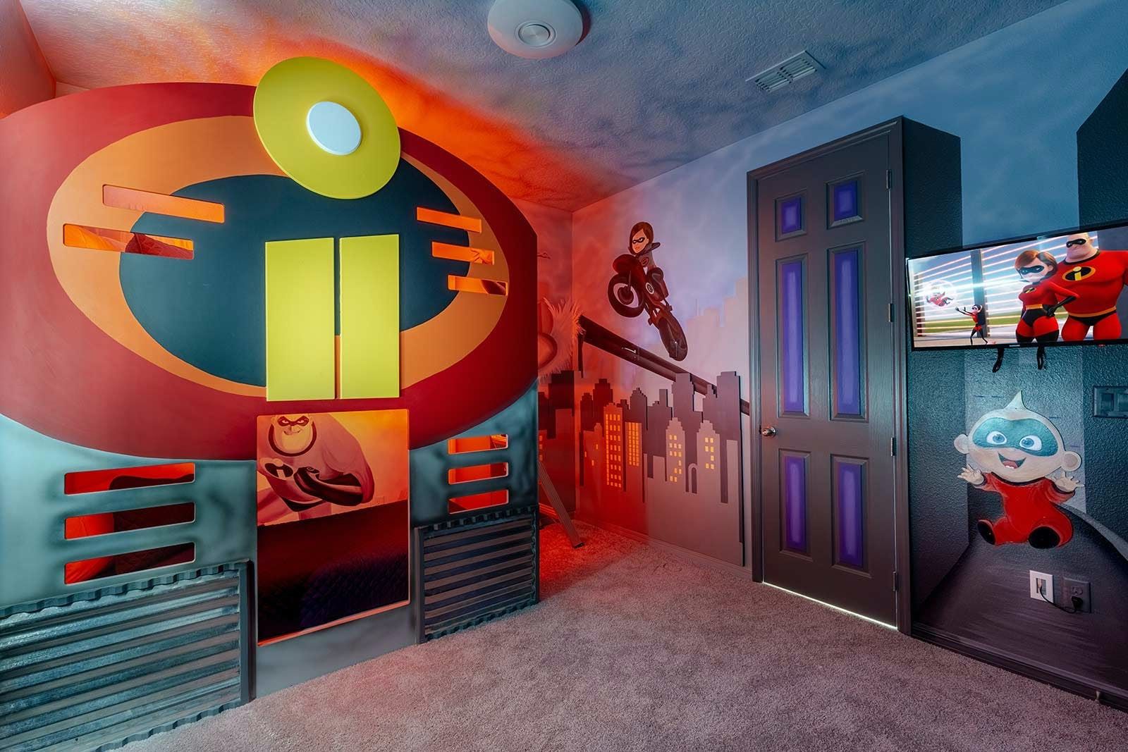 Soak up the sunny spirit of Orlando with a stay in this fun-filled family home. From the themed bedrooms to the movie theatre and games room, this is the perfect spot to make magical memories. There’s also a screened pool and a spa for long relaxing soaks and a grill can be arranged for a small additional fee. Plus, you’ll have access to the resort facilities throughout your stay – including the swimming pools, the gym, basketball courts and restaurants. You’ll also be perfectly placed for day trips to Disney World, Universal Studios and Sea World.