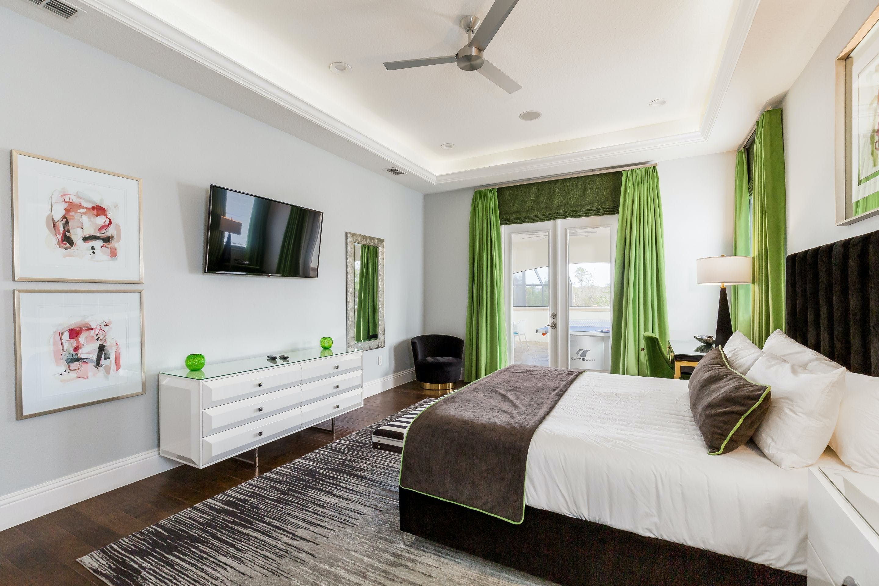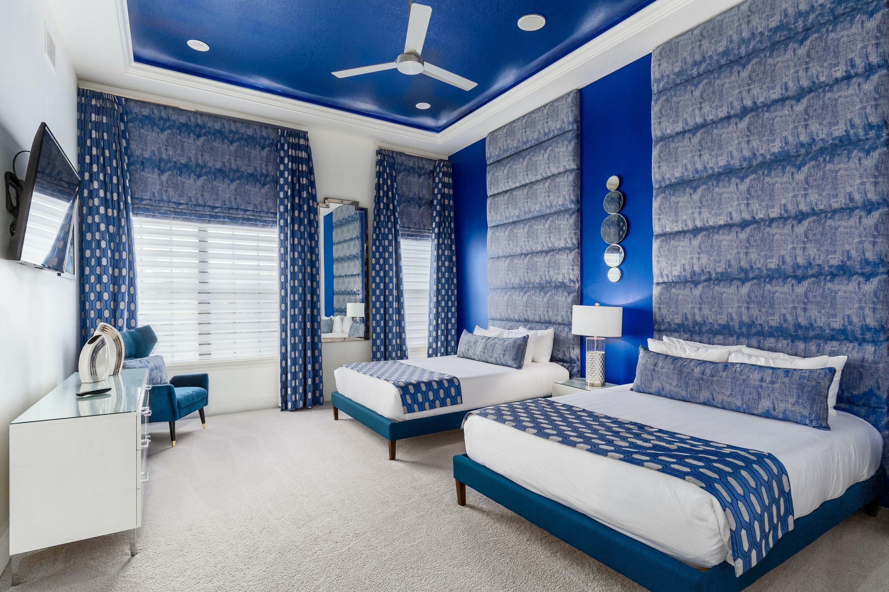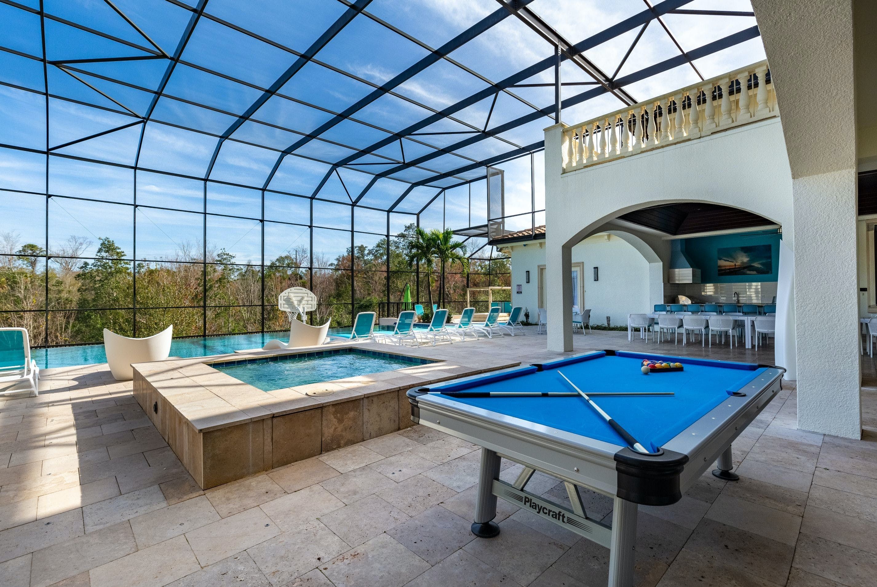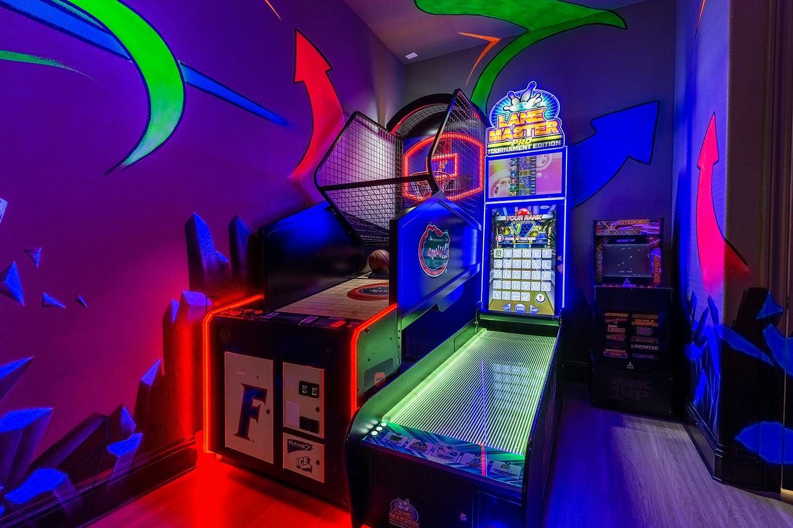 Step inside this show-stopping Orlando mansion and you’ll discover a world of fun, luxury, and relaxation. Set in a luxurious gated resort, days here are never ordinary. Think a fully screened pool, private home cinema, and a game loft packed with arcades and even karaoke. Kids will be thrilled by the incredible themed bedrooms, while grown-ups can unwind at the bar, relax in the main bedroom's spa-like bathroom or dine together under glittering chandeliers. Outside, palm trees frame the pool deck, with plenty of space to play, sunbathe, and feast. You’ll want a car to reach shops, restaurants, and Orlando’s famous attractions, but the space, resort setting, and unforgettable amenities make every moment here more than worth it.