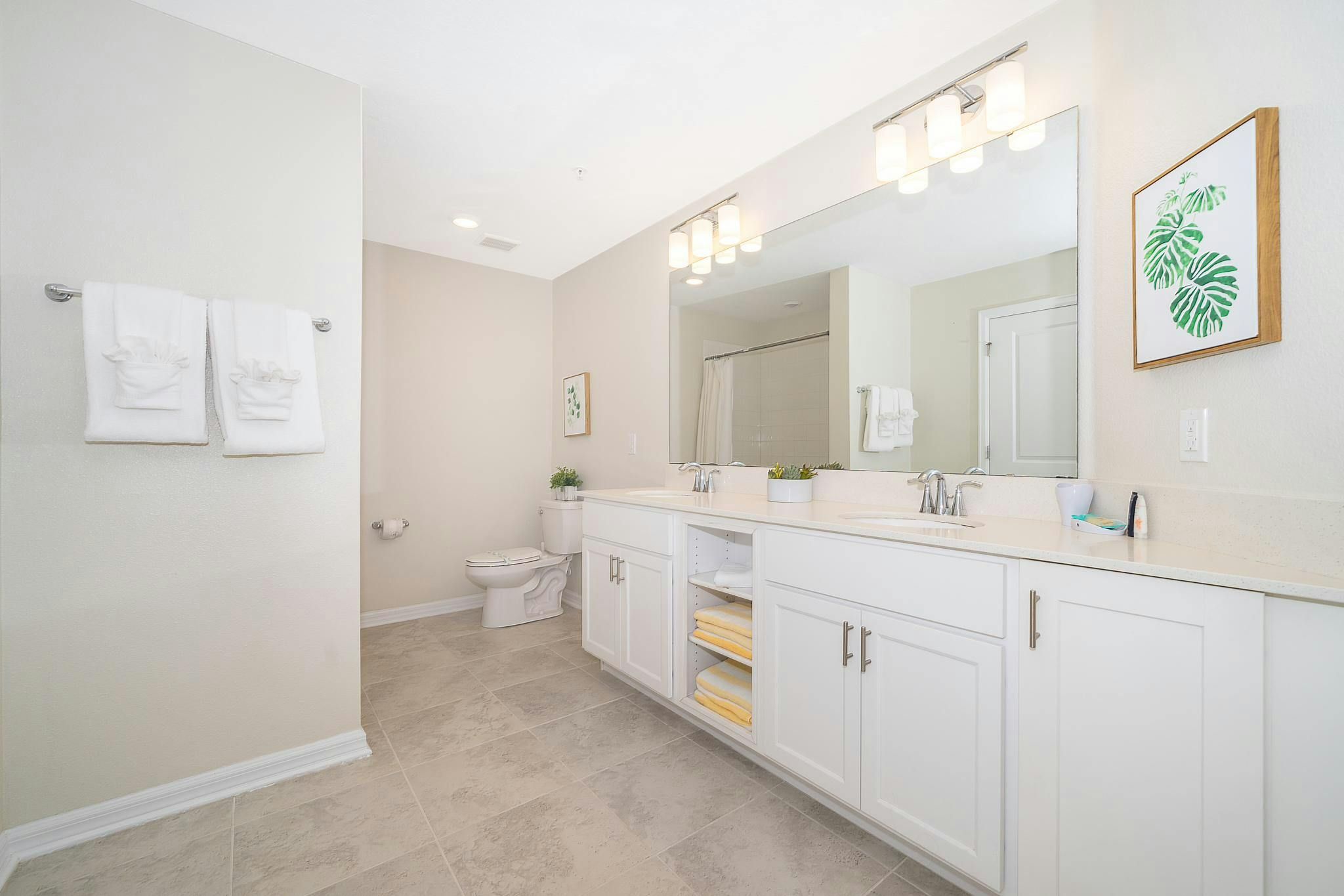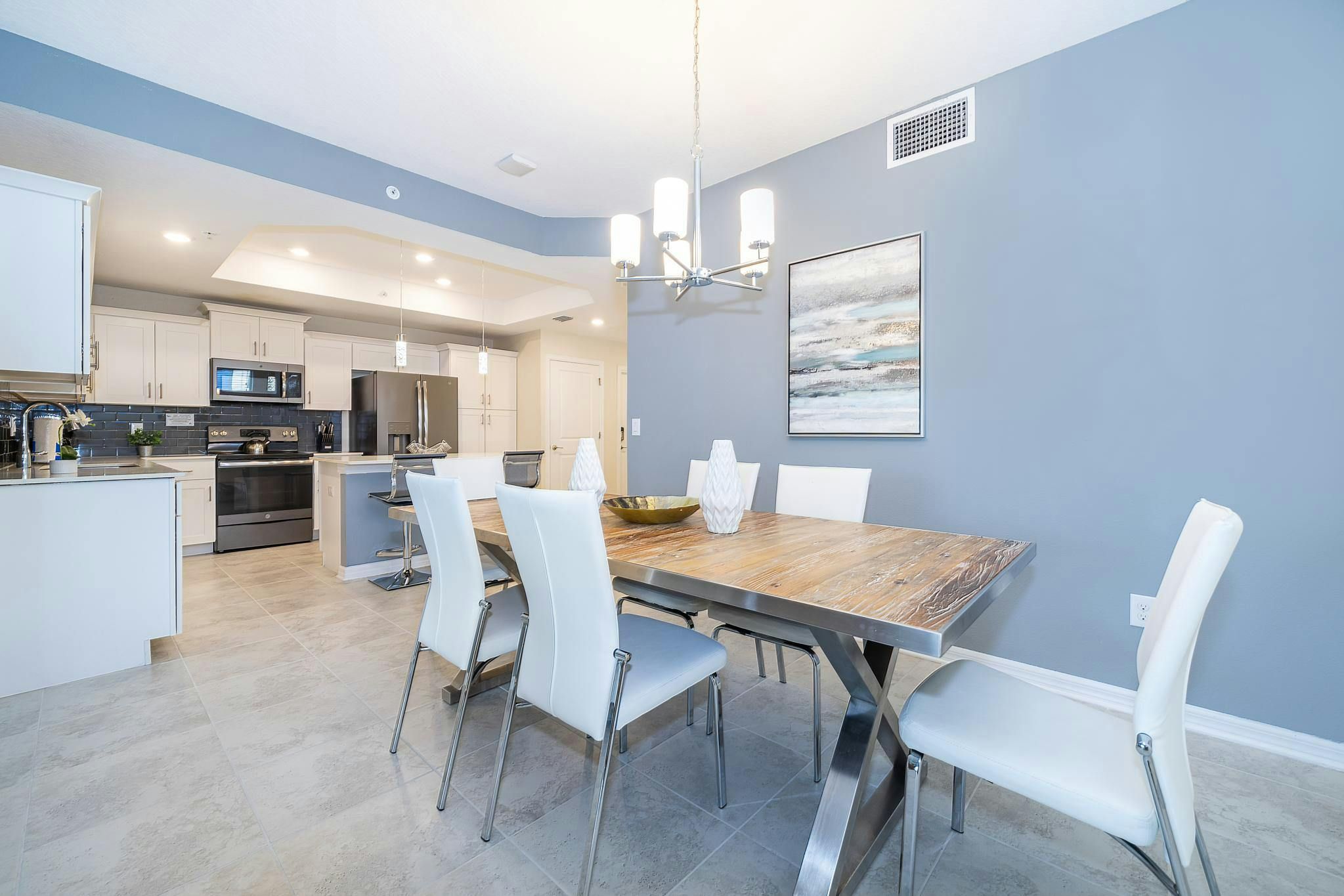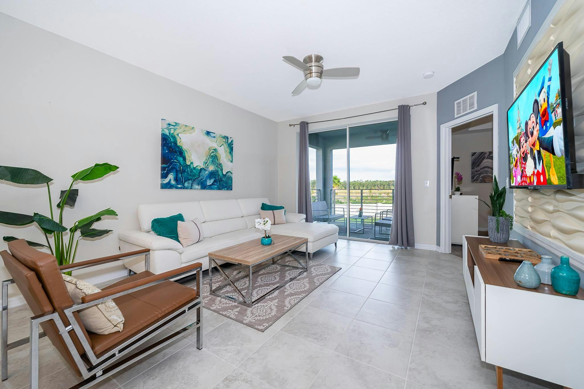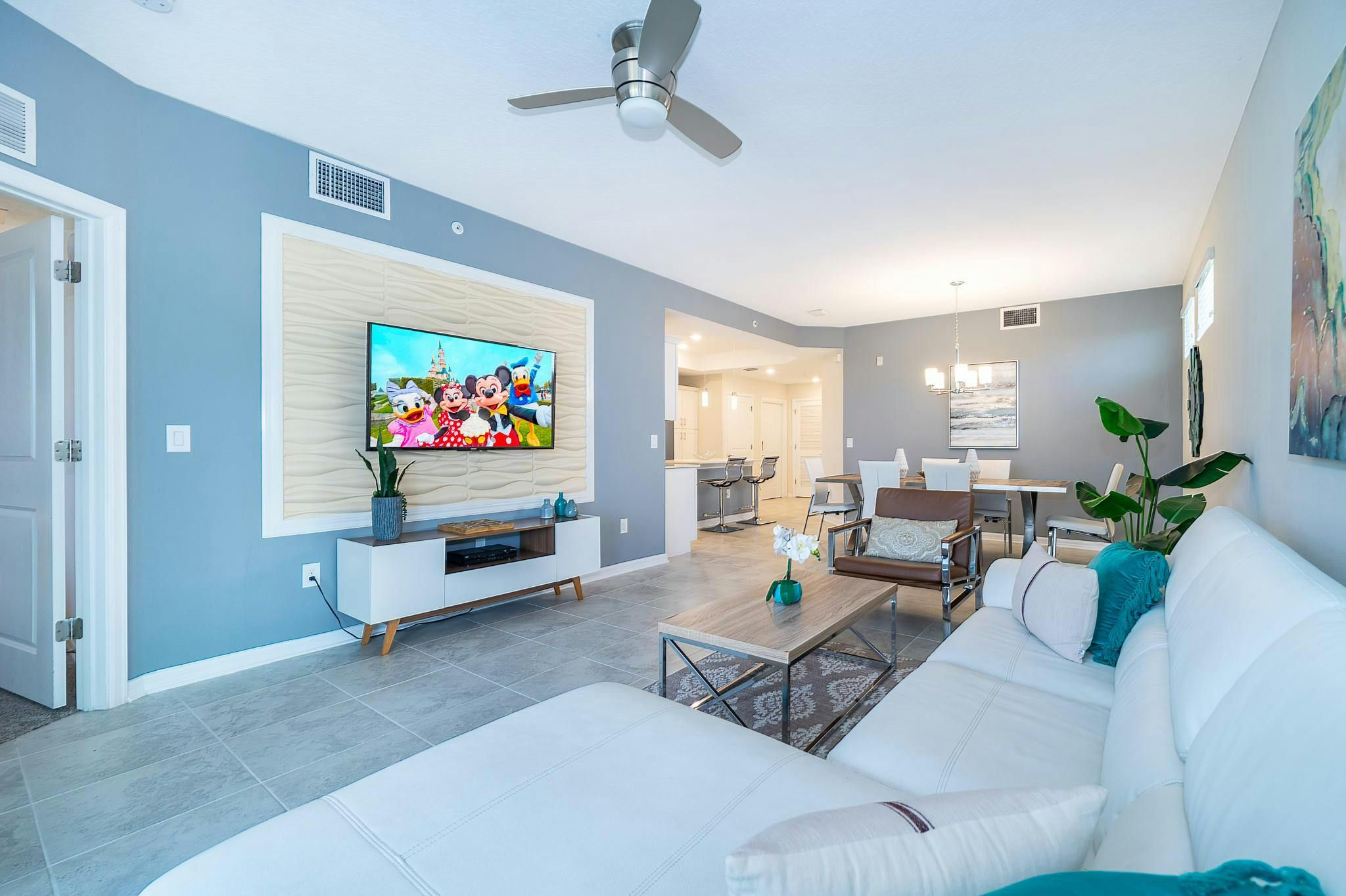 This brand new vacation rental condo is a stunning corner unit that boasts three bedrooms and two bathrooms. The master suite features a king-sized bed while the other two bedrooms have a full and twin bed respectively. The location is unbeatable, as it's the closest community to Disney, Disney Springs, malls, and Walmart. Guests will also have access to the recently opened clubhouse resort which boasts fantastic amenities including two pools (one with a lazy river), a restaurant, gym, and more.