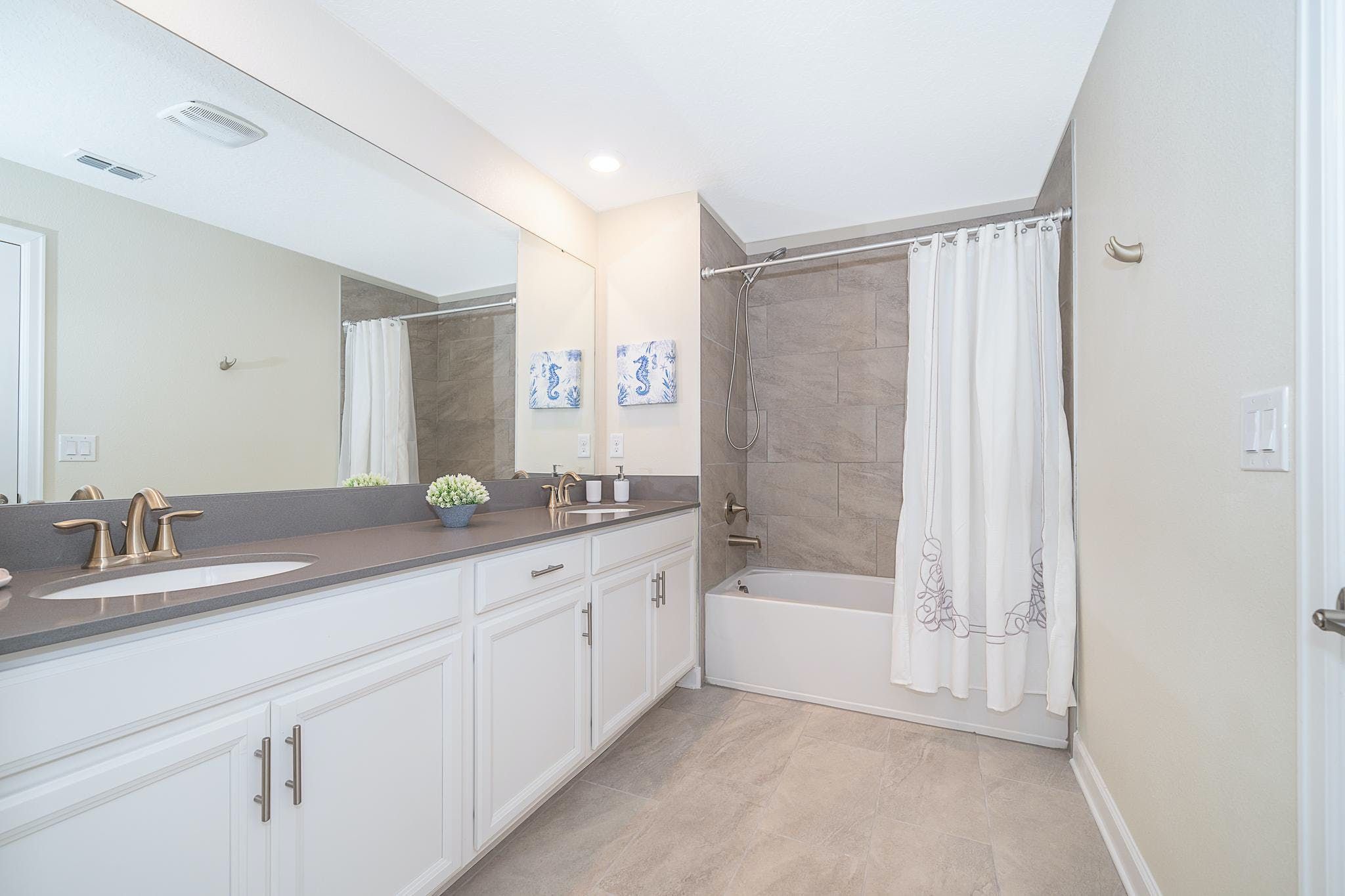 This stunning brand new vacation rental with a pool boasts 5 bedrooms and 4 bathrooms, including 2 king bedrooms, 1 queen bedroom, 1 bedroom with full & twin beds, and 1 bunkbed with full & full beds. Located in the highly sought-after Storey Lake Resort, this property is the closest community to Disney, Disney Springs, malls, and Walmart. Guests will enjoy access to the recently opened clubhouse resort which features fantastic amenities such as two pools (including a lazy river), a restaurant, gym, and more. With its prime location and luxurious features, this vacation rental is sure to provide an unforgettable vacation experience.