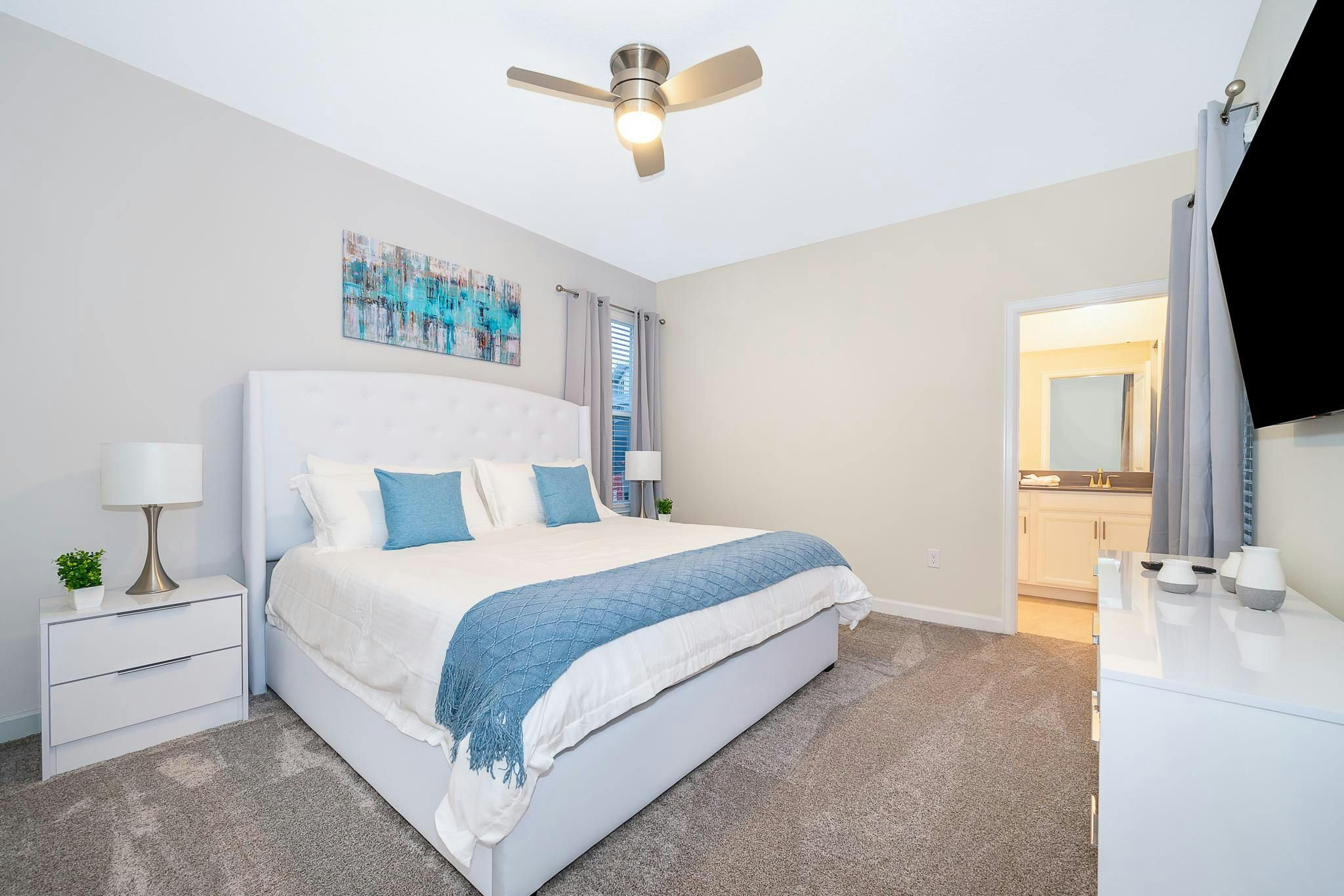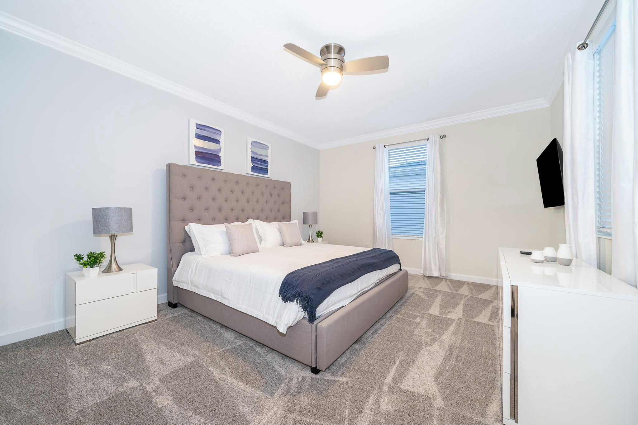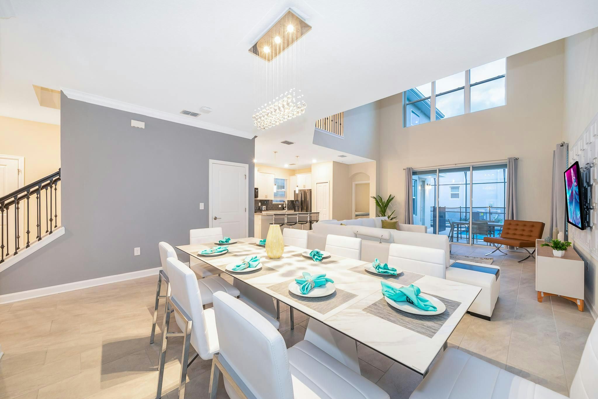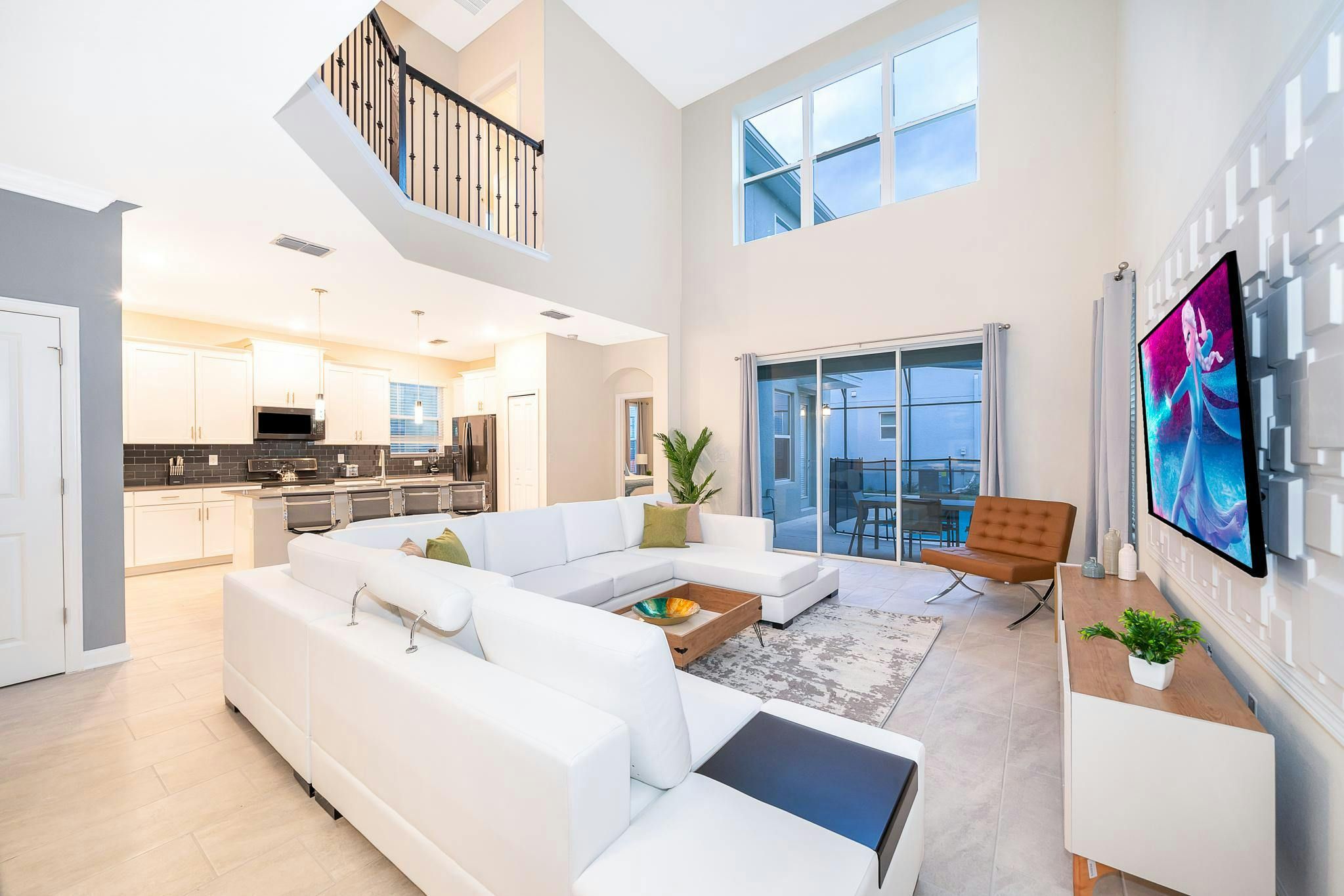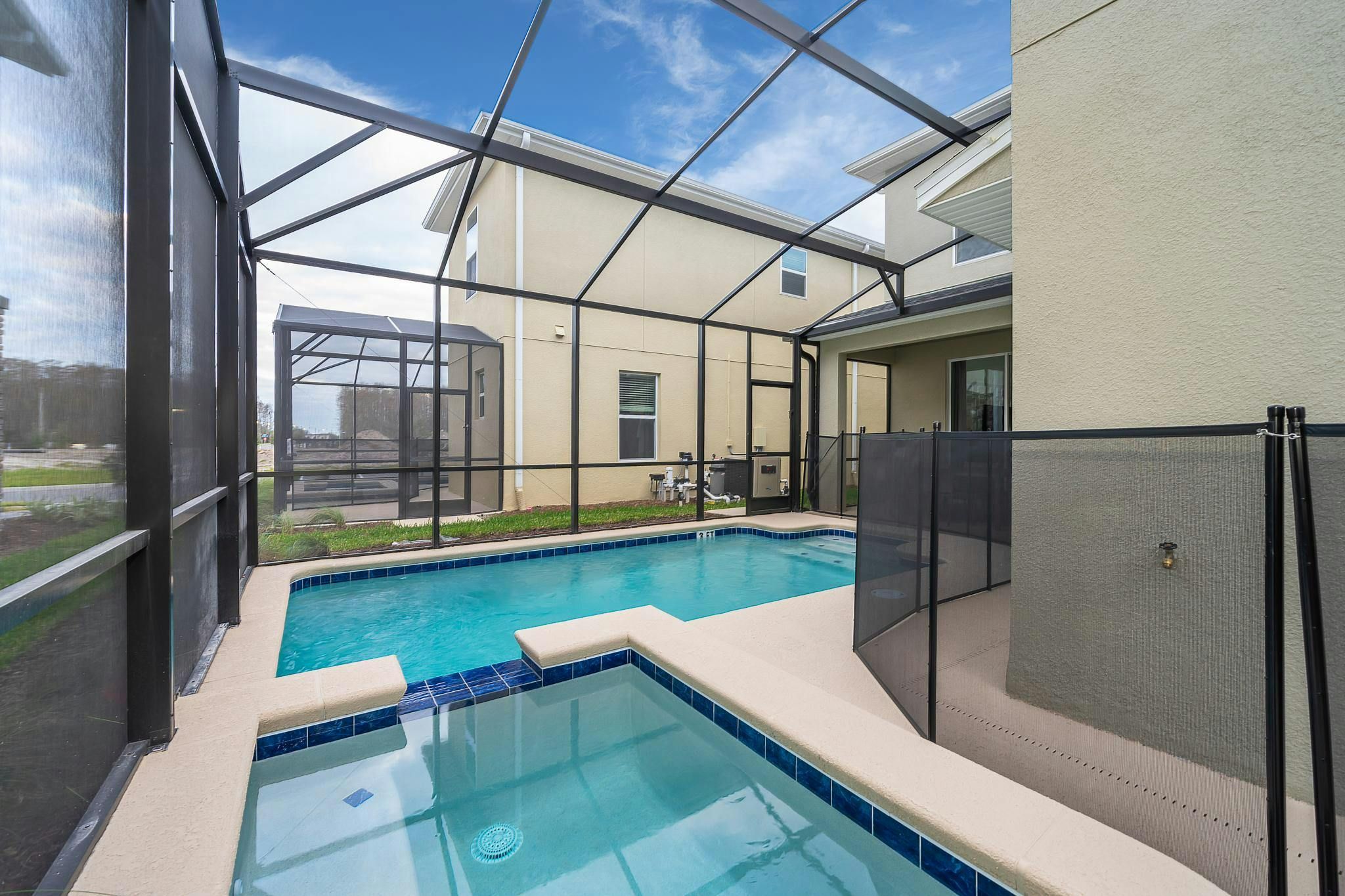 This brand new single-family home boasts five bedrooms and five bathrooms, with two bedrooms conveniently located downstairs. The fully equipped kitchen is perfect for preparing meals, while the private screened pool and spa provide a relaxing oasis. Guests can enjoy the game room or take advantage of the private parking. The property has been newly furnished and decorated, and includes a washer and dryer for added convenience. Internet and cable are included. Located near Disney, Disney Springs, restaurants, and shopping centers on Osceola Parkway near I-4, this property is situated in the Storey Lake community. Guests have access to the newly opened Clubhouse Resort with great amenities including two pools (including a lazy river), a restaurant, gym, business center and more.