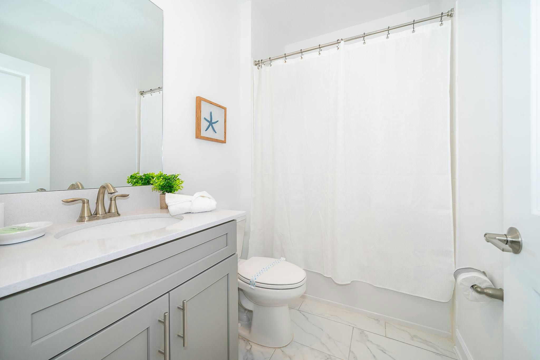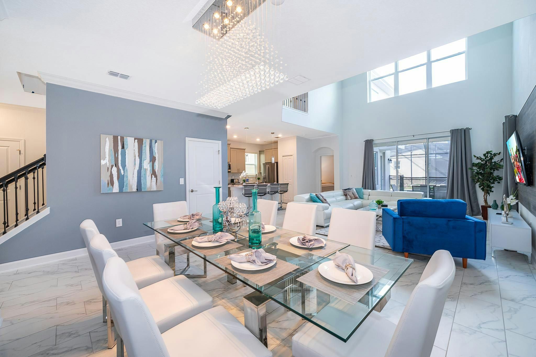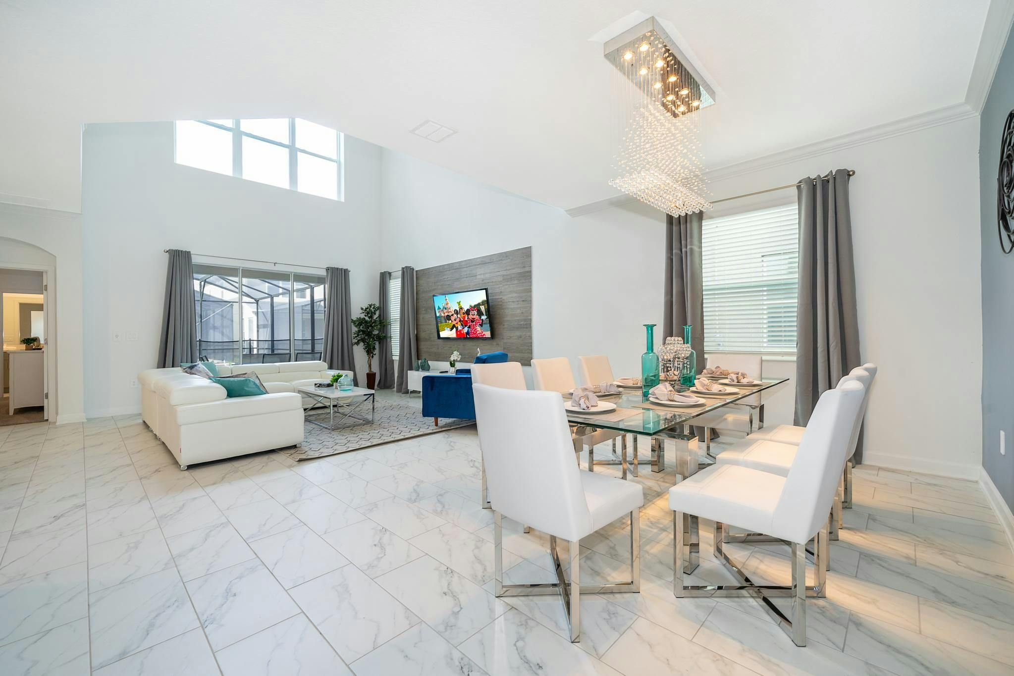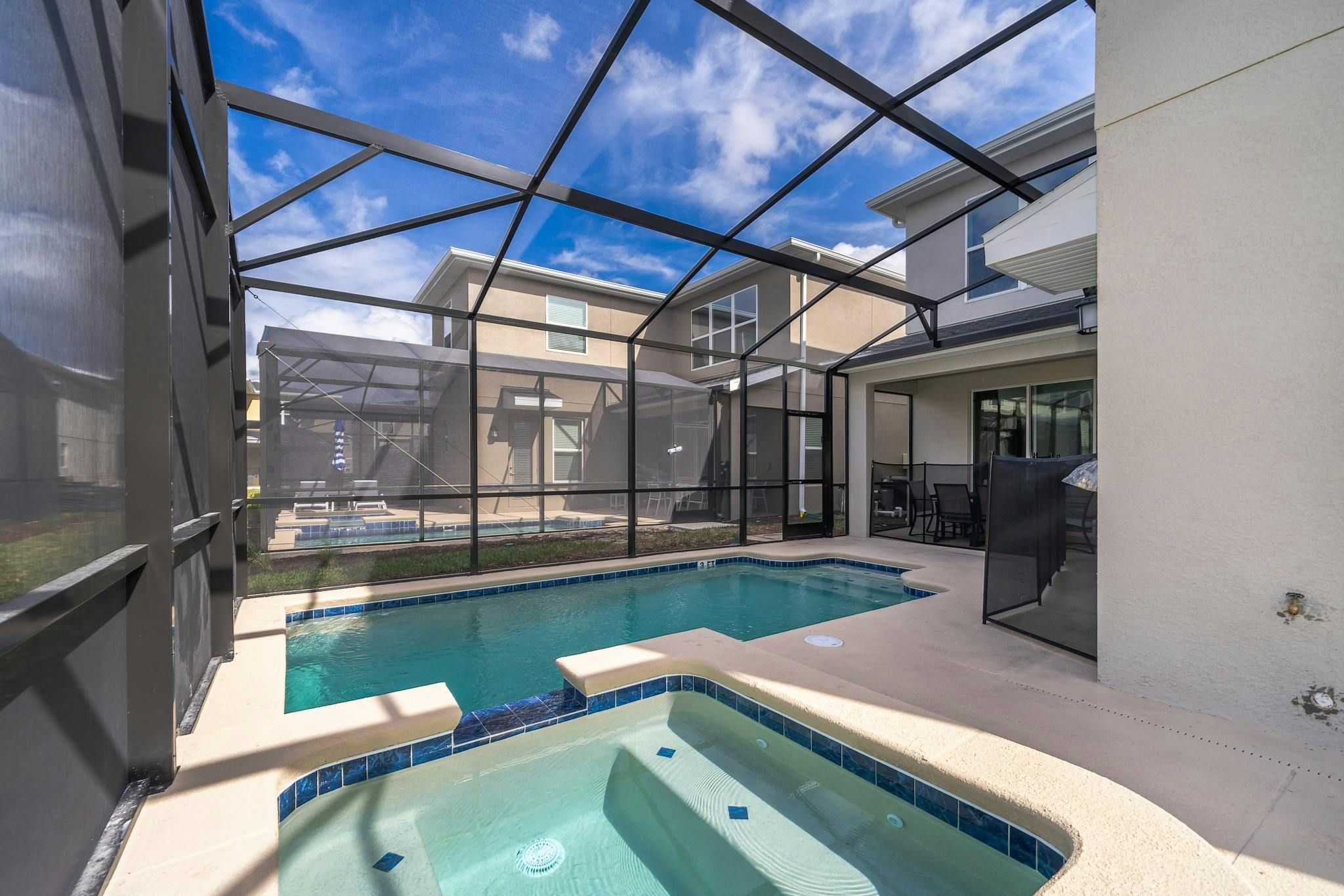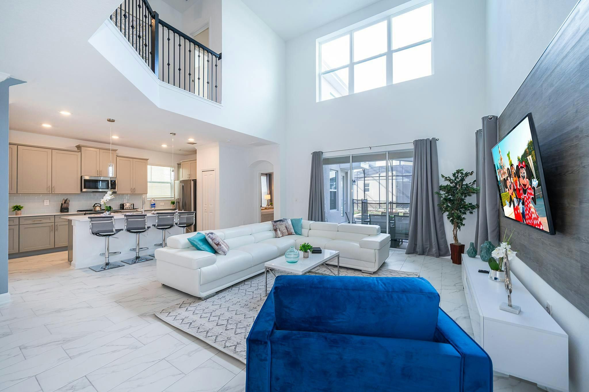 This beautiful newly furnished and decorated single-family home boasts 5 bedrooms and 5 bathrooms, with 2 bedrooms located downstairs. Equipped with a fully stocked kitchen, washer and dryer, internet, and cable, this home has everything guests need for a comfortable stay. The private screened pool and spa provide the perfect place to relax after a day at Disney World or Disney Springs, both of which are located nearby. The community is situated on Osceola Parkway near I-4 in the Storey Lake area. Guests can enjoy all the amenities of the Clubhouse Resort just opened with two pools including a lazy river, restaurant, gym, business center and more. Private parking is also available for added convenience.