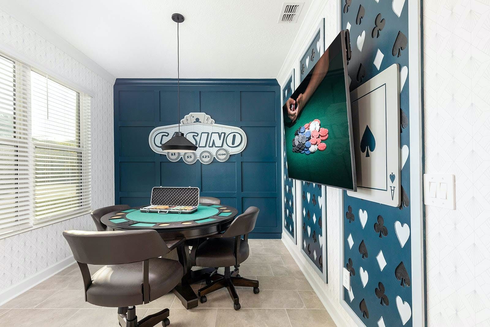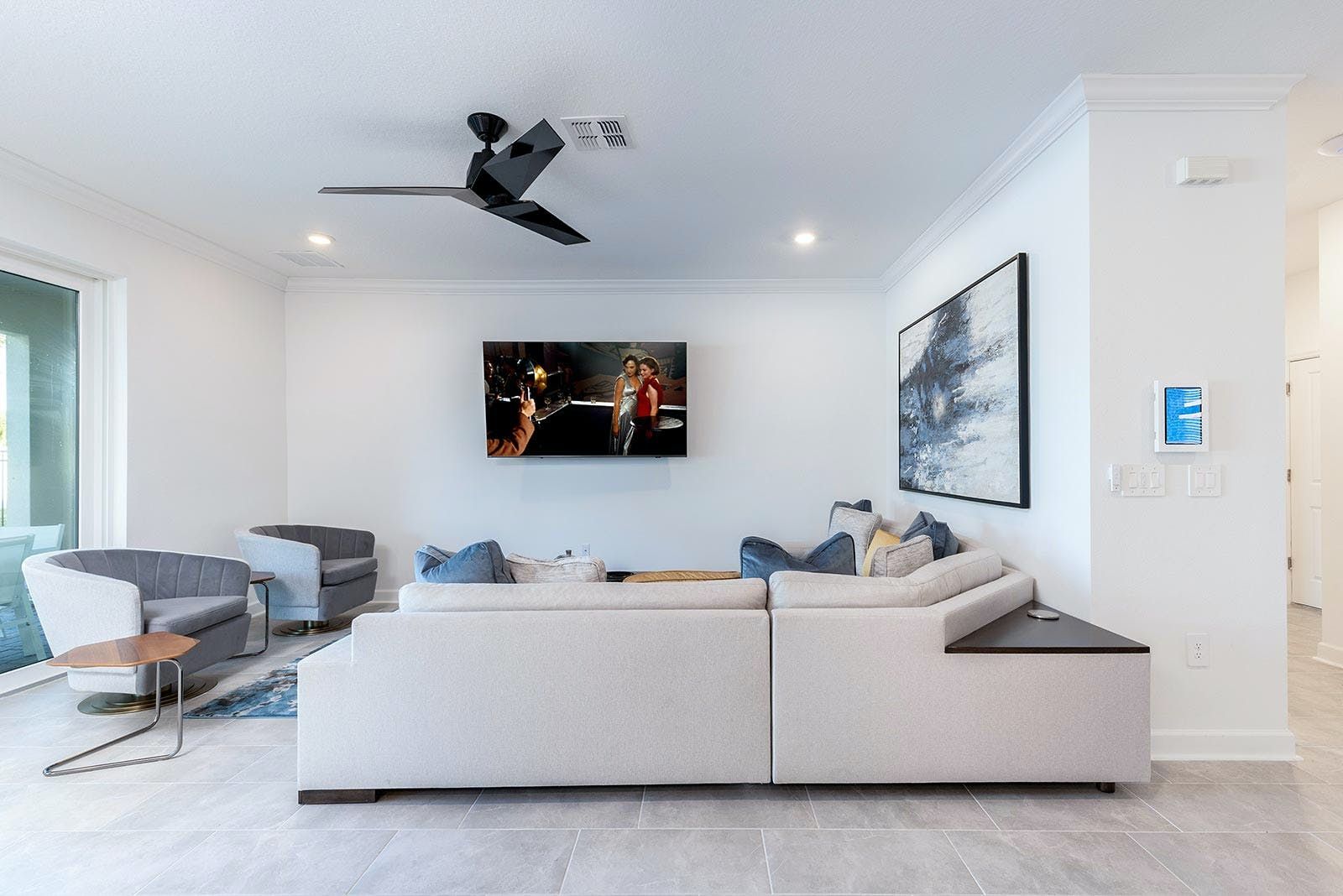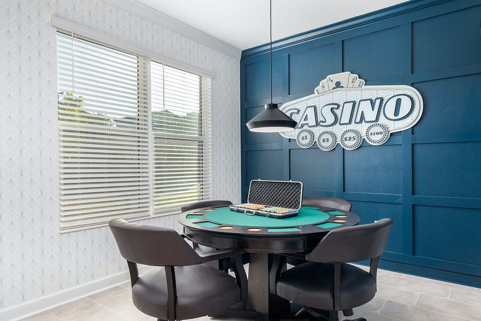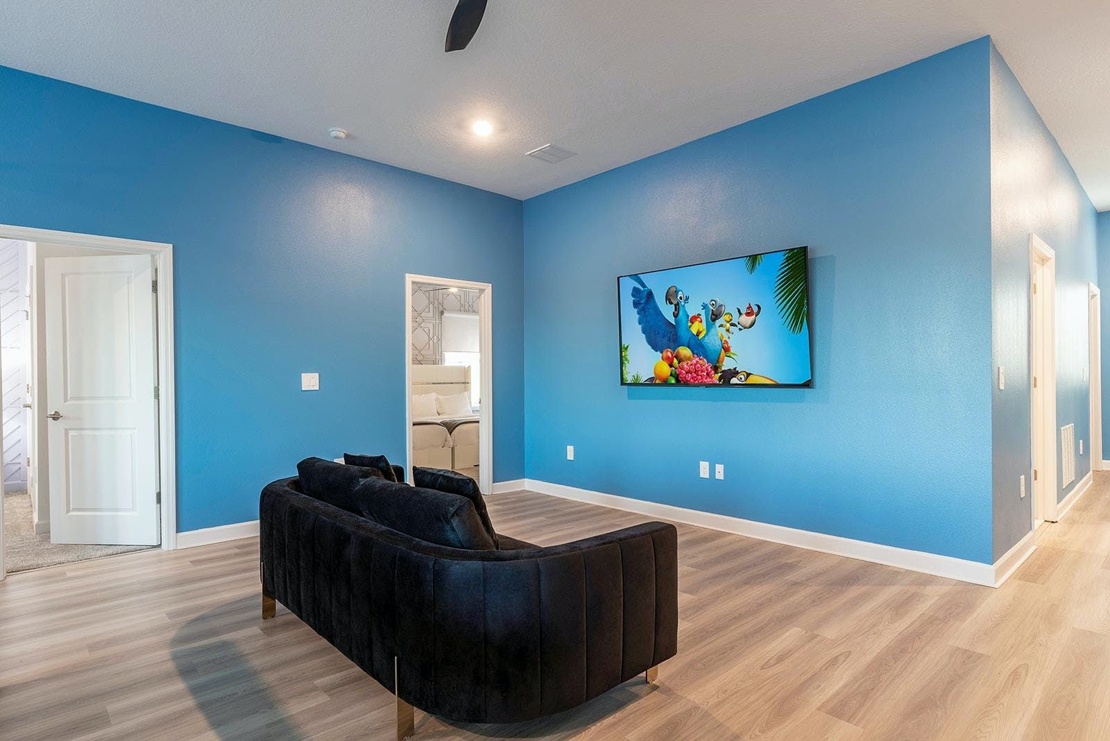 This resort offers custom-designed 4-8-bedroom villas with private pools and premier in-house amenities, surrounded by tropical landscaping and breathtaking views. Guests of each villa can enjoy direct access to the ocean, a brand-new resort pool with lounge seating and facilities, as well as an expansive marina and bike trail. The villa has an open-plan living and dining area with a beachy color palette that brings the outdoors in. The fabulous chef's kitchen has stainless steel appliances, cooking gear, utensils, and a kitchen island with seating. The private pool oasis is surrounded by warm beachy air, recliners, crystal water, and patio furniture for outdoor dining and lounging. Five of the bedrooms offer luxe bedding, soft modern lighting, calming artwork, and en suite bathrooms while the 6th bedroom is pirate-themed with a breathtaking wooden ship as its centerpiece. There are three recreation rooms: a private theater; casino room; spacious loft with billiards and shuffleboard. The villa is located close to famous attractions like Disney World Resorts (90 min), Universal Studios (90 min), Sea World (90 min), etc., restaurants, parks, beaches, museums, and more.