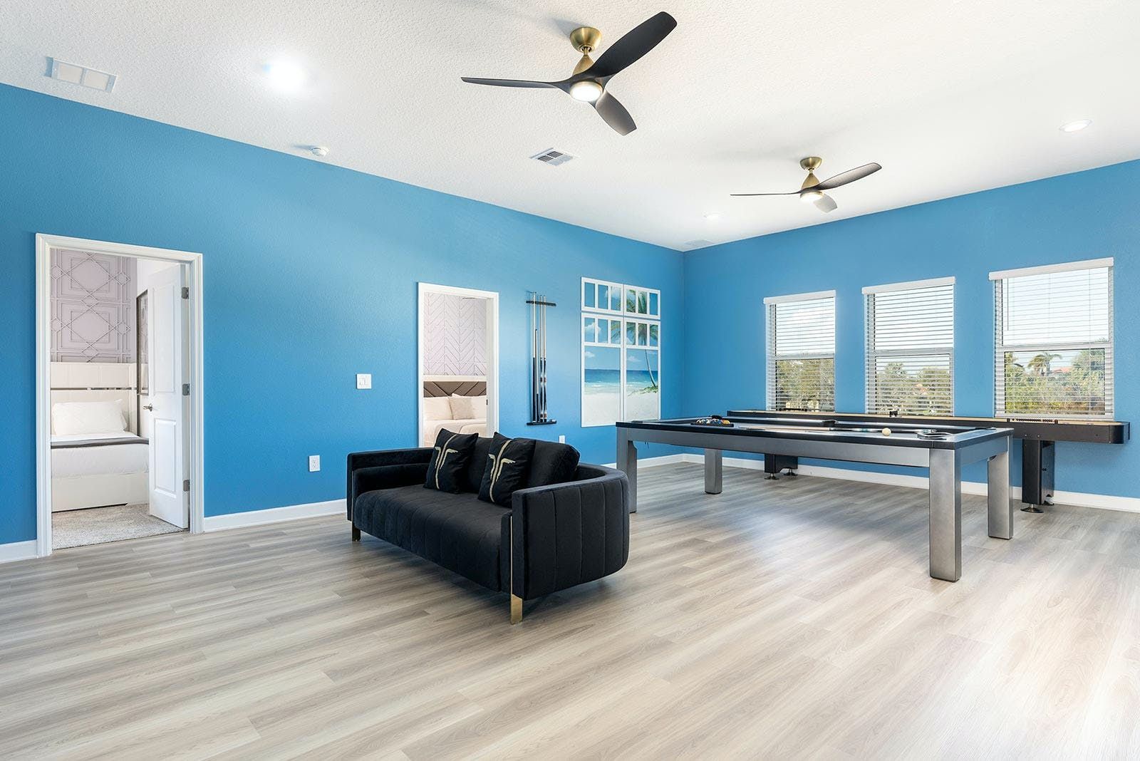 Nestled in a charming gated community in Melbourne Beach, Florida, this home offers direct beach access and resort-style living. Perfect for families, you'll find fun-filled spaces designed for all ages. Relax in the breezy, open-plan living area, or whip up meals in the sleek chef’s kitchen. The private pool and covered patio provide an idyllic spot for sunny afternoons and al fresco dinners. Kids will love the pirate-themed bedroom, while the whole family can enjoy the private cinema, casino room, and game-filled loft. With access to the resort's amenities, including a marina, this is the ultimate coastal retreat for family holidays.