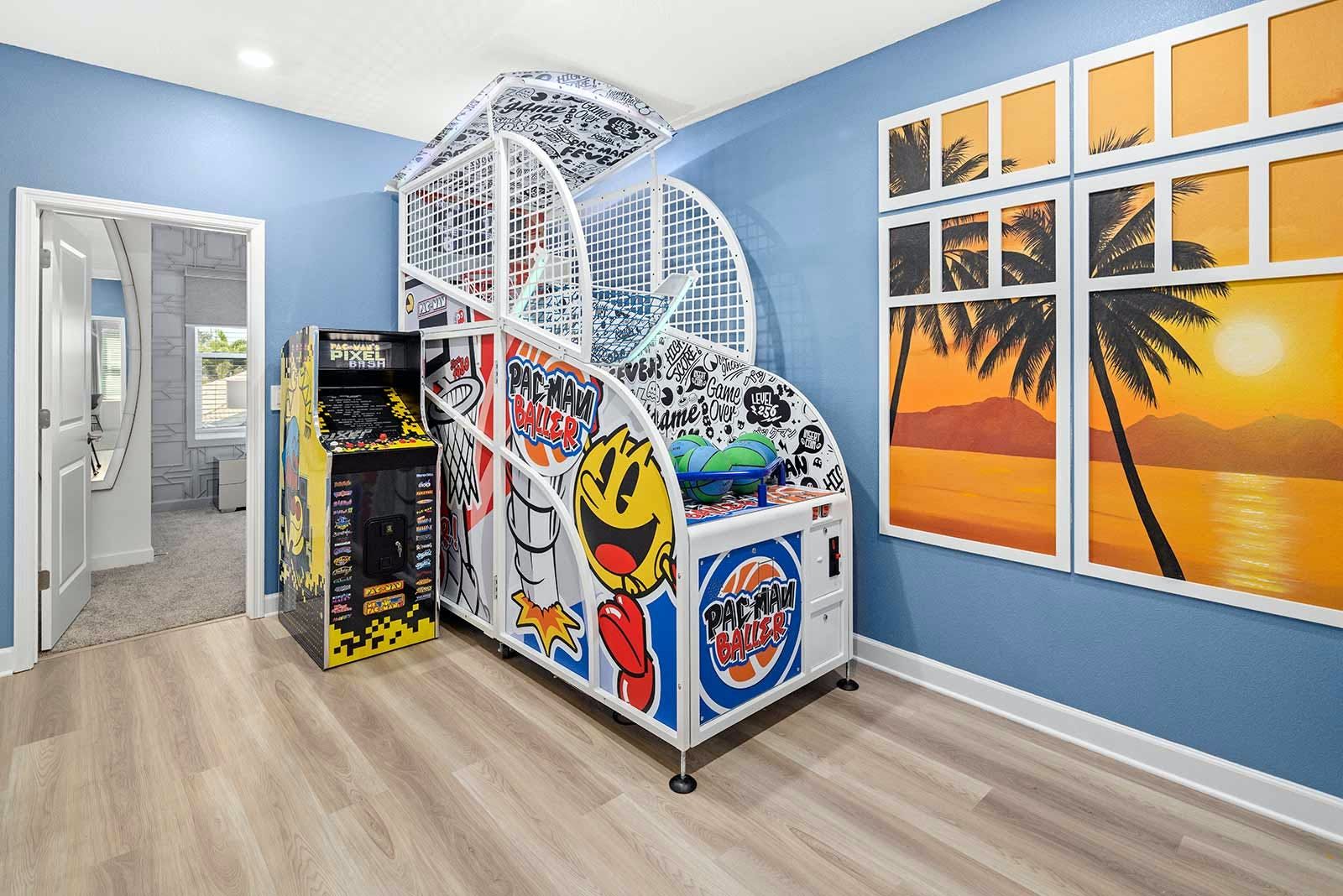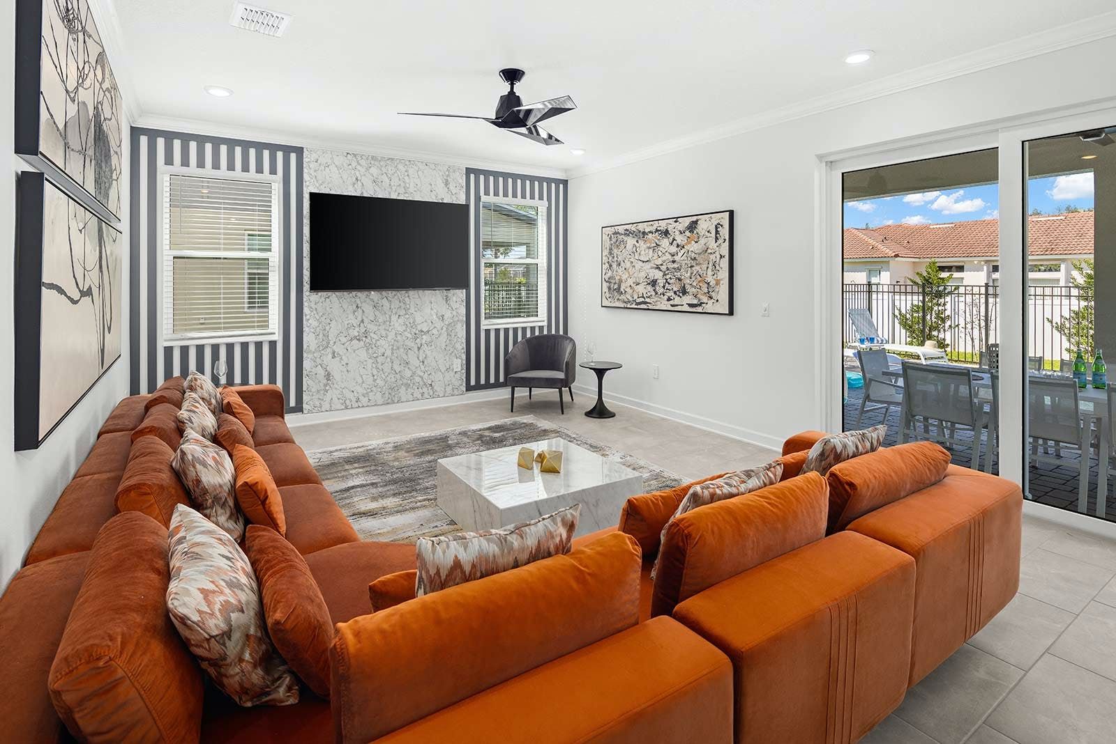 Moments from one of Orlando's most loved beaches, this home opens its doors to a blissful coastal escape. There’s a private pool for leisurely swims and you’ll find plenty to keep the whole family entertained with a games room and a home theatre for movie nights. Kids will love the themed bedroom and you’ll find all the essentials you could need for a laid-back stay. You’ll have access to the resort pool throughout your stay and there’s lots to explore in the area. From here, it’s a short drive to the nearest restaurants and the famous Cocoa Beach Pier and Ron Jon’s Surf Shop are just thirty-minutes away.