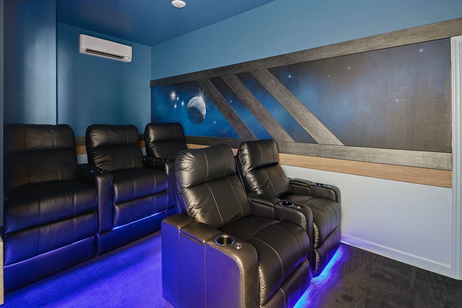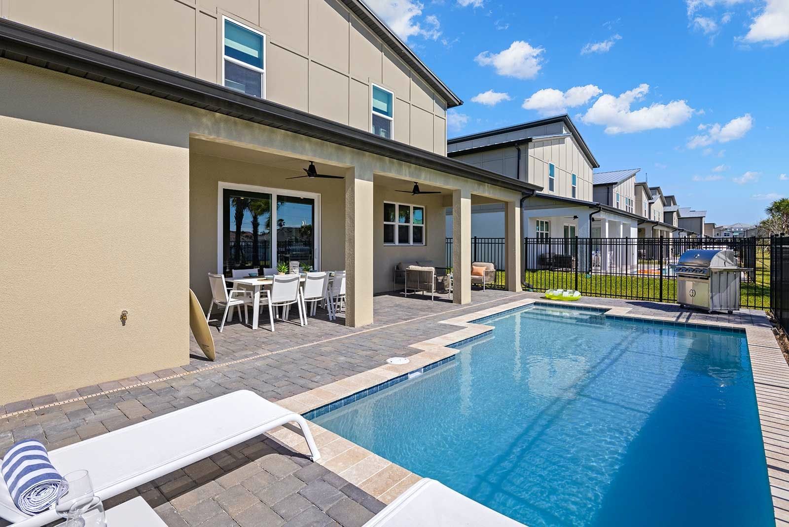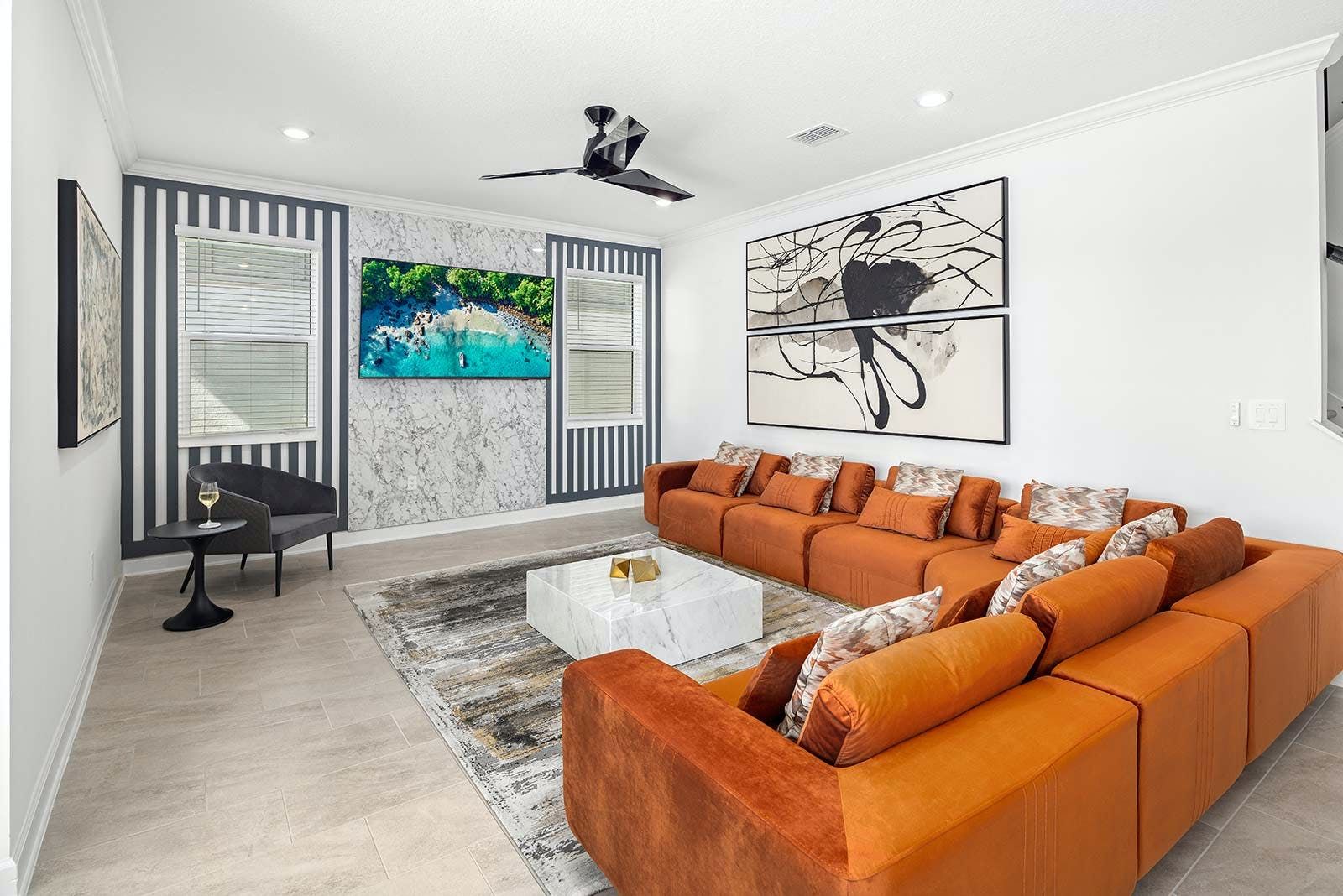 This luxurious 4-8 bedroom villa is the perfect coastal vacation home. The villa features custom-designed interiors with chic contemporary furnishings and modern artwork. The living and dining spaces are spacious and open-plan, making it perfect for families or groups of friends to relax and reconnect. The kitchen is a culinary dream space with stainless steel appliances, white cabinetry, and a black tile backsplash. The villa also has a private pool, outdoor grill, and poolside furniture for dining and lounging alfresco. With plush bedrooms that cater to grown-up tastes, this vacation home is perfect for guests looking for an upscale experience. There are three recreation rooms available, including a movie theater, arcade games, a billiard table, shuffleboard, and karaoke room with mini stage. This unique vacation haven offers luxurious amenities and charming small-town vibes where entertainment, culture, nature, and delicious dining options are always on tap.