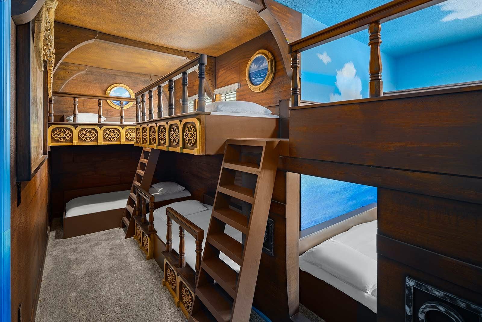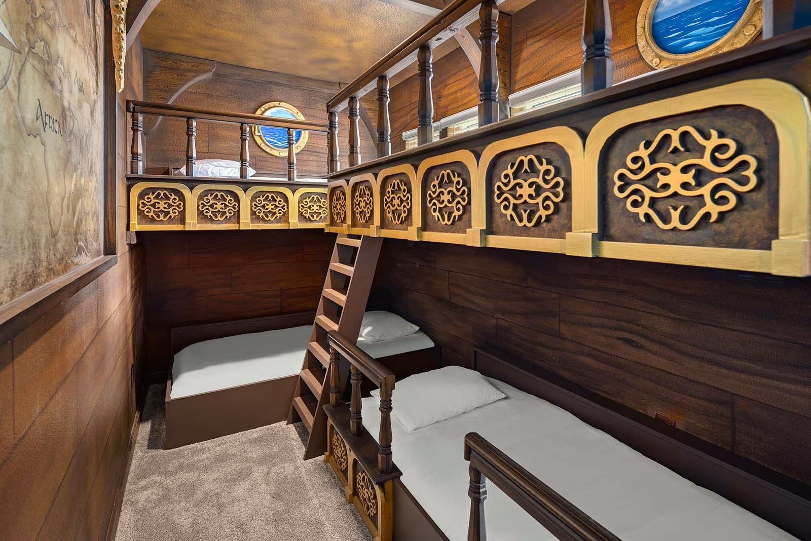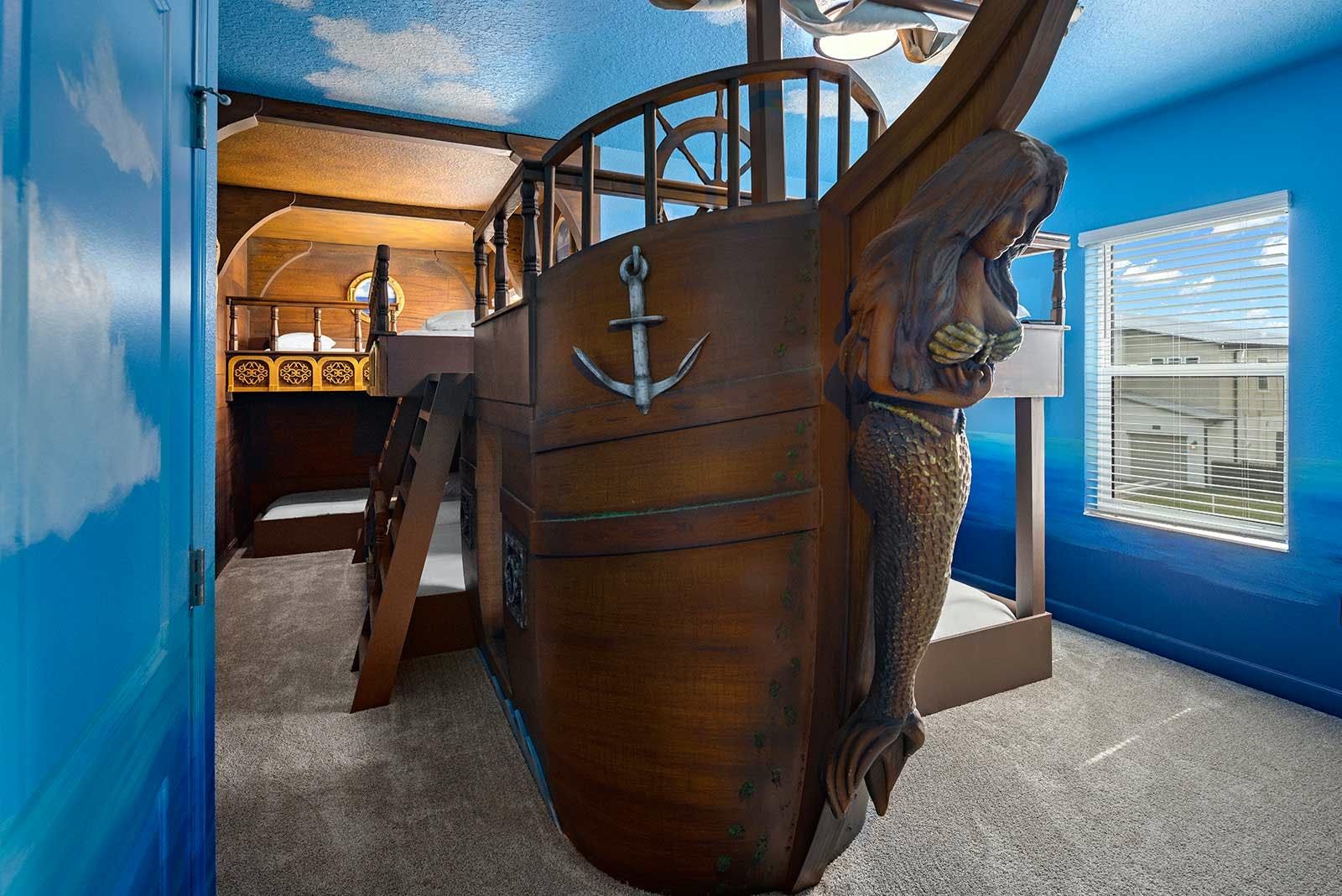 Moments from Melbourne Beach, this home offers family living at its finest. It's part of a bustling oceanfront resort, so you'll have access to a sprawling communal pool, expansive marina, and poolside leisure activities. Orlando's famous theme parks are also a ninety-minute drive away when you're in the mood for an adventure. But there's plenty ot keep you busy back home, too. Outside, a private pool and patio are ideal for soaking up the sun. Head indoors for even more surprises, including a home theatre, arcade loft, and pirate-themed bedroom designed for little ones. There's no doubt it's perfect for groups, though we think it may feel a bit snug at full capacity.
