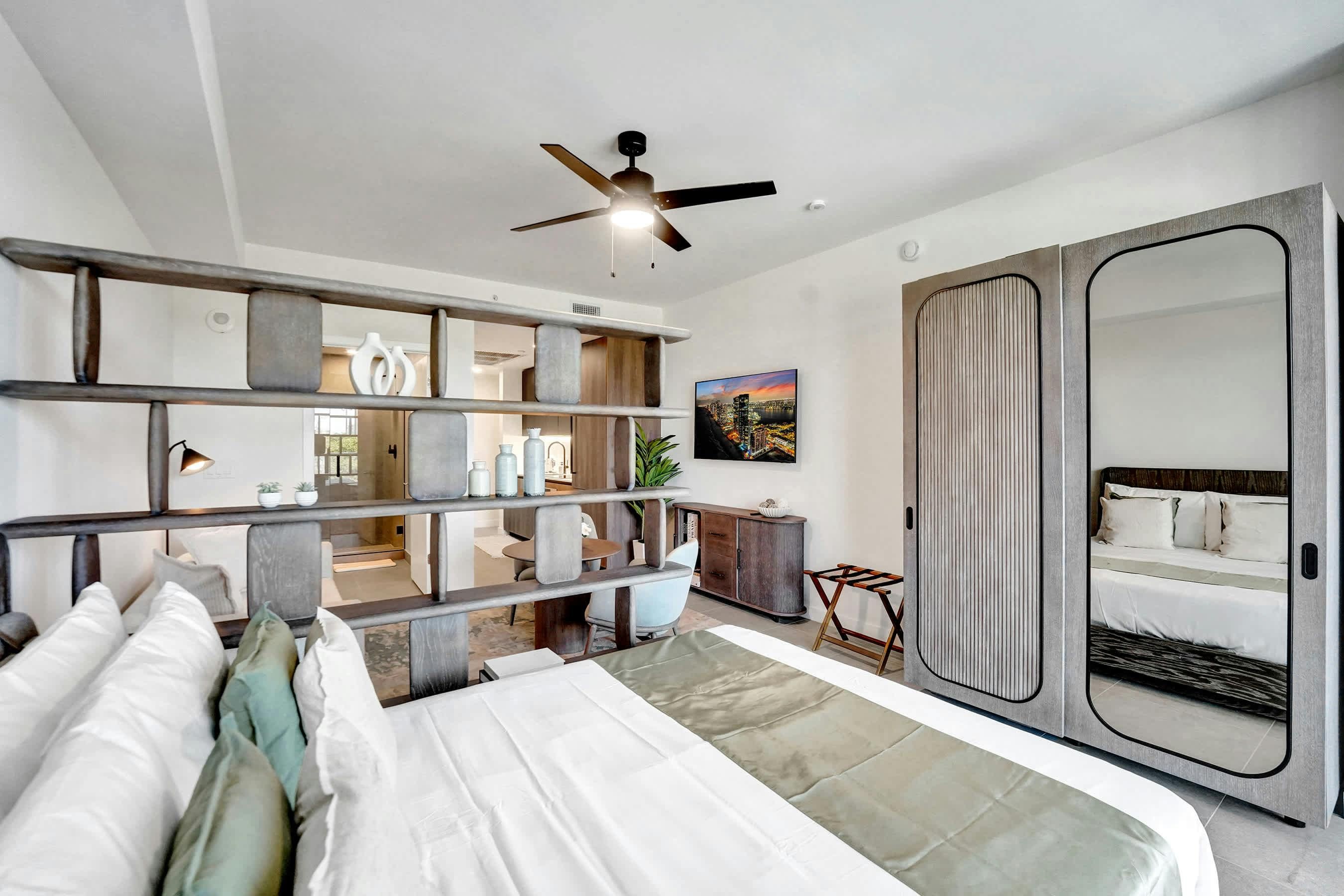 Set in a newly designed aparthotel, this studio apartment is all about the bells and whistles. Its endless array of on-site amenities – from its restaurants to the 150-foot swimming pool with waterside bar service, and the impressive co-workspace facilities – there's enough to suit every kind of guest. And, with the beach just a short walk away, you'll be hard pressed to decide whether to stay in or head out with so much on offer, no matter your decision. Do take note, however, that with its open-plan design, privacy is limited – especially when at full capacity with the living room sofa bed in use.