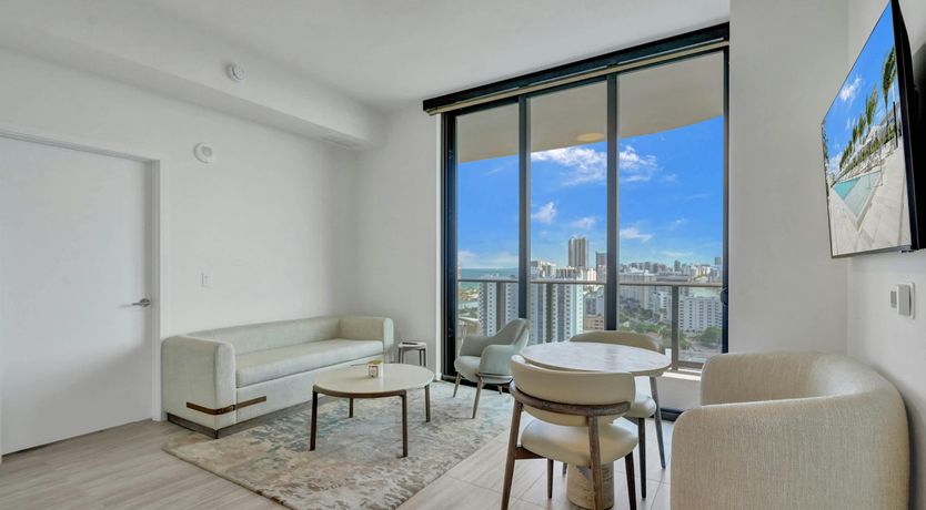 Step into this apartment and you’ll find a refreshing coastal sanctuary. There’s a private balcony for sunset drinks and a calm aesthetic that makes you feel at home right away. You’ll have access to the communal pool throughout your stay and there’s a gym as well as a games room. Housekeeping can be arranged on request and you’ll find everything you could need within easy reach. You can walk along the palm-lined streets to local cafes, parks and restaurants. It’s also just minutes to South Beach and Bal Harbour.