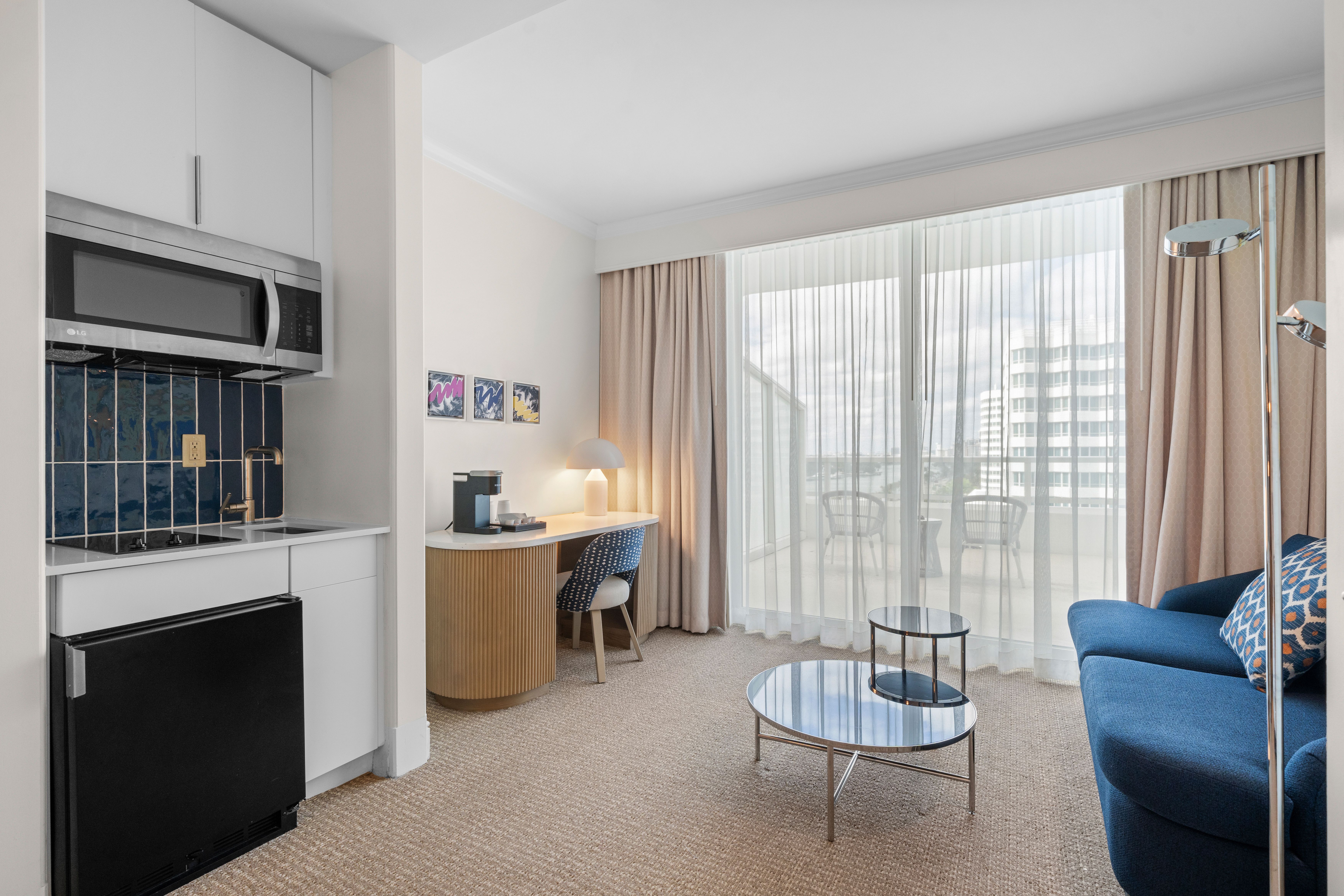 This apartment in Miami Beach offers modern comfort with a private balcony looking out towards the Atlantic. Inside, the living space is practical and relaxed, with a kitchenette for easy meals and thoughtful details to make longer stays simple. You'll enjoy access to several pools, a gym and direct beach access, so it’s easy to make the most of the Florida sunshine. Lincoln Road, the Art Deco District and Wynwood are all close by, while Miami International Airport is only a short drive away, keeping everything within reach.