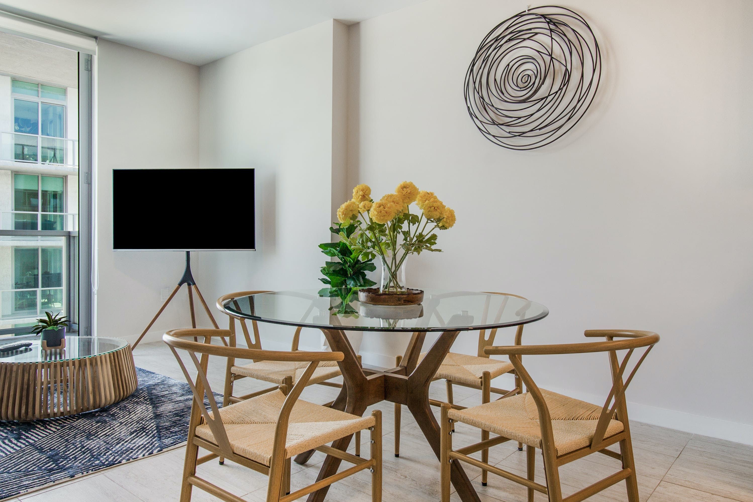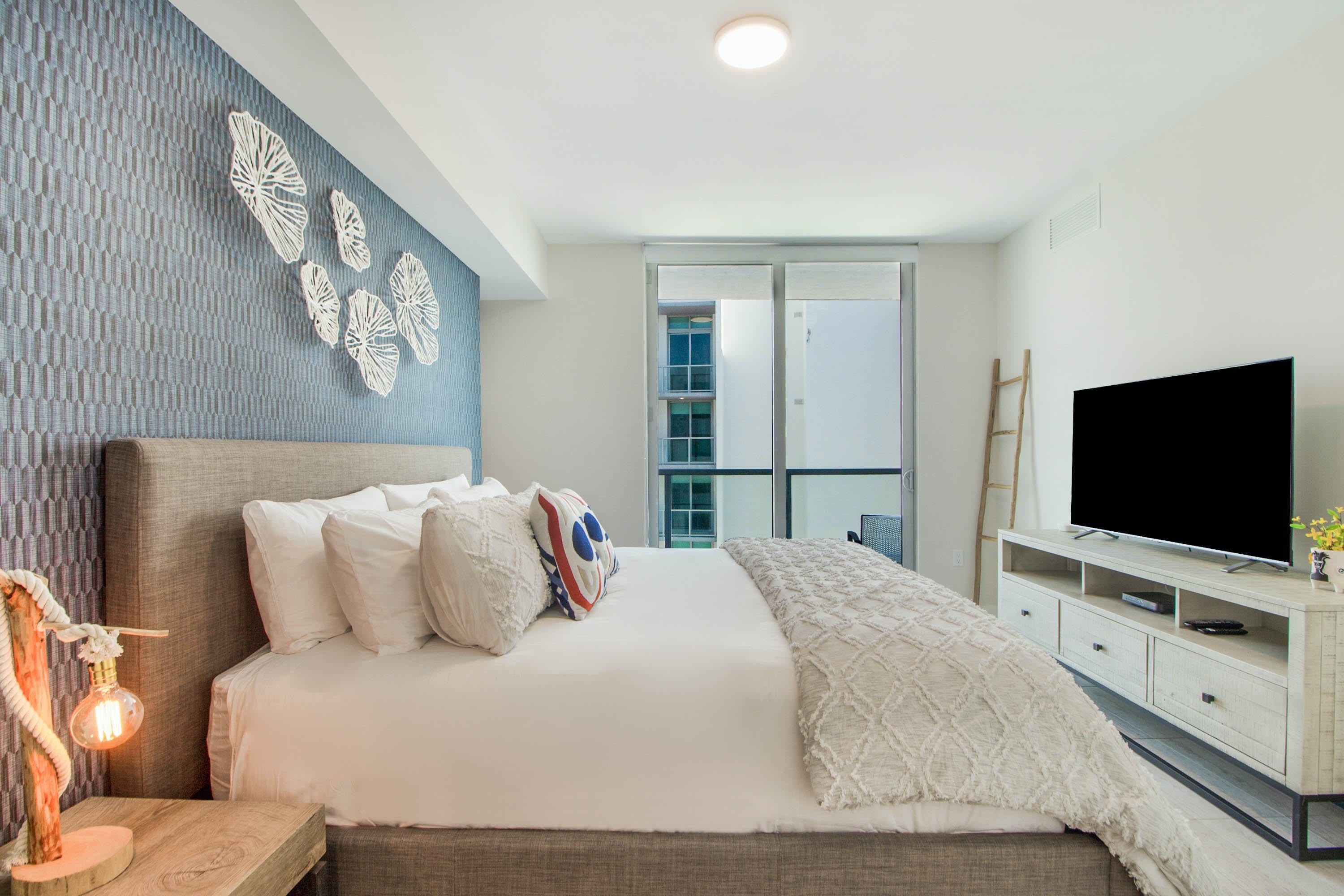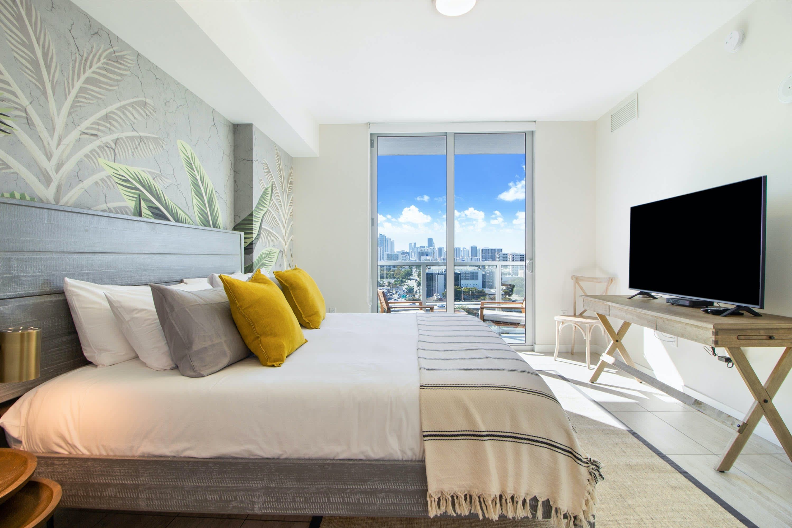 Entire luxury condo at Quadro in the vibrant Miami Design District. Immerse yourself in elegance and style with this fully furnished and equipped accommodation. Enjoy the best of Miami’s bustling atmosphere and peaceful relaxation, as the building offers resort-style amenities including a fitness center with a yoga/spinning studio, a co-working lounge area, and an outdoor pool with cabanas overlooking the scenic Biscayne Bay. Just a short distance away, you can explore the popular neighborhoods of Wynwood and Midtown, or take a quick drive to Miami Beach. With free parking, Wi-Fi, cable TV, and all the comforts you need, this is your ideal retreat in Miami.