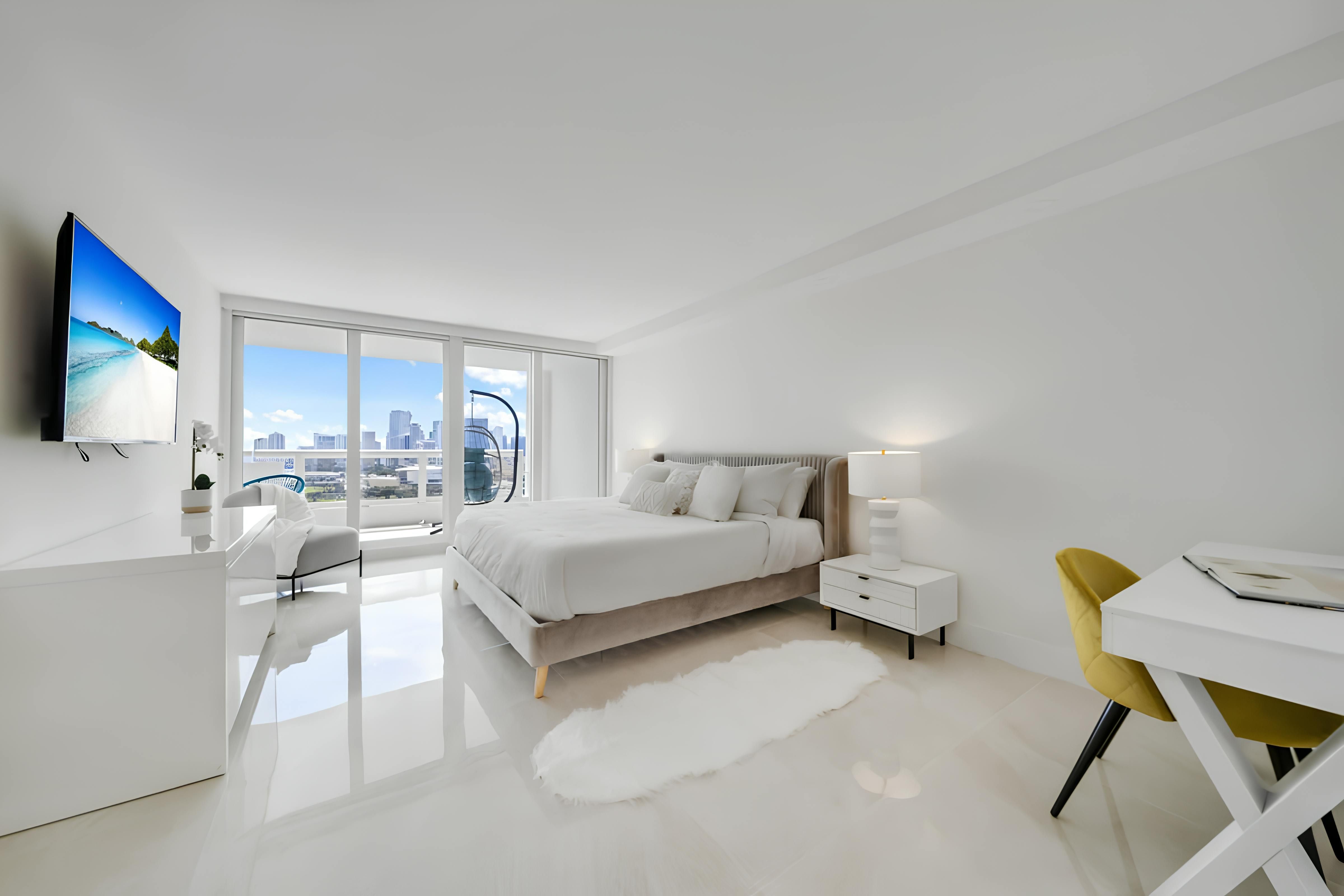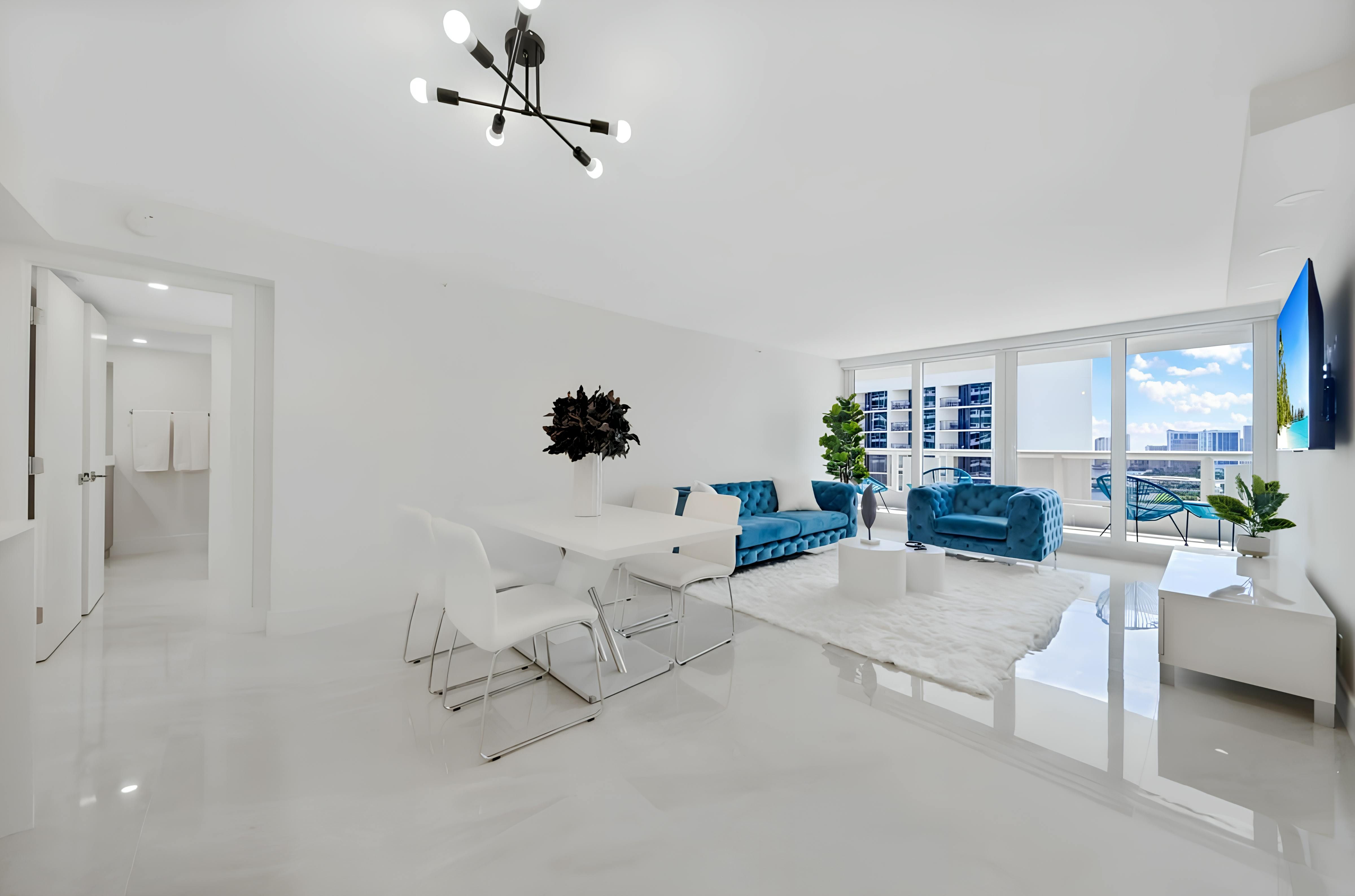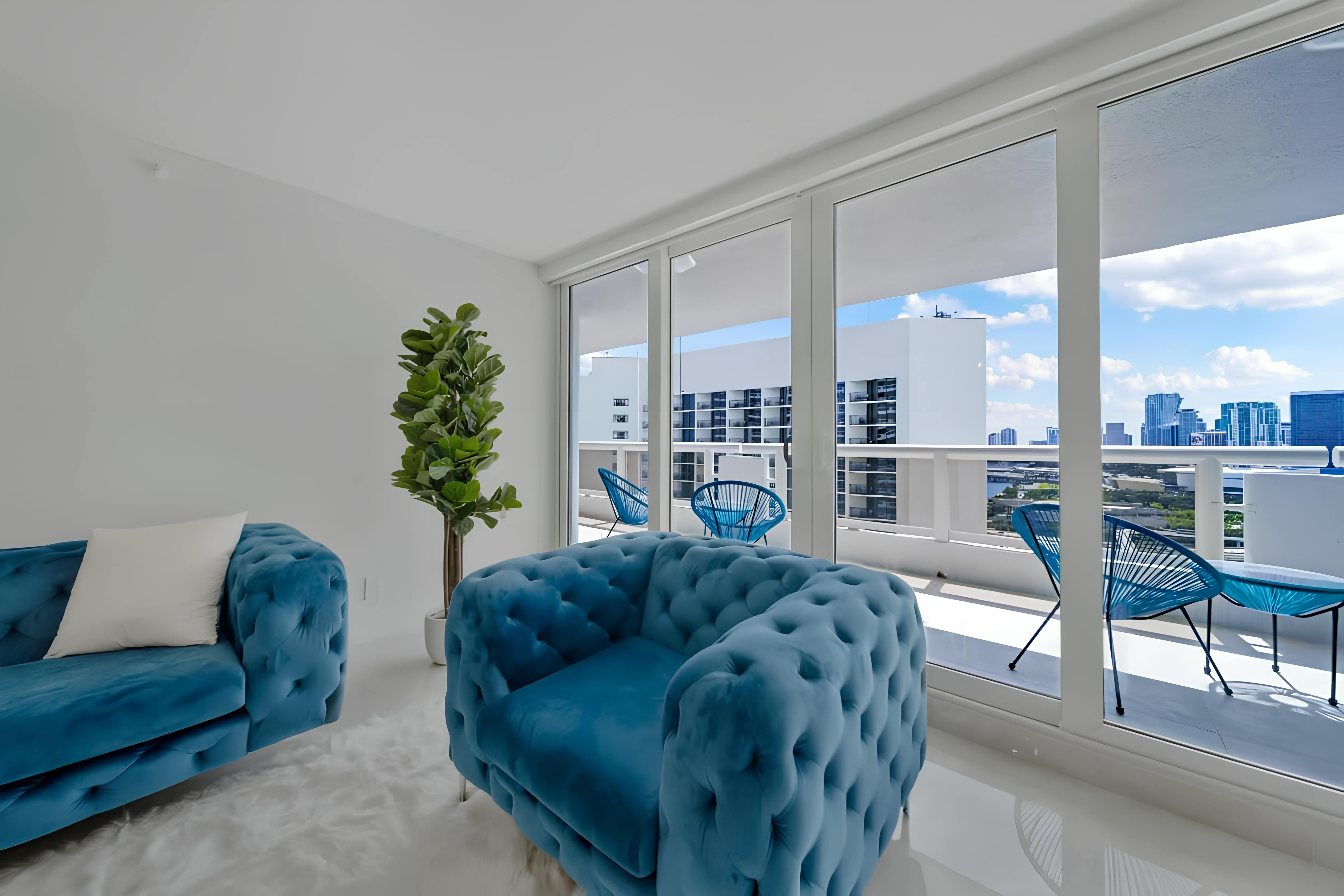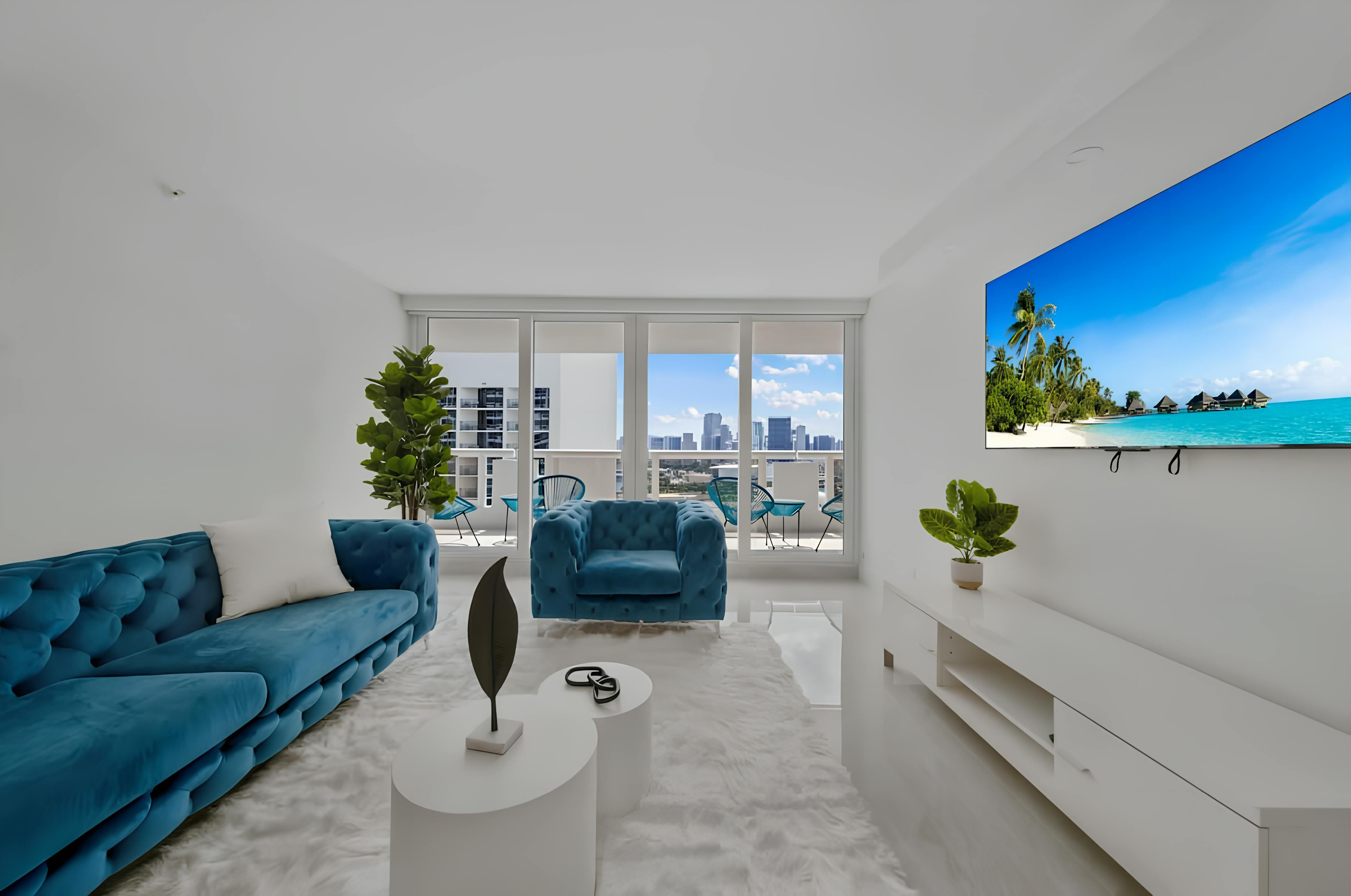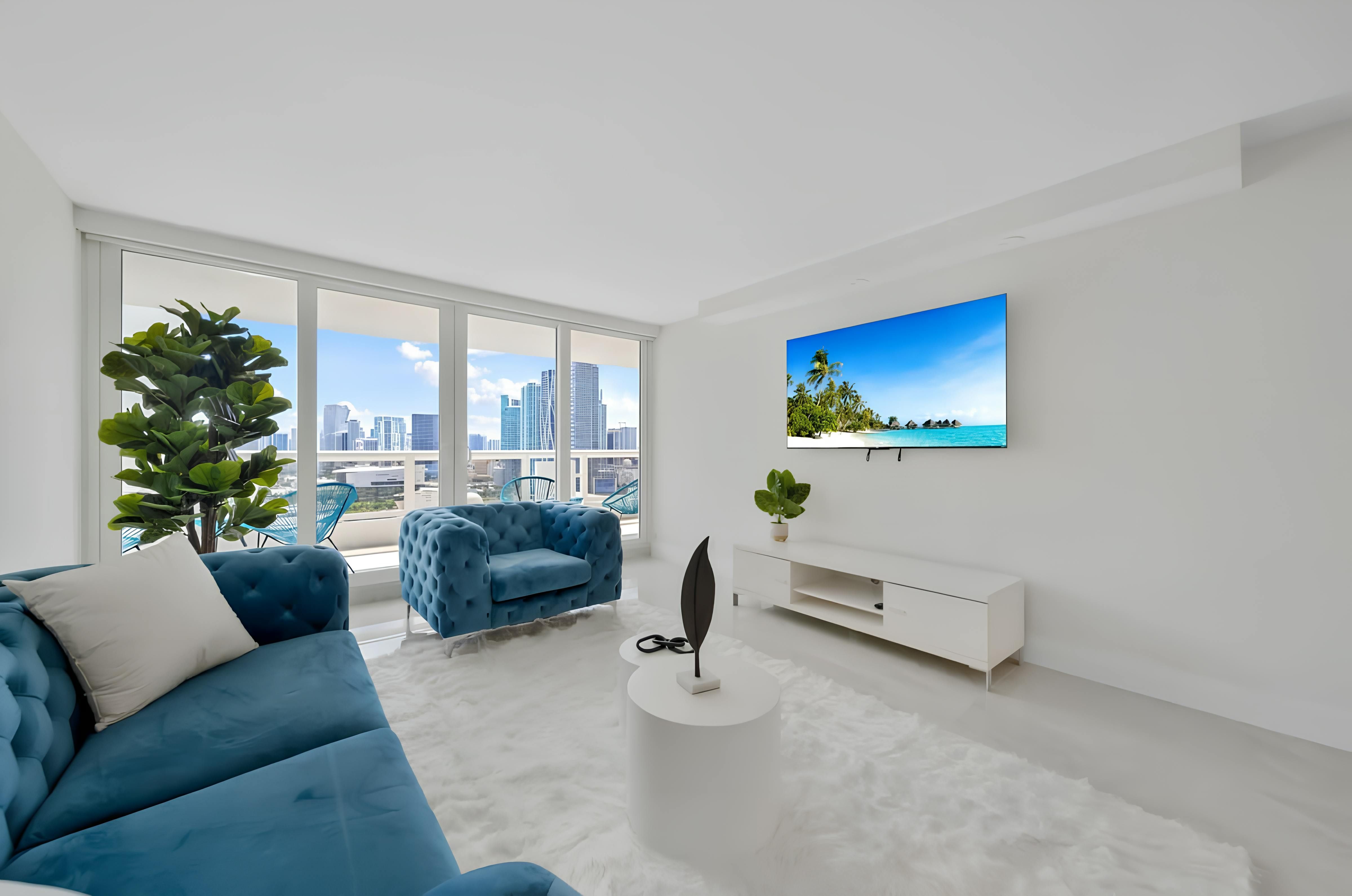 Wake up to blue skies, breakfast on the balcony, and the best bits of Miami right on your doorstep. This four-bedroom apartment has everything you need to make yourself at home, including a well-equipped kitchen for home cooking. We also love the little extras that come with staying here, like access to the communal Olympic-sized swimming pool (open year-round), a well-equipped gym, and on-site shops and restaurants. And with South Beach just a short drive away, beach days and buzzing nightlife are within easy reach.