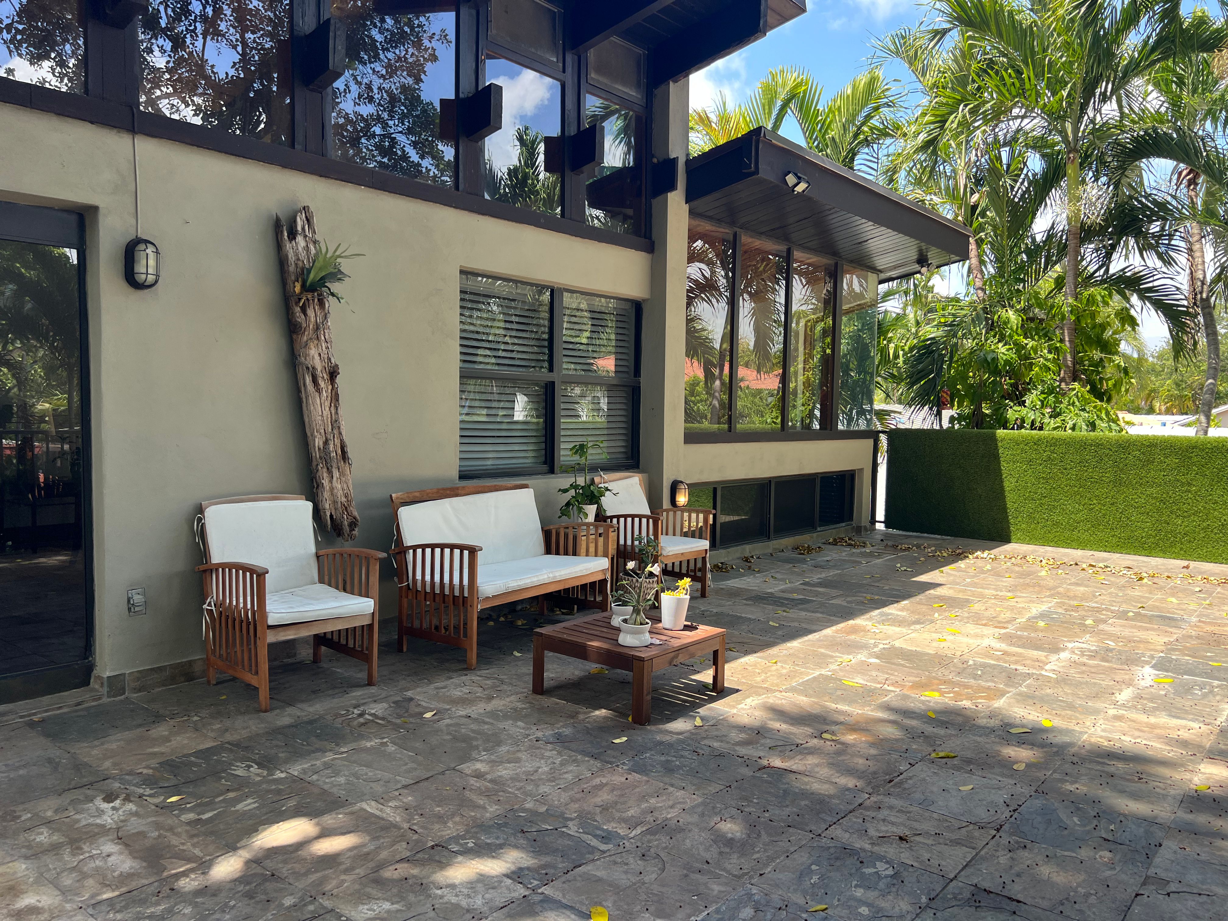 This house is in Miami’s upscale Coconut Grove neighbourhood, where you’ll find boutiques, cafes, and a laid-back pace of life. Tucked away among lush greenery, it’s a bright and breezy place to stay, with a tropical vibe we think you’ll love. And while it feels serene and secluded when you’re having coffee and cocktails on the palm-shaded patio, the city is within easy reach. Downtown Miami is only a fifteen-minute drive away, and you can get to Miami Beach in half an hour. So, there’s lots to keep you busy when you’re not relaxing at home.