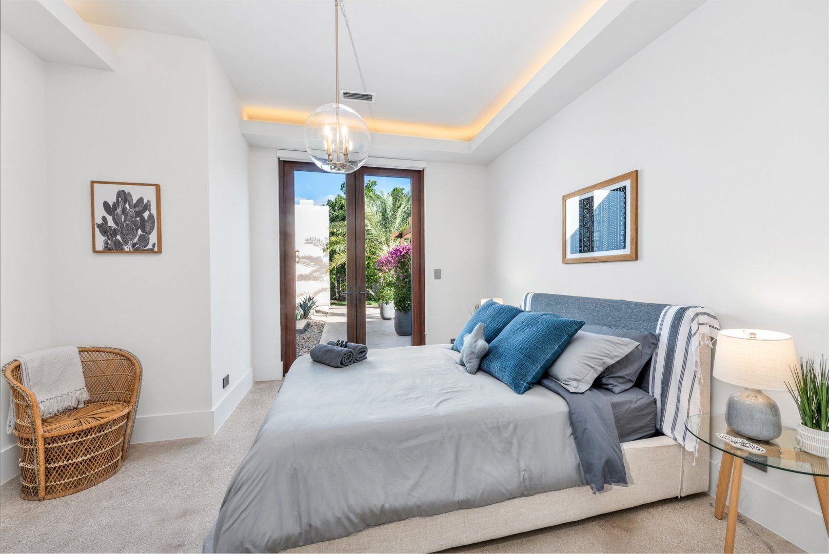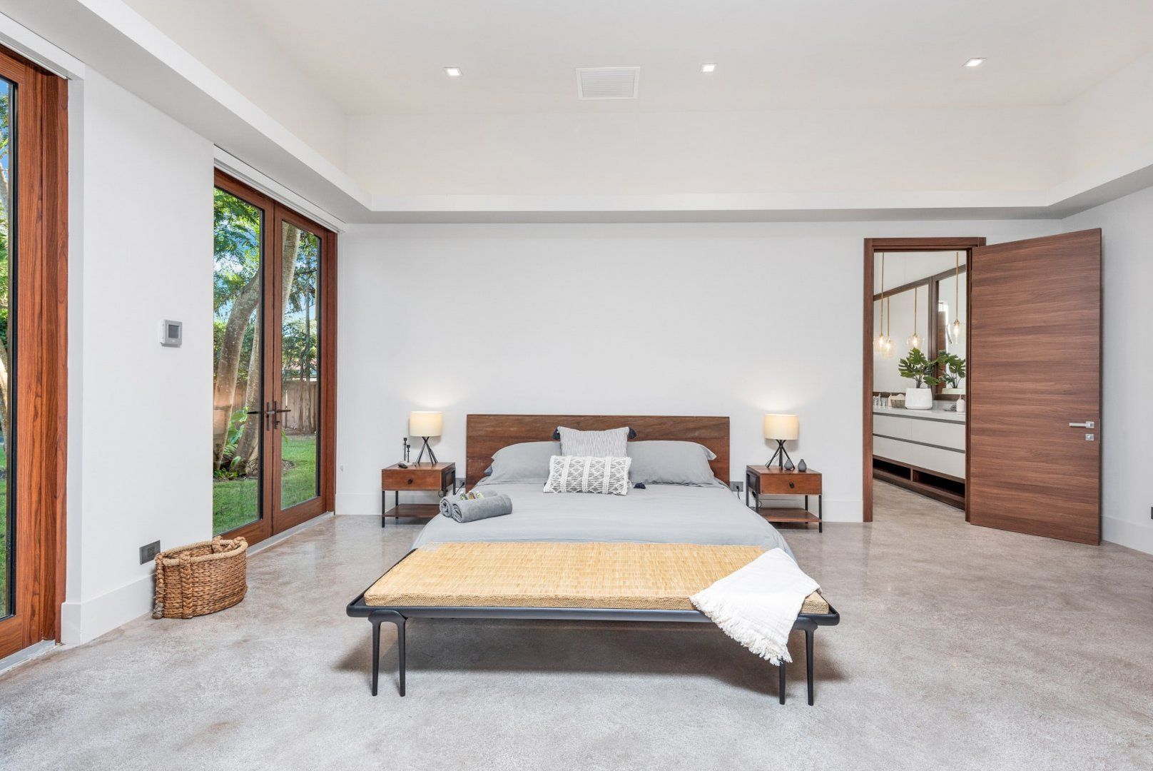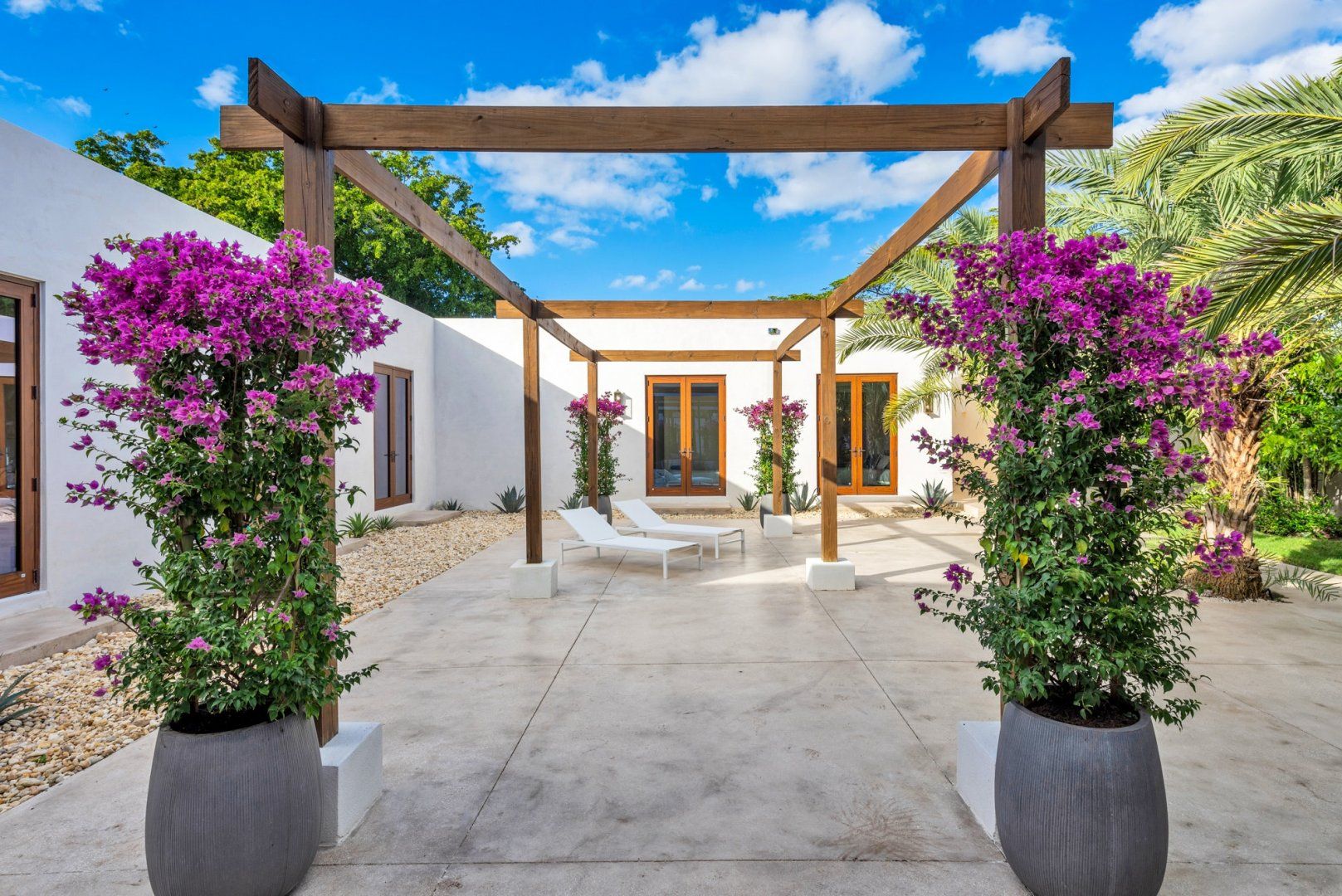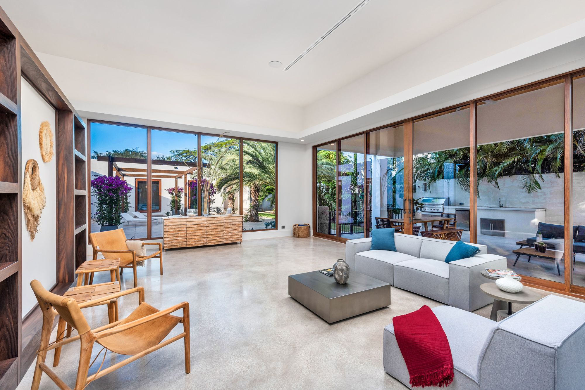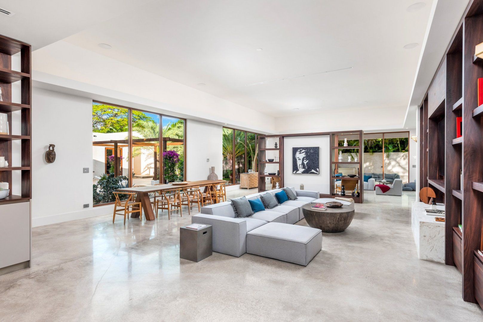 Sparkling new and set within manicured gardens, this modern villa is in the heart of Miami Shores. Just a ten-minute drive from Miami Beach and Wynwood, it's in a quiet neighbourhood with easy access to everything you could need. You're greeted by a Moroccan style entryway, with exquisite landscaping and tropical plants, while sleek lines and an open-plan layout to the vast living space make for a cool, contemporary place to call home for a while. Think polished concrete floors, dark wood built-in shelving and plenty of floor-to-ceiling windows. Hang out inside on the huge sofa or at the stylish dining table, or slide open the doors and spill out onto the covered terrace. There's a top of the range kitchen inside, as well as an outdoor kitchen area for barbecues and cocktails in the garden. Swim in the heated pool, bask on a sunlounger or read in the shade of the palm trees.