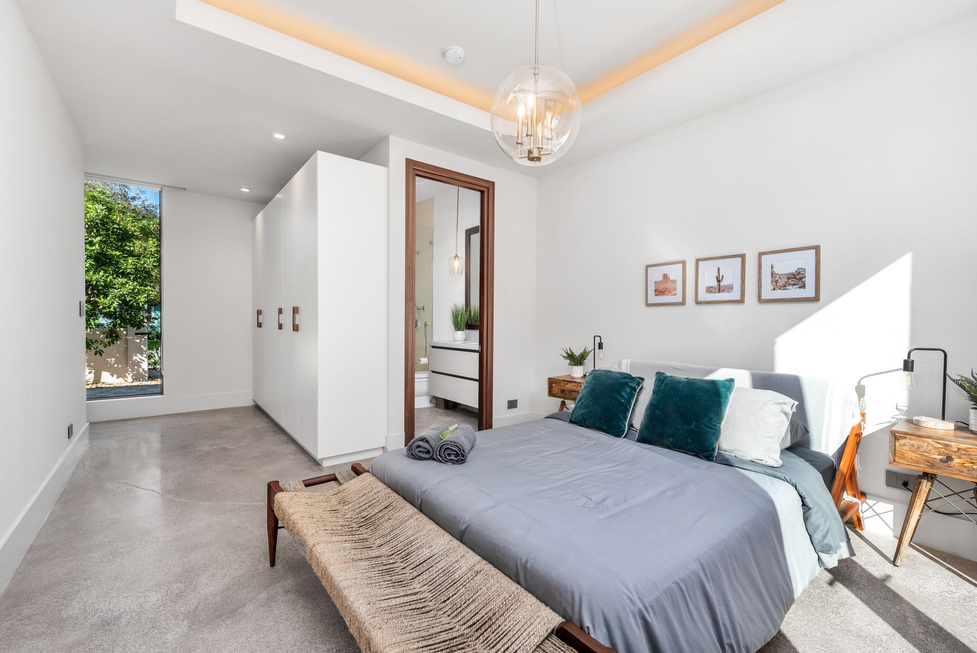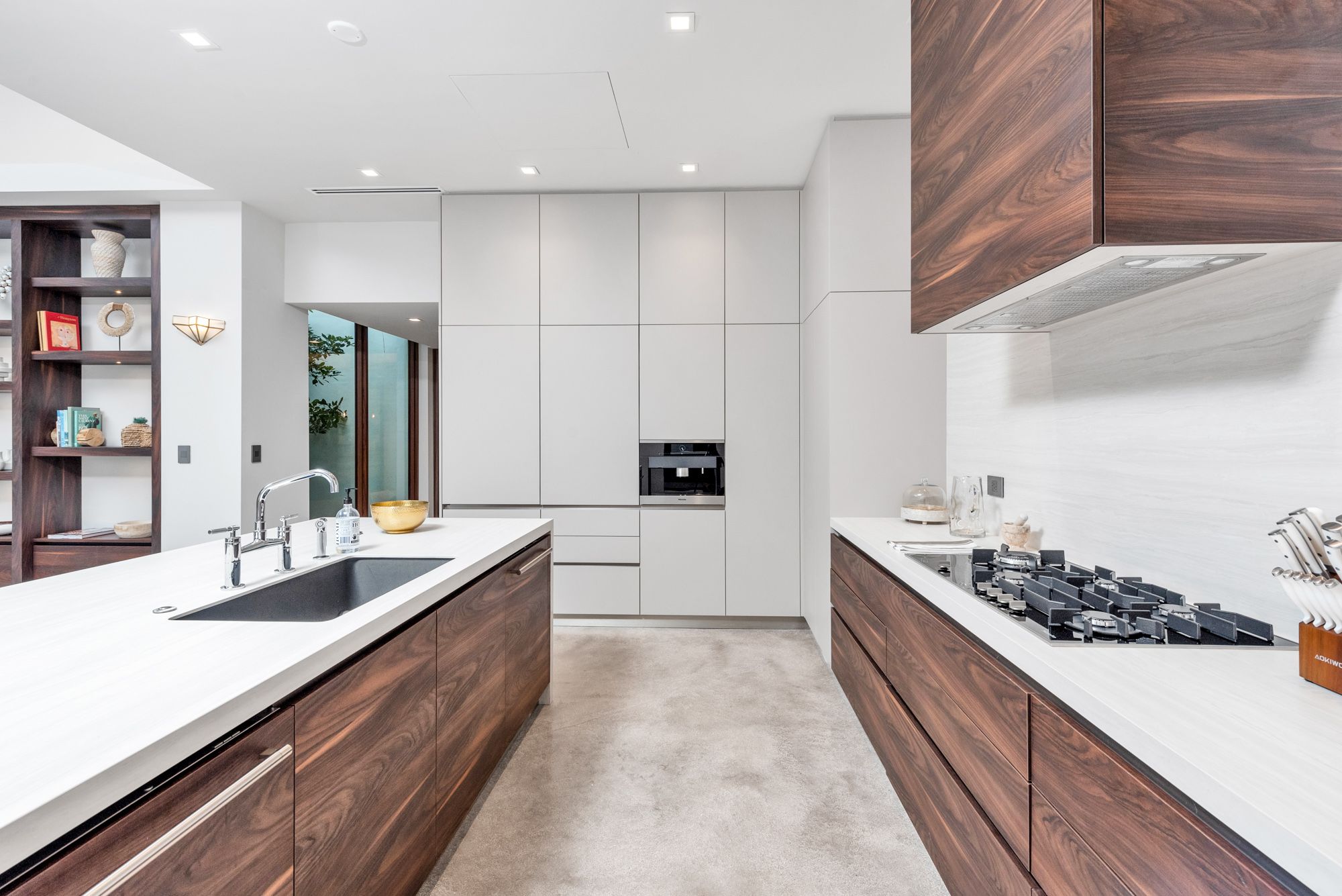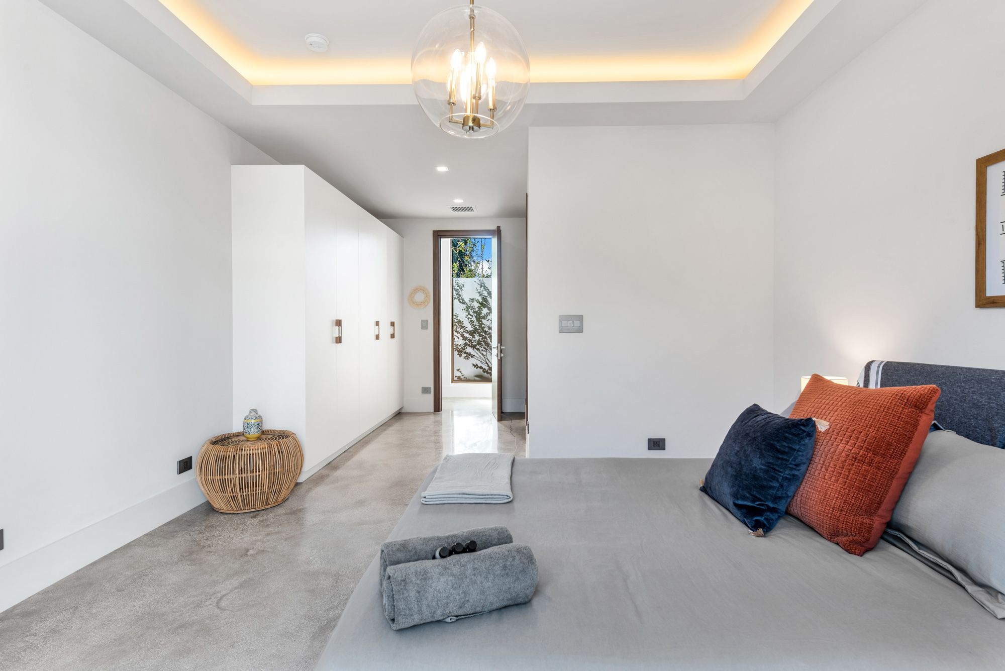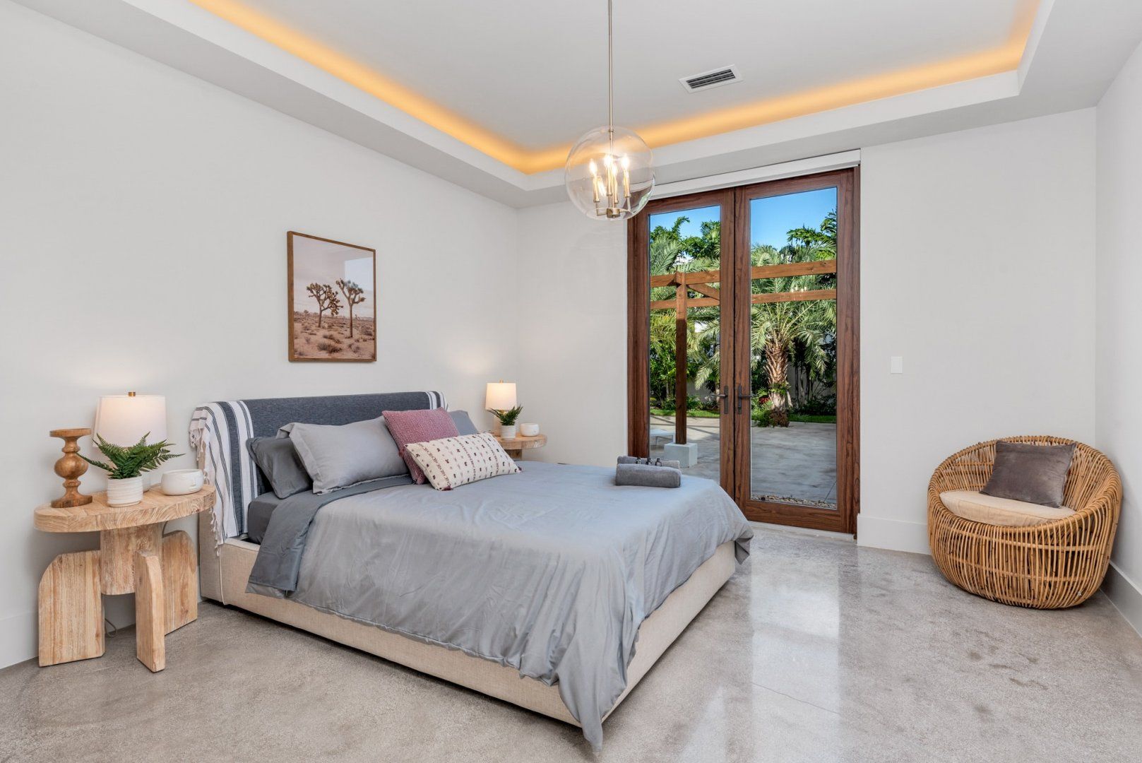Sparkling new and set within manicured gardens, this modern villa is in the heart of Miami Shores. Just a ten-minute drive from Miami Beach and Wynwood, it's in a quiet neighbourhood with easy access to everything you could need. You're greeted by a Moroccan style entryway, with exquisite landscaping and tropical plants, while sleek lines and an open-plan layout to the vast living space make for a cool, contemporary place to call home for a while. Think polished concrete floors, dark wood built-in shelving and plenty of floor-to-ceiling windows. Hang out inside on the huge sofa or at the stylish dining table, or slide open the doors and spill out onto the covered terrace. There's a top of the range kitchen inside, as well as an outdoor kitchen area for barbecues and cocktails in the garden. Swim in the heated pool, bask on a sunlounger or read in the shade of the palm trees.