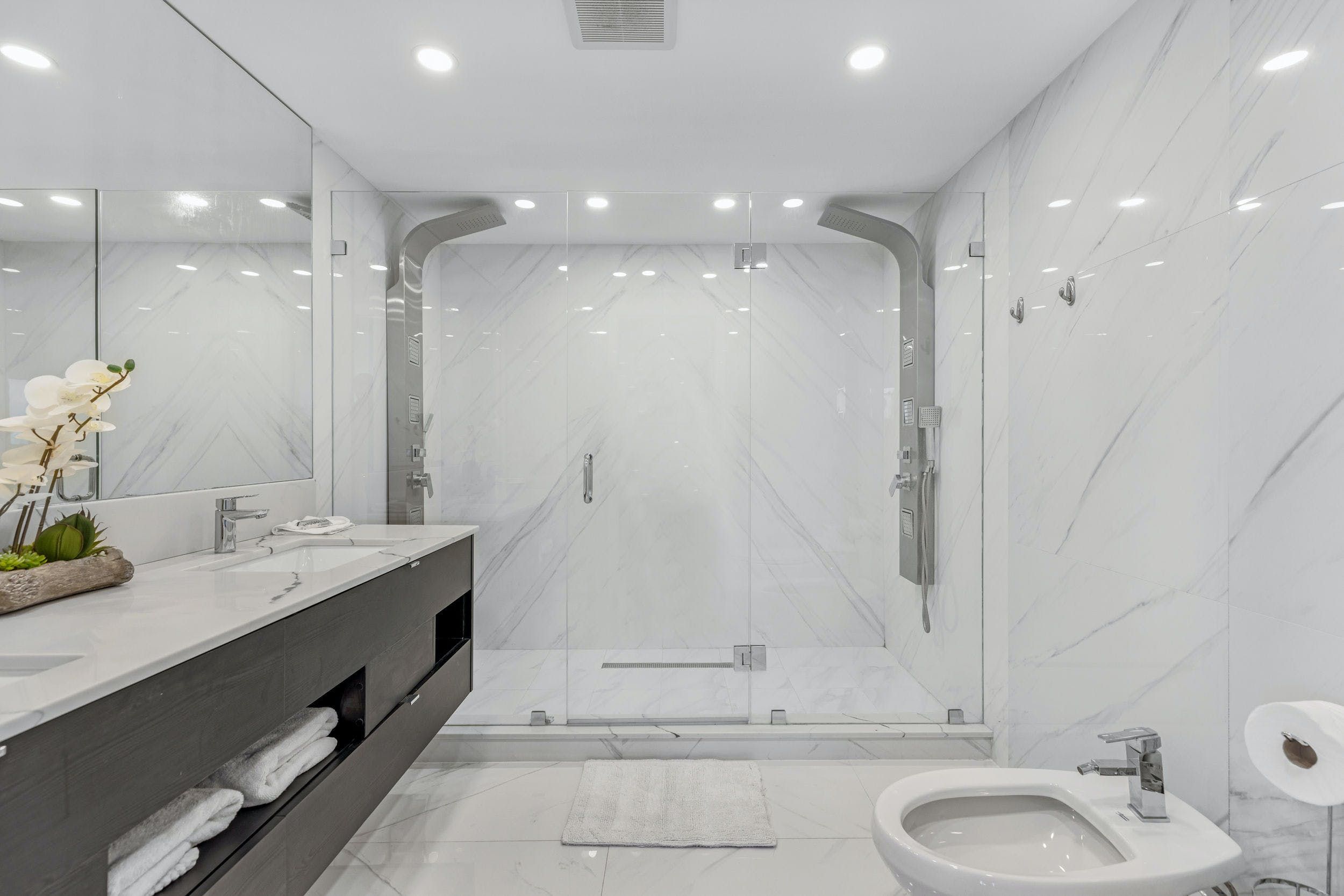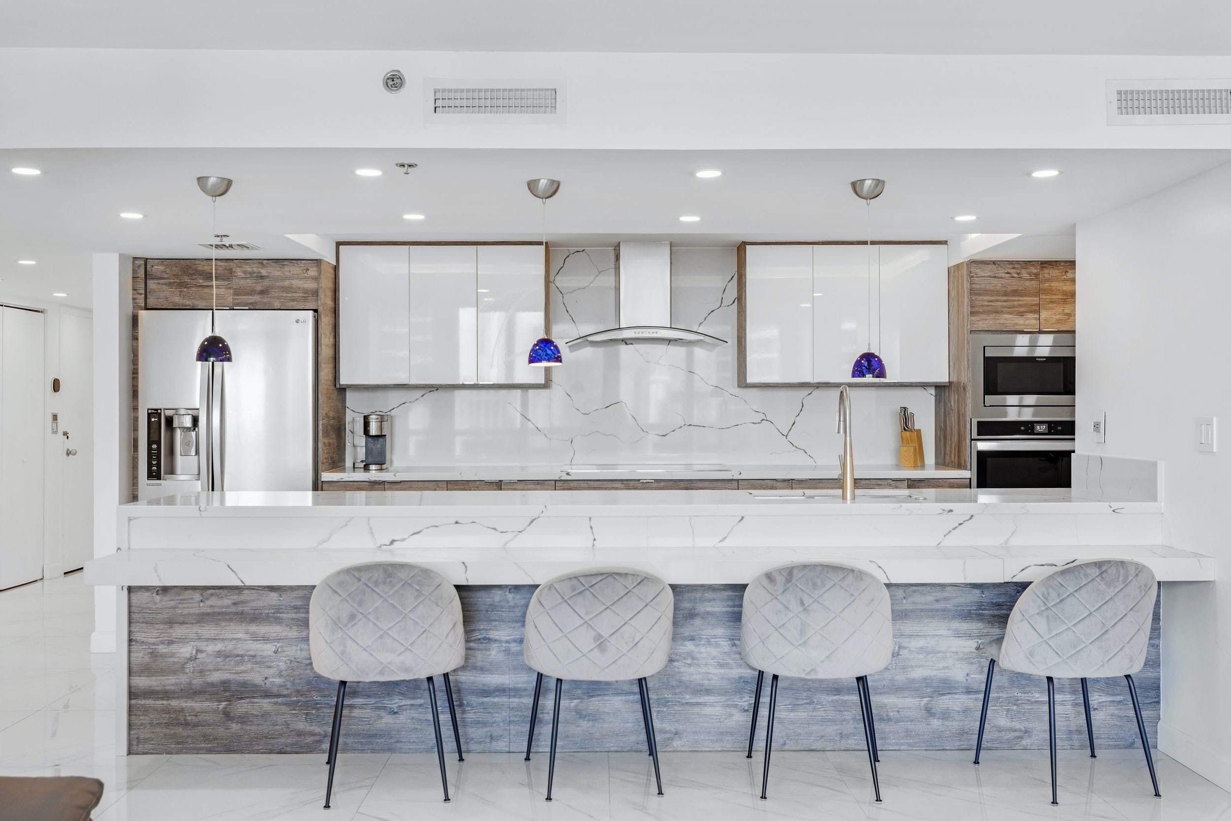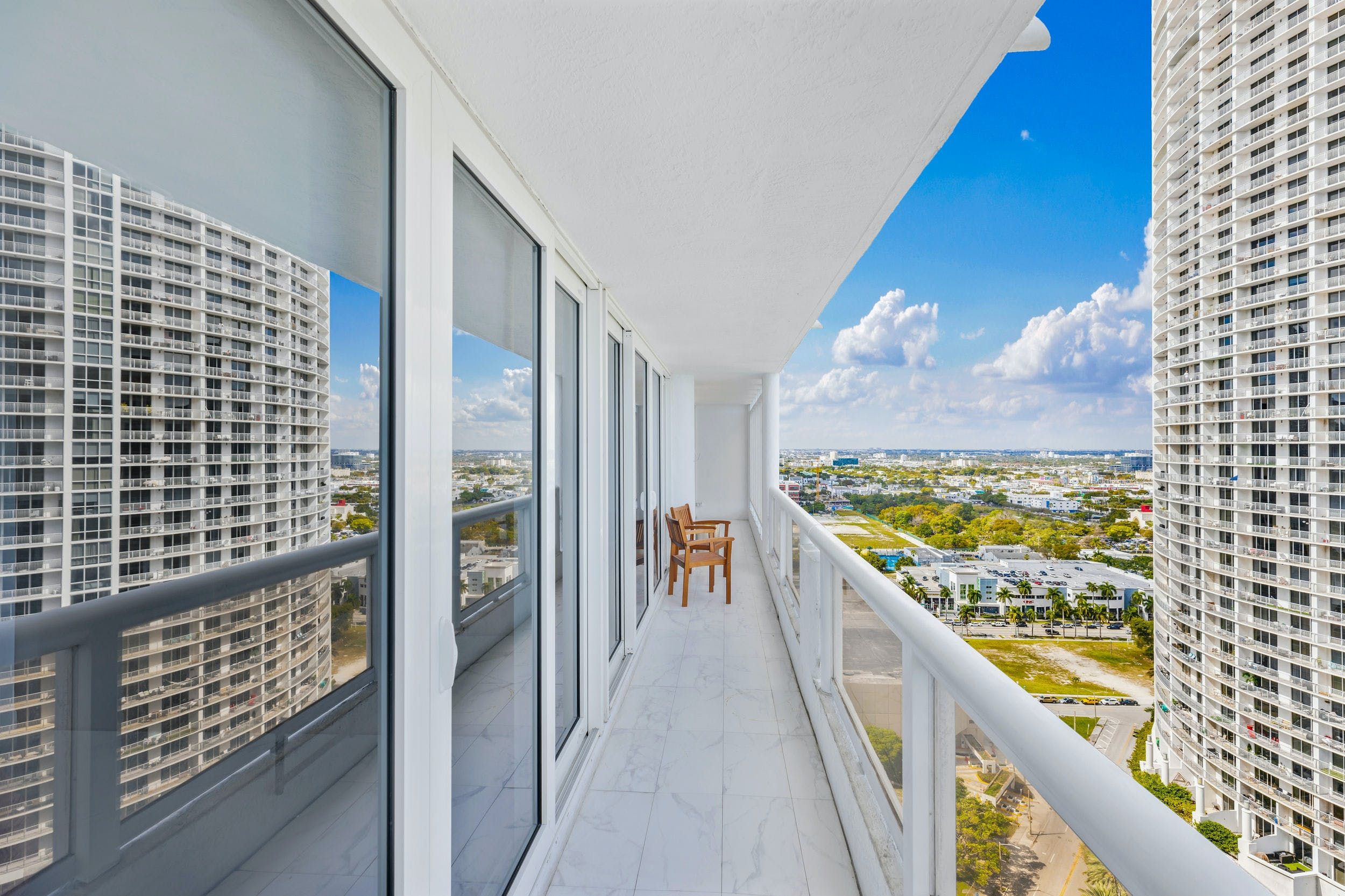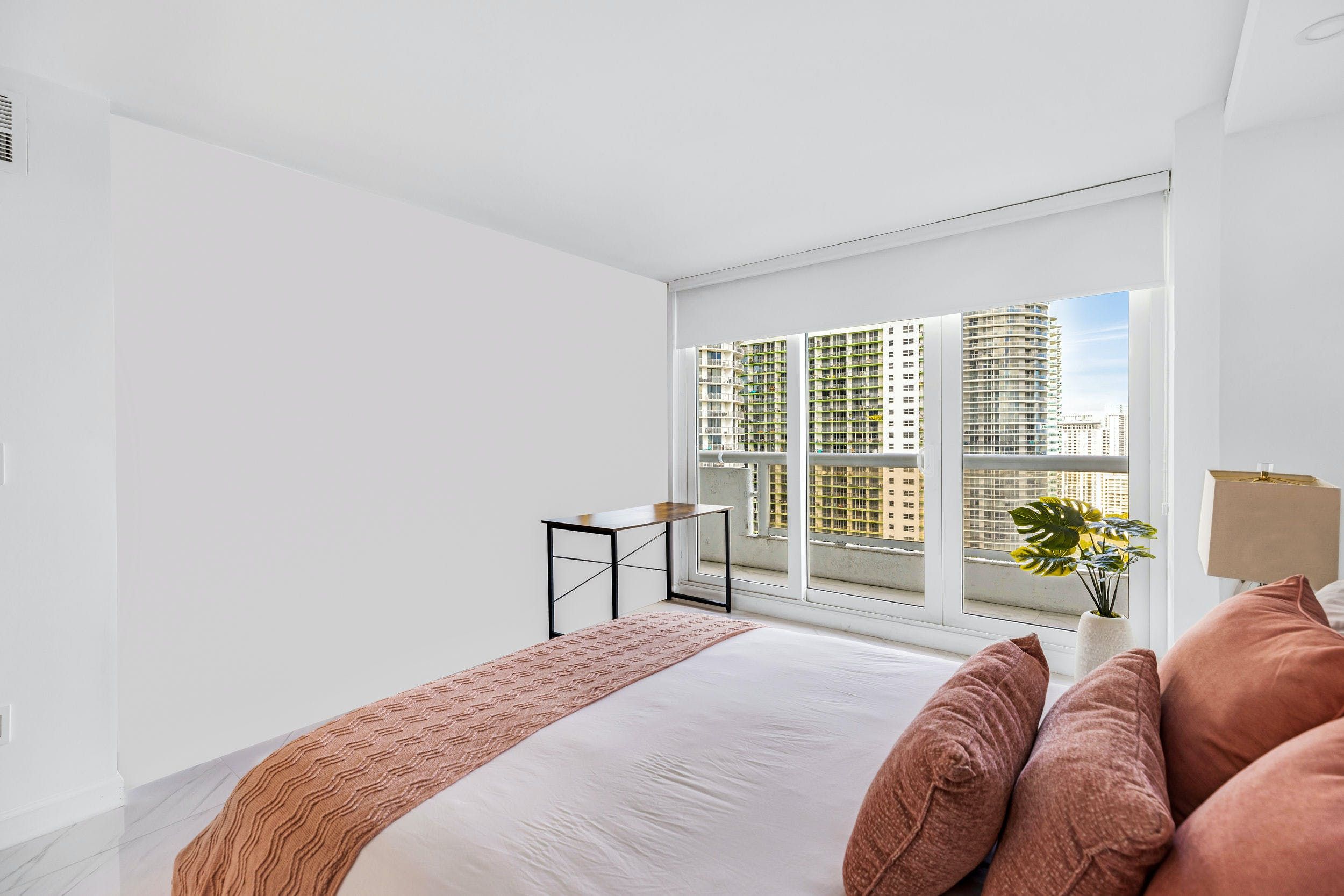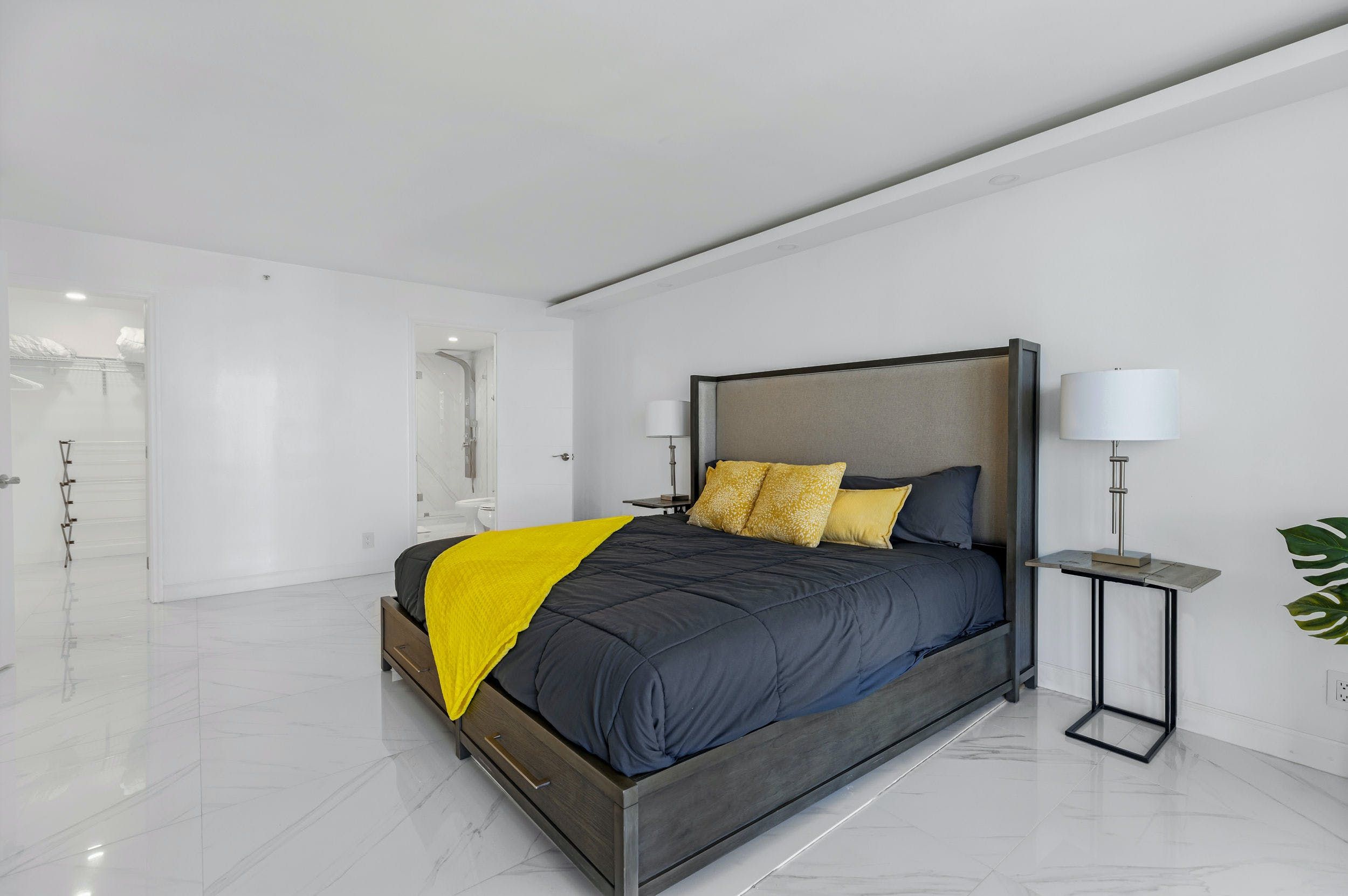 You’ll find this sophisticated apartment in East Miami, a ten-minute drive from bustling Downtown and fifteen minutes from the endless sands of Miami Beach. Inside, it’s whitewashed and sleek, with high-end appliances, minimalist furnishings and glossy marble floors. Walls of glass not only flood the place with natural light but give way to views of the glittering Biscayne Bay. Step out onto the balcony and gaze across the turquoise waters with a freshly brewed coffee in hand.