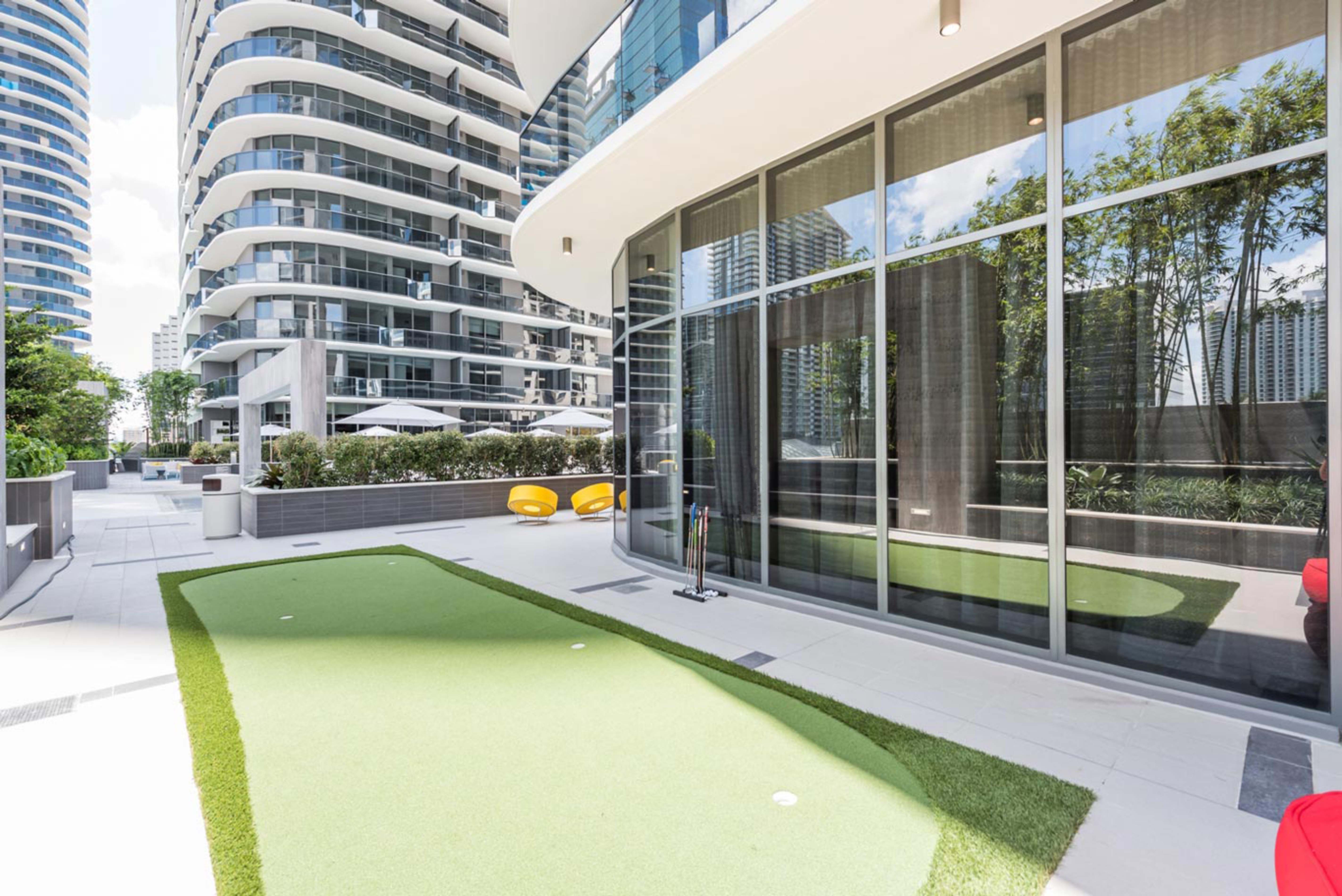 When it comes to filling your days here, you'll have plenty to keep you occupied without leaving the building. Maintain your daily fitness routine with a quick session in the state-of-the-art gym before treating yourself to a soak in the jacuzzi. There are several chill-out areas and dining spaces as well as a conference room with work from home stations, a cinema, and a putting green, so whatever you're up to, there's something for you.