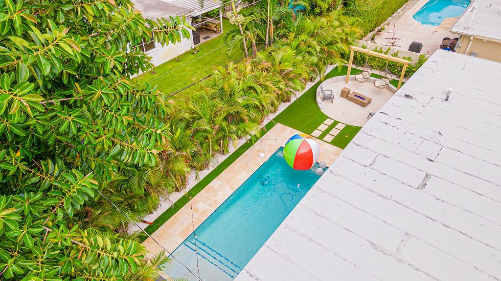 With its steely marble aesthetic and inviting outdoor areas, this modern villa in peaceful Ojus is ideal for families and friend groups keen to sample Miami without too much bustle. The bright interiors include a fluid living room, kitchen and dining area, with extra room for a pool table. The five bedrooms are cosy and functional, though only two have a private bathroom – those staying in the other three will need to share the other bathroom, which does have its own bathtub. Outside, the private pool is calm and inviting, while there's plenty of outdoor seating for socialising in the sunshine. You'll also be within thirty minutes of Miami Beach, should your party be eager for a coastal day trip.