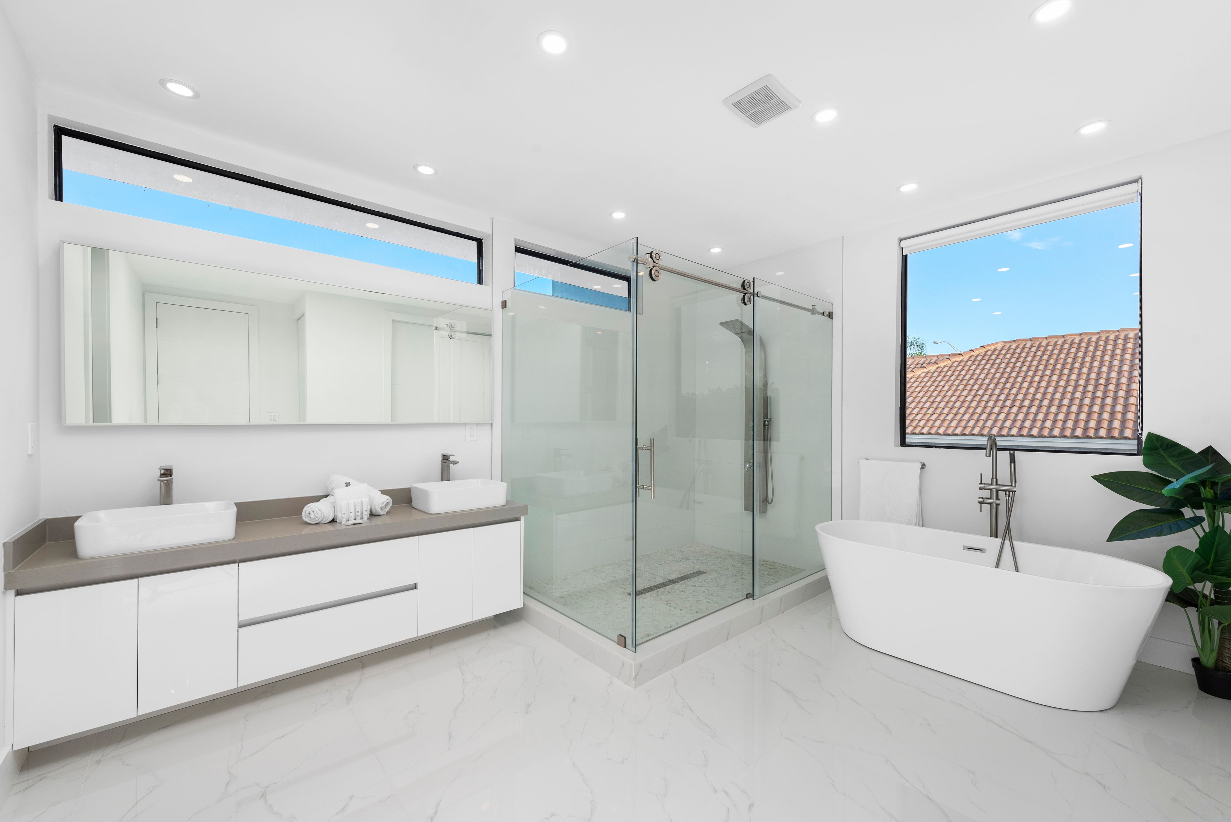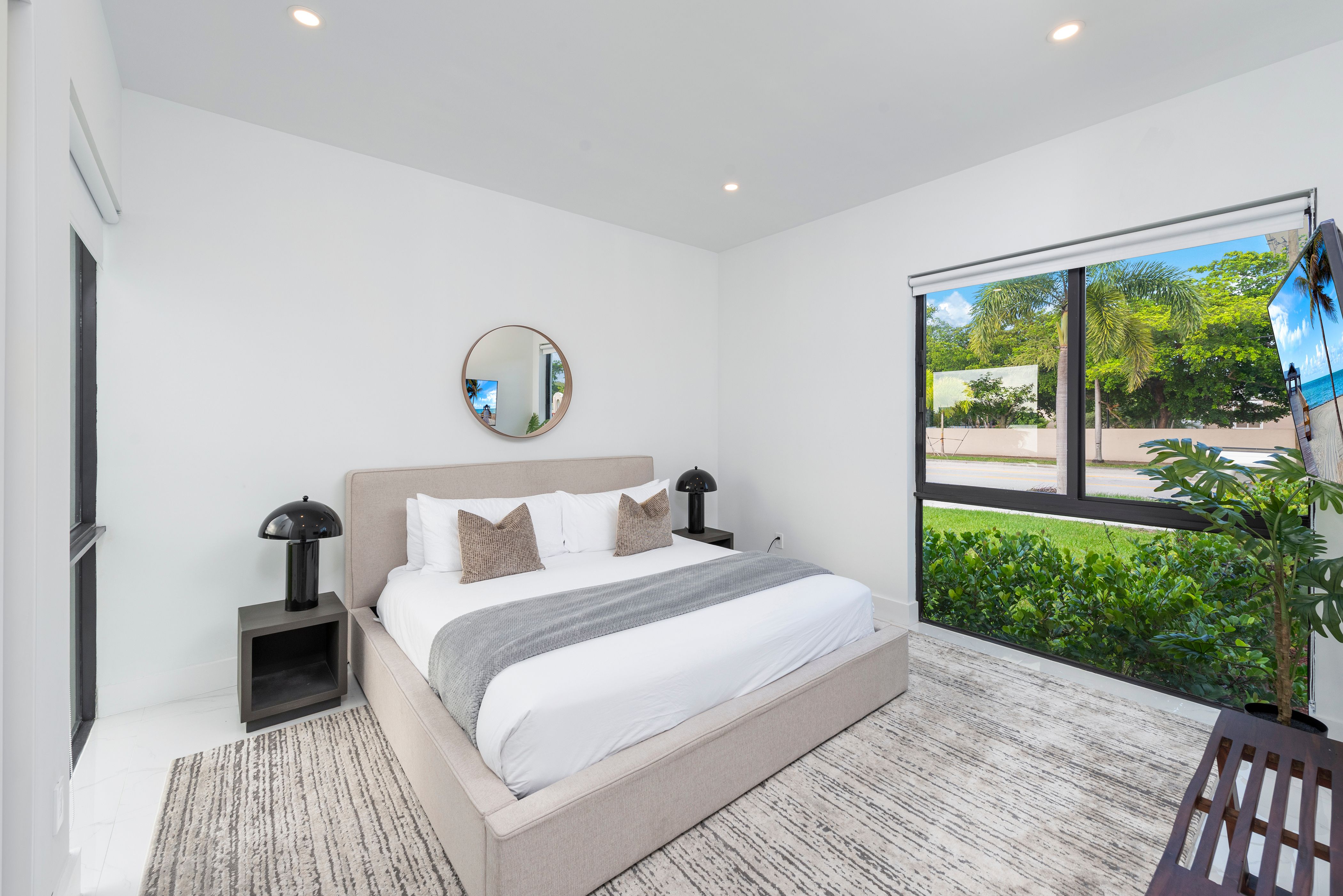 This minimal lakefront home opens its doors to a magical stay in Miami. Upon arrival, you’ll be welcomed by stunning views, a private infinity pool and an abundance of space to stretch out and socialise. There are five immaculate suites with special highlights including the main bedroom which comes with an en-suite bathroom and a balcony for optimum privacy. There’s also a concierge service offering extras like private chefs, spa services and housekeeping. And when it comes to adventures further afield, it’s just a short drive to the nearest beach and amenities.