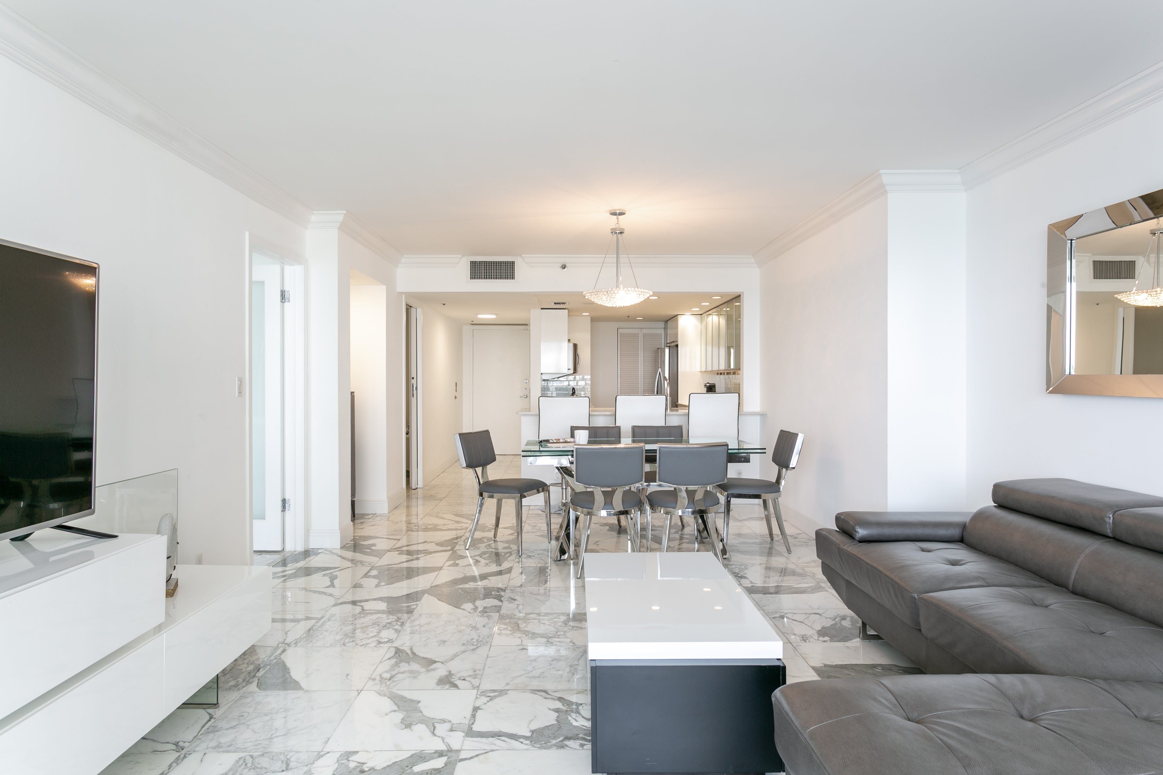 The sparkling sands and buzzy restaurant scene of South Beach are just a ten-minute drive away and the Adrienne Arsht Center is just a seven-minute stroll for a dose of the arts. Though you might find all you need back at the apartment.