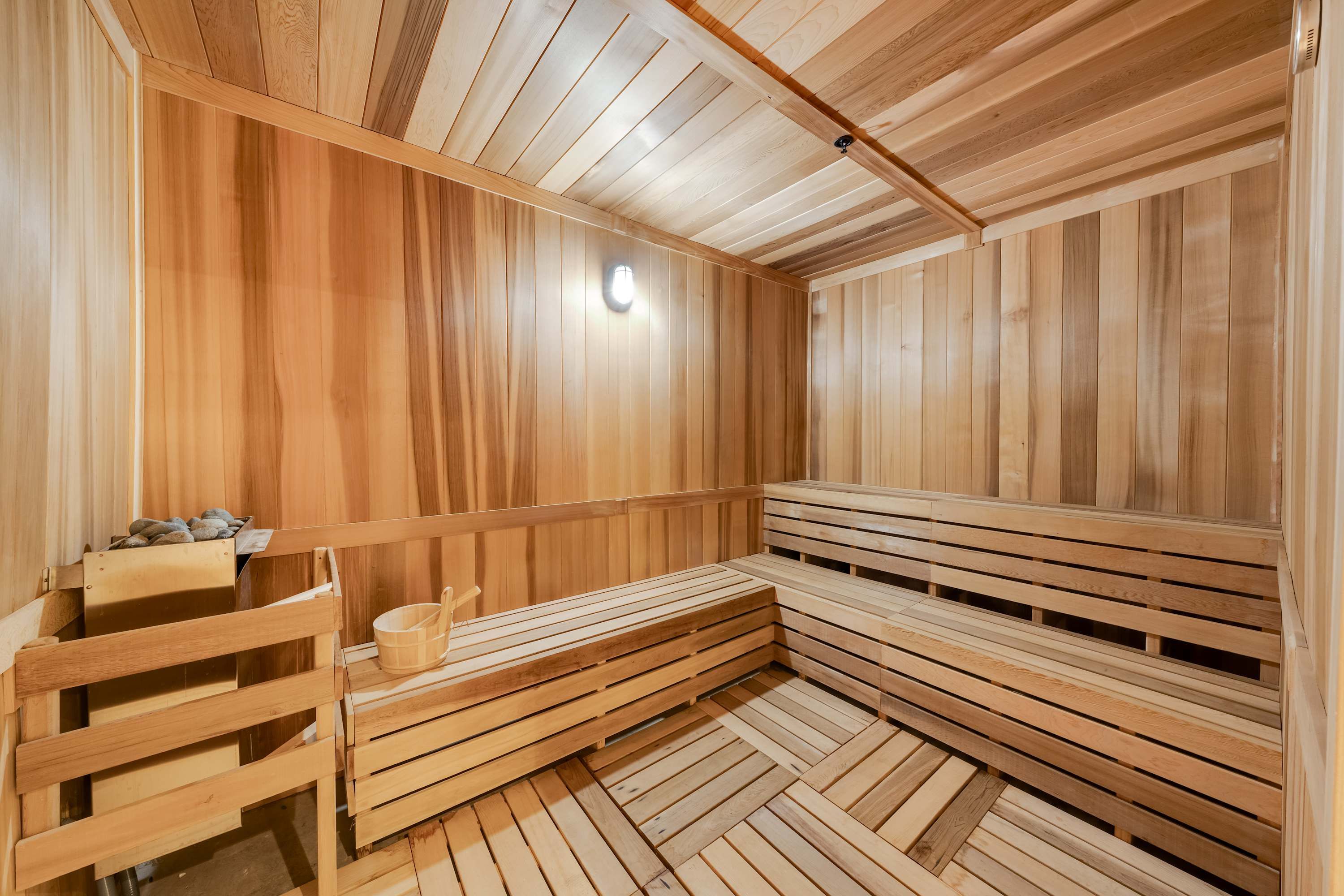 *You’ll have access to the shared swimming pool and sun deck, fire pit, summer kitchen, gym, yoga and spin studio, sauna and steam room, indoor basketball and racquetball courts, rock climbing wall, and co-working floor with private meeting rooms. These facilities are shared with the building's other residents.